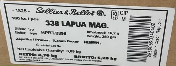 Sellier & Bellot 338 Lapua Mag 250 Grain HPBT Ammunition, 100 Round Case