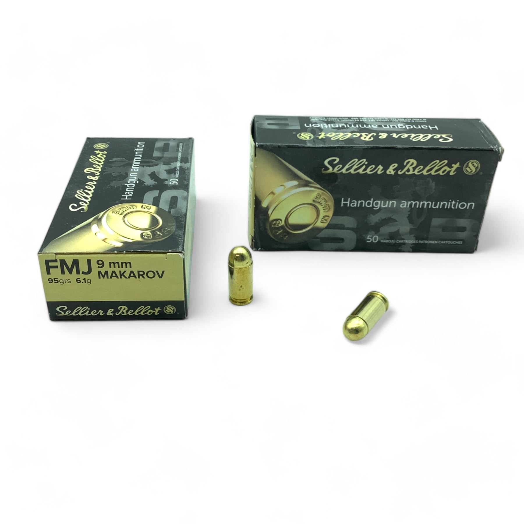 Sellier & Bellot 9 mm Makarov 95 Grain FMJ Ammunition, 100 Grain