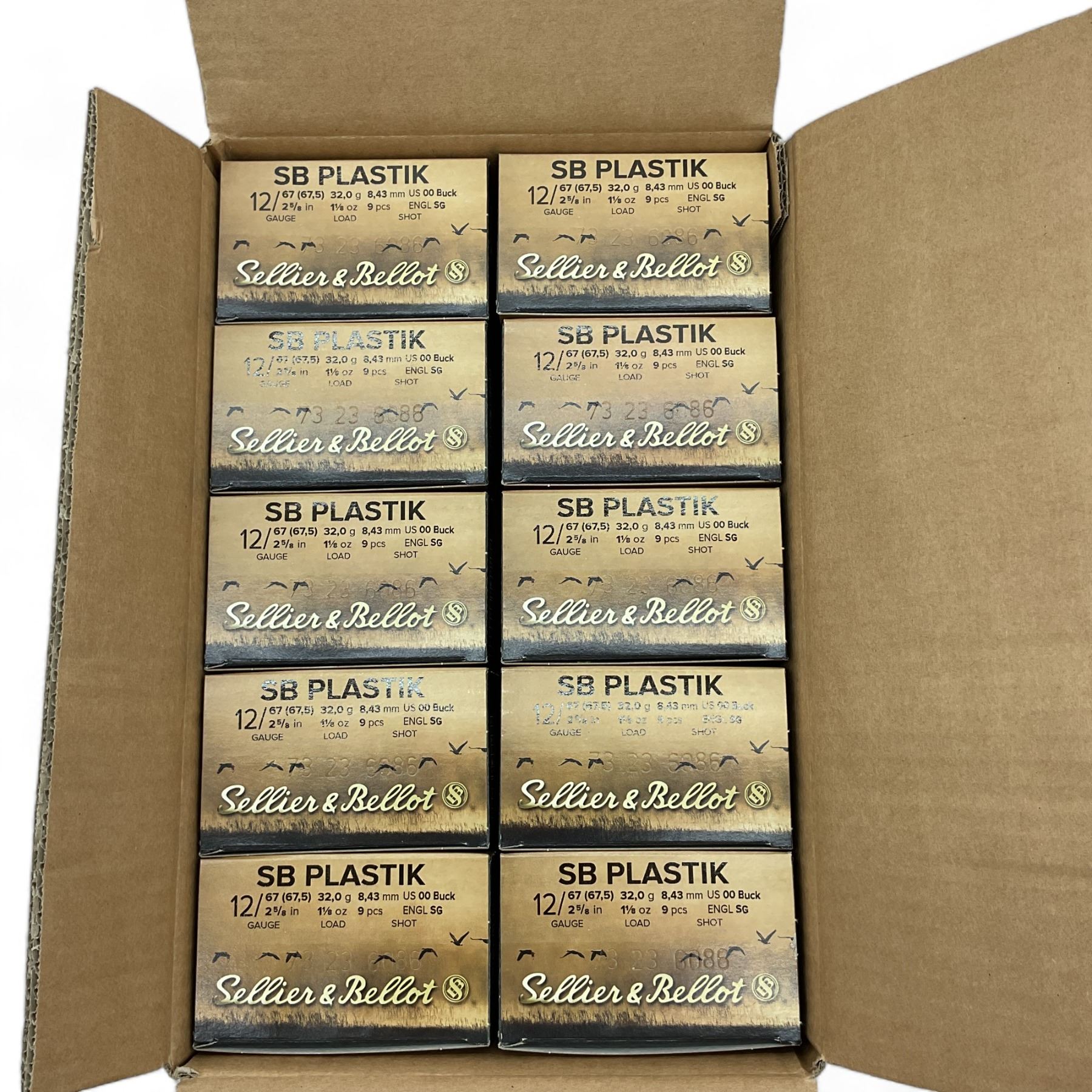 Sellier & Bellot Plastic 12 Ga 2 5/8" 00 Buckshot Ammunition, 250 Rounds