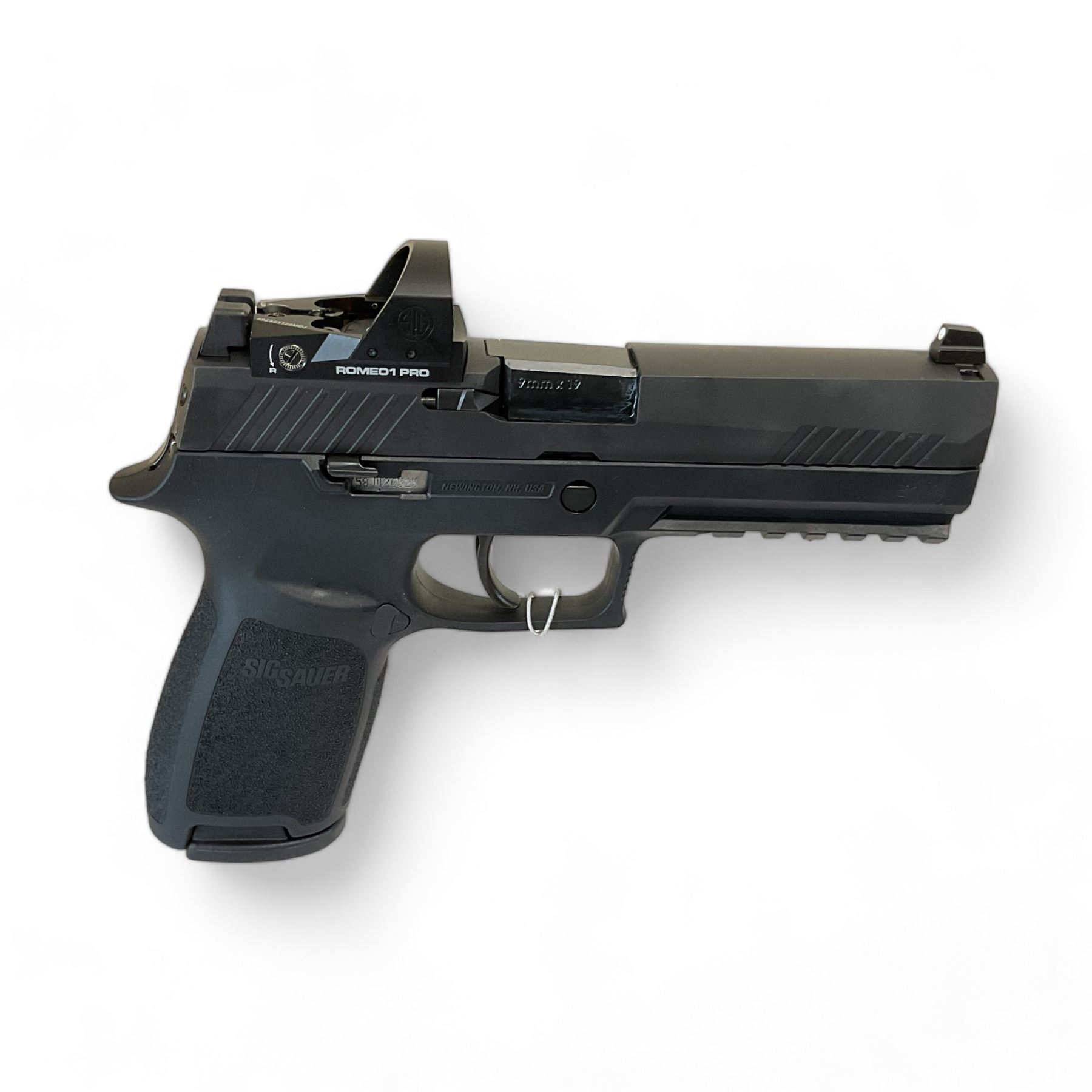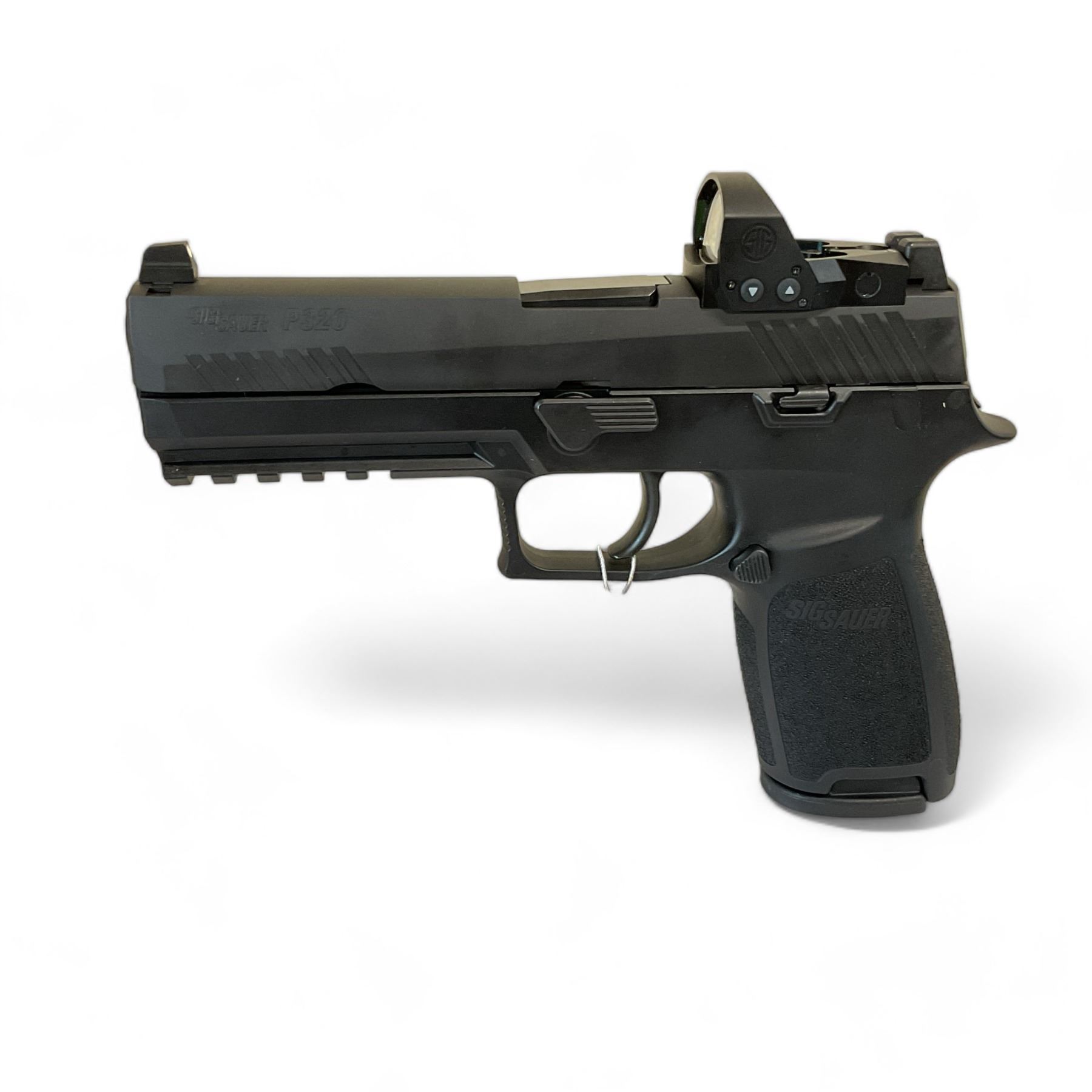 Sig P320F Semi Auto Pistol 9MM 4.7" Barrel With Romeo 1 Pro Optic Restricted, New. Includes 2 detachable magazines and hard plastic case.
