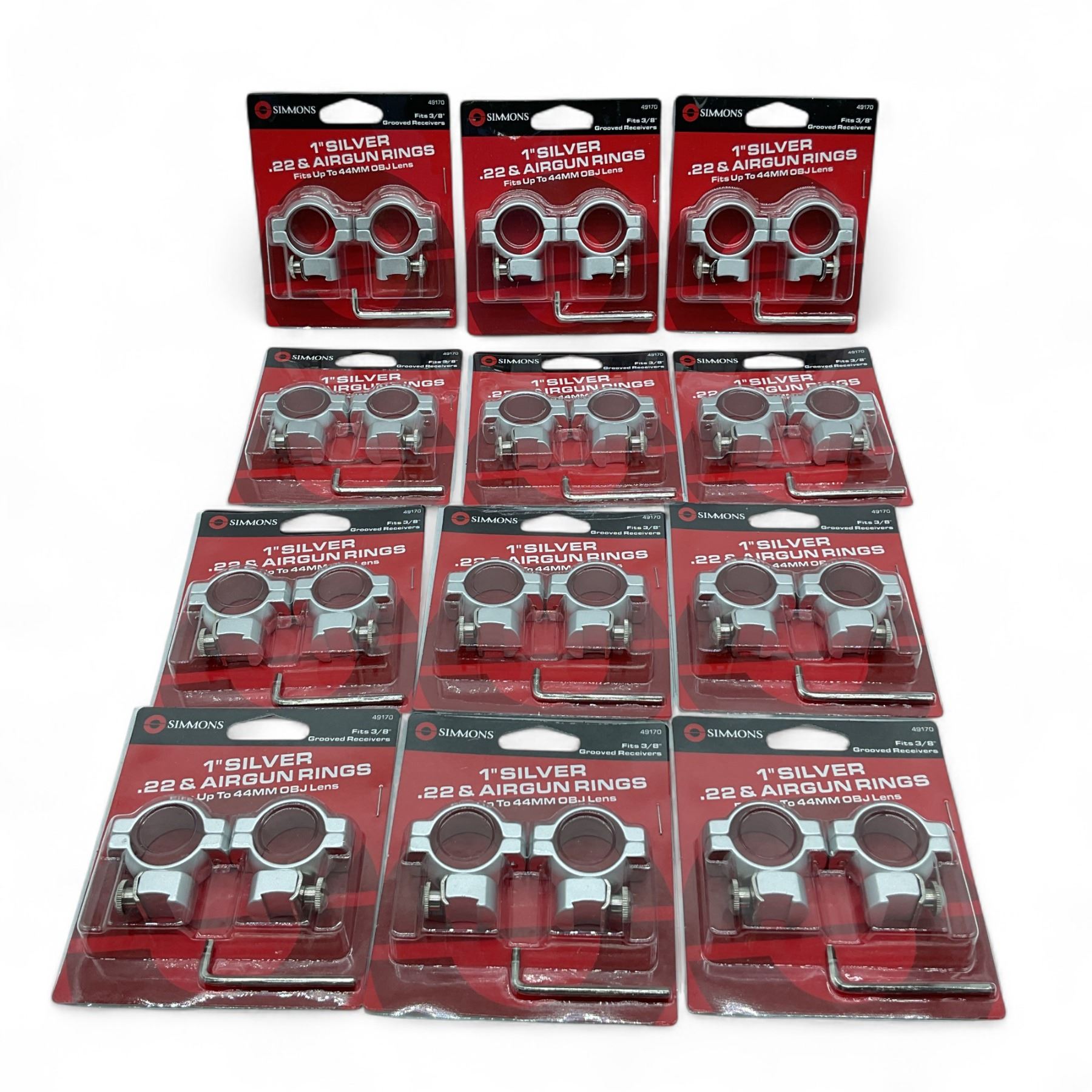 Simmons 1  22 Rings for 3/8  Grooved Receivers, Medium Silver X 12 Sets
