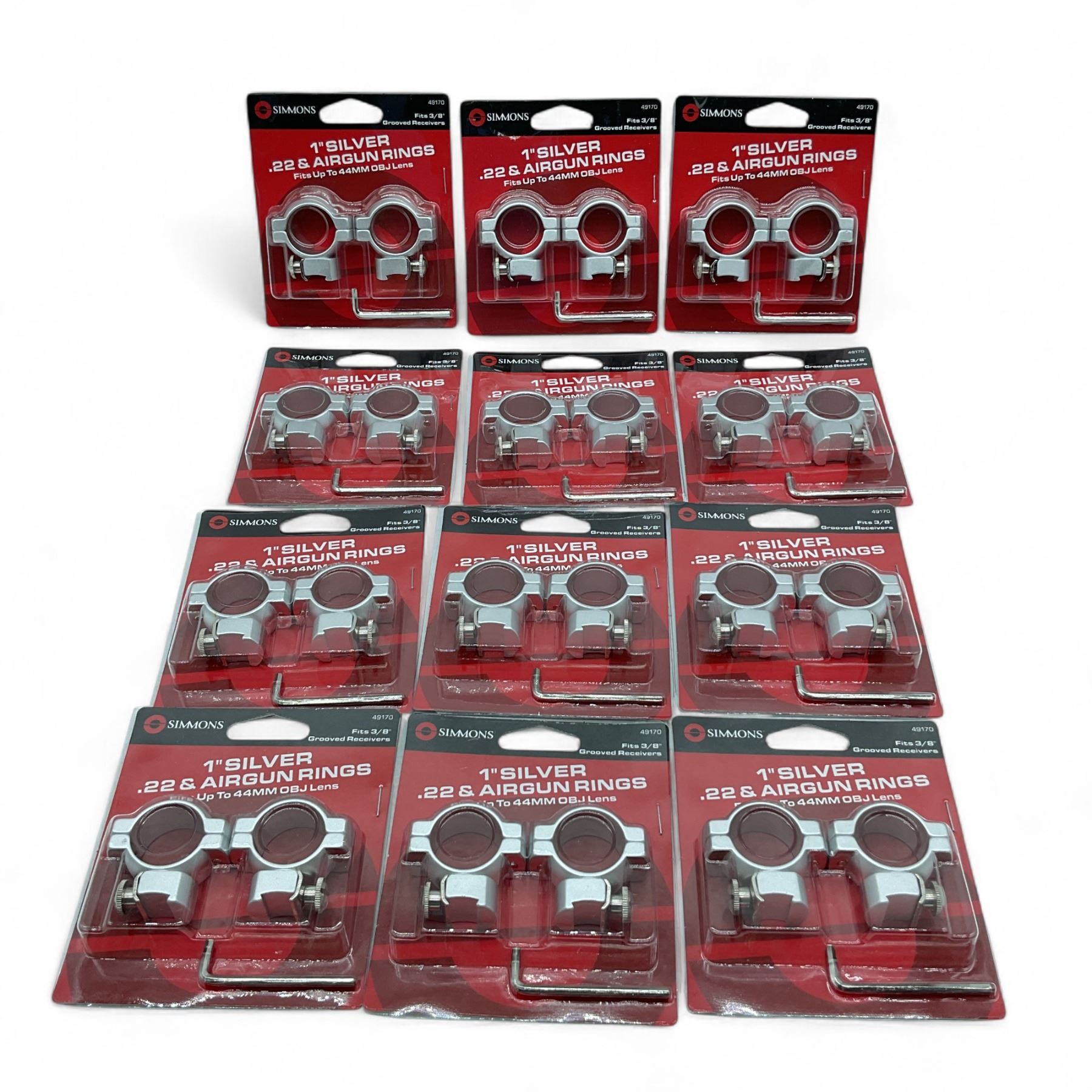 Simmons 1" 22 Rings for 3/8" Grooved Receivers, Medium Silver X 12 Sets