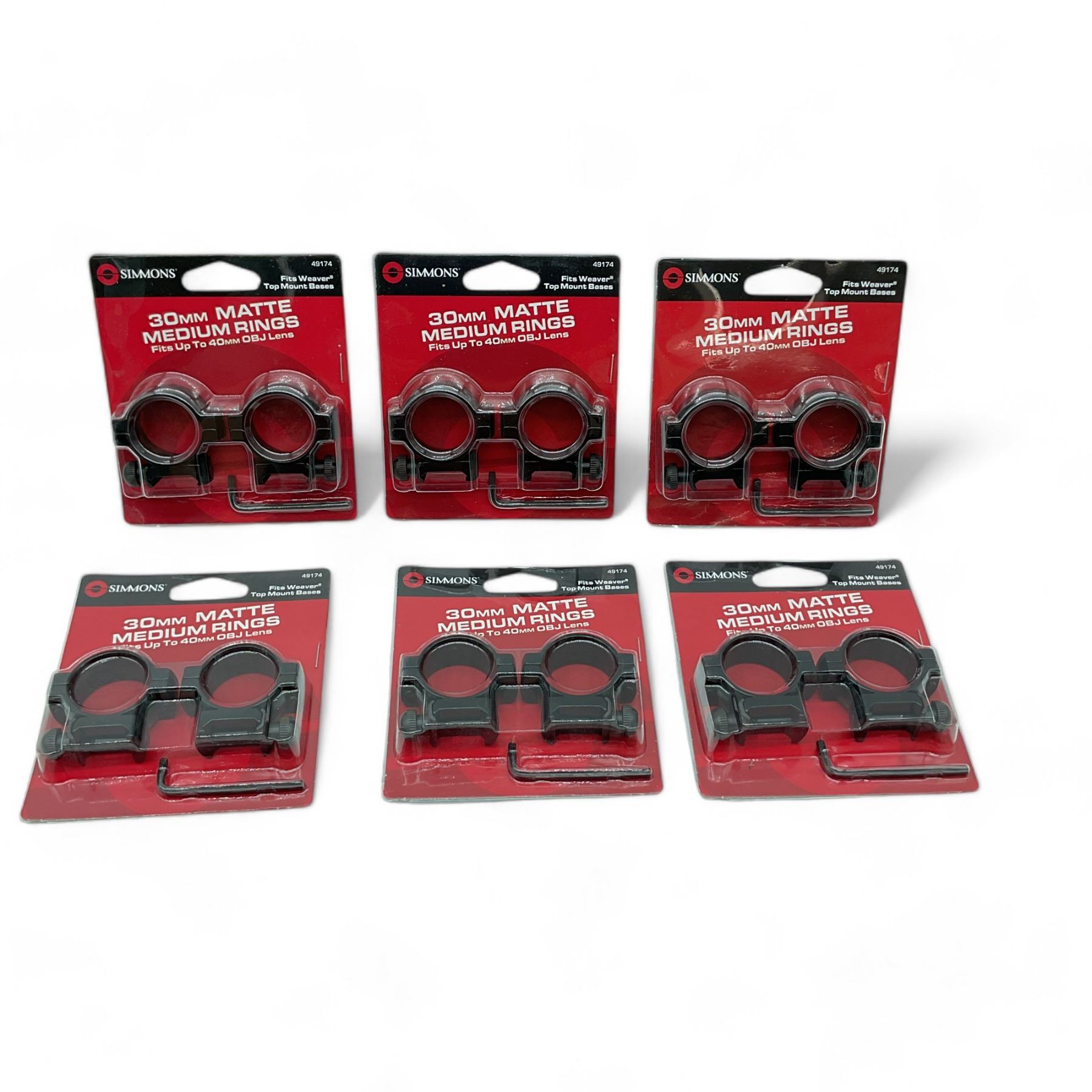 Simmons 30mm Matte, Medium Rings Set X6, New