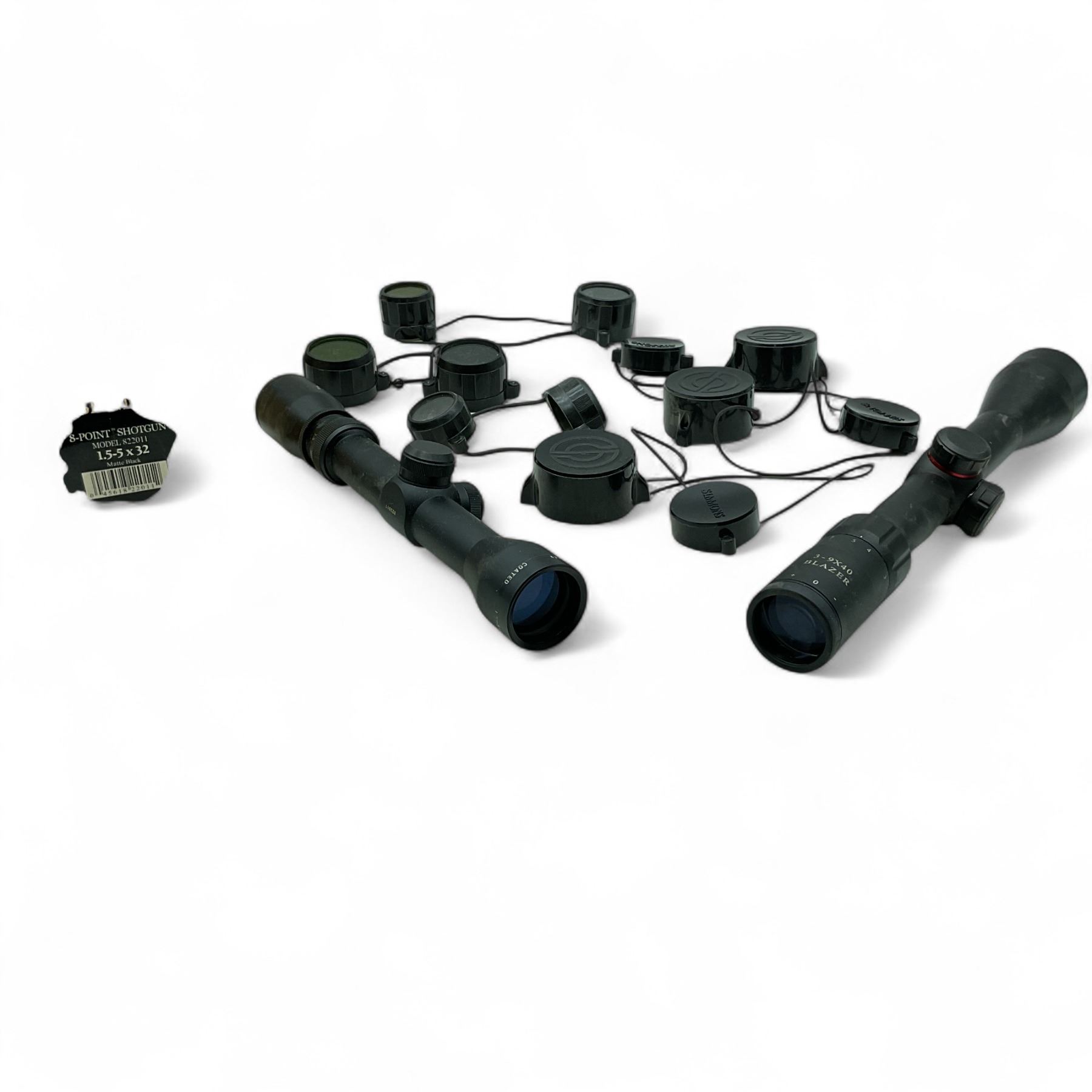 Simmons 8 Point 1.5 - 5 X 32 mm Shotgun Scope and Simmons Blazer 3-9 X 40 mm Scope with Duplex Reticle and 4 Sets of Scope Covers