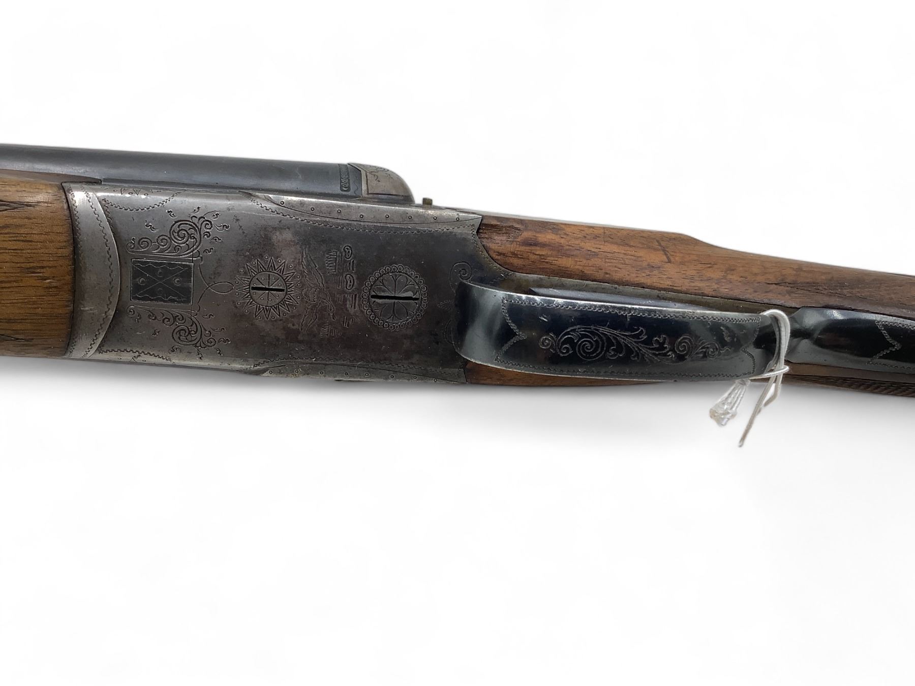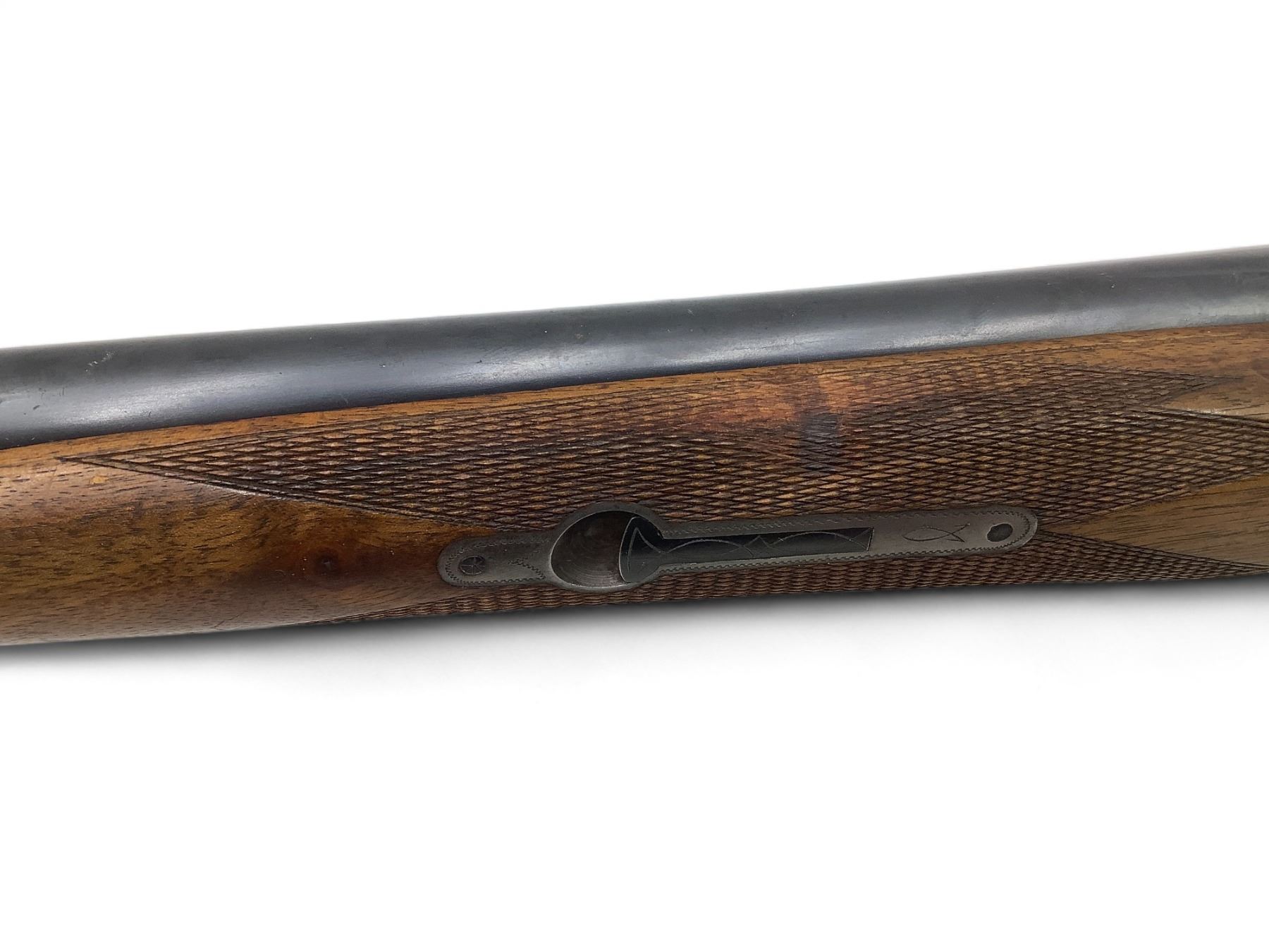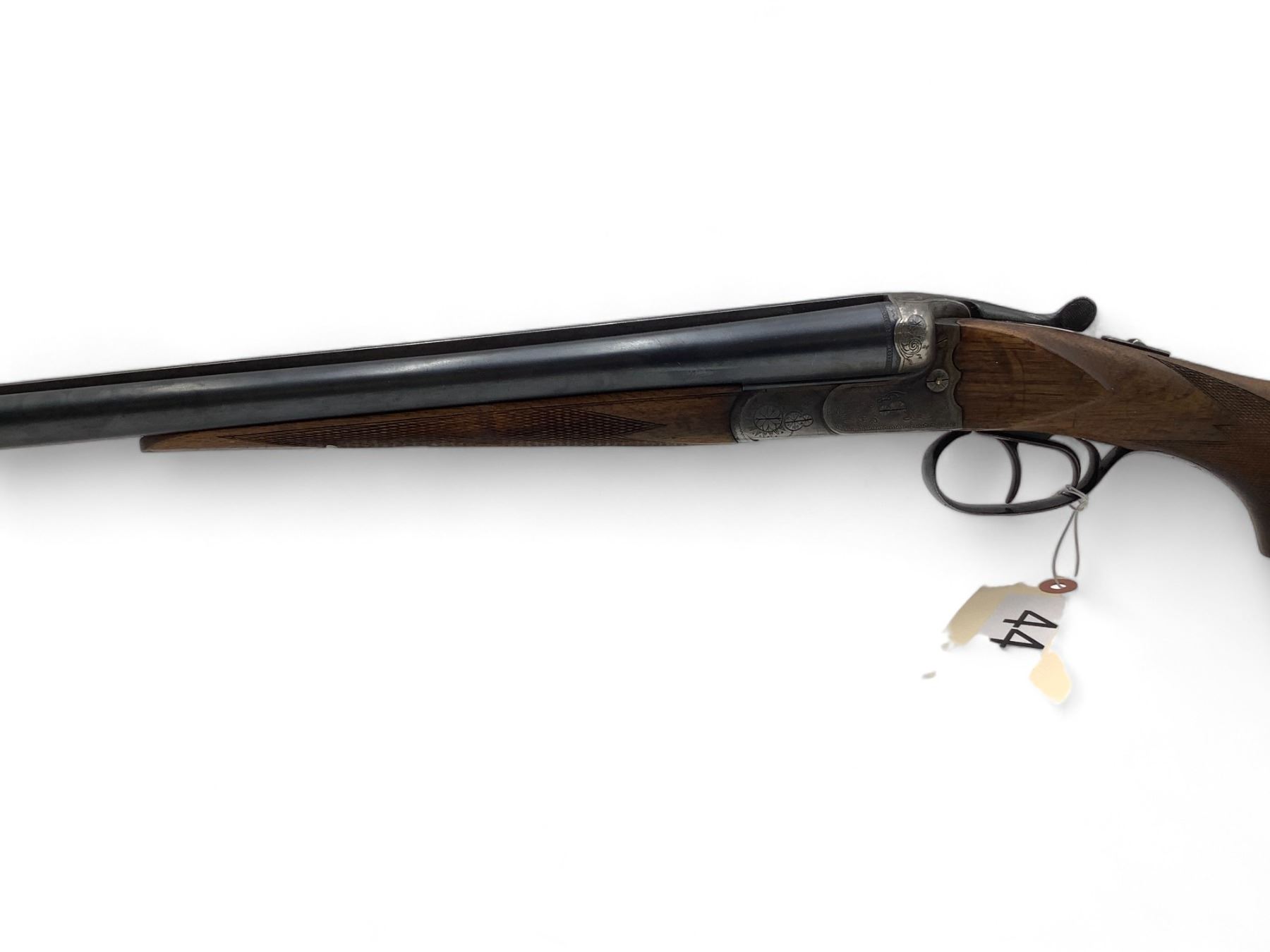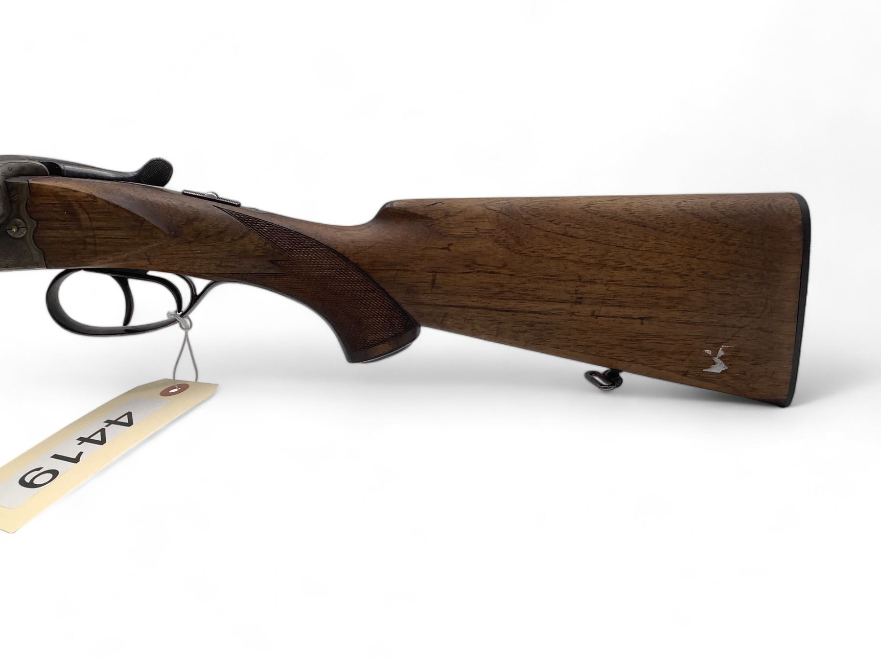 Simson Suhl Side By Side 12Ga Shotgun 27.5" Barrels Wood Stock. Bead sight, fixed choke. Double triggers, plastic butt pad. This is a non-restricted firearm.