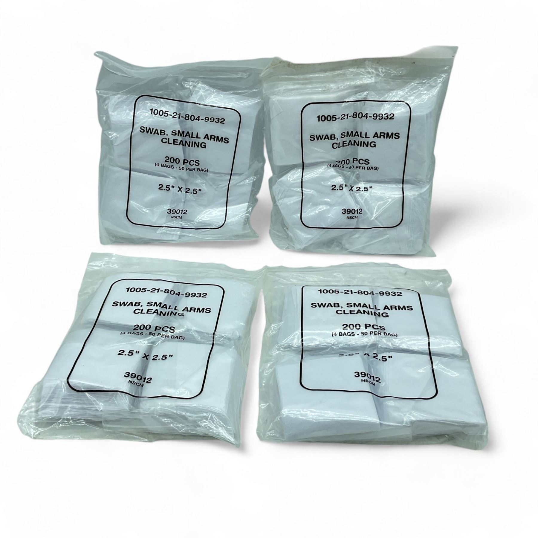 Small Arms Cleaning Swabs, 2.5" x 2.5", 200 Piece Bag X 4 Qty