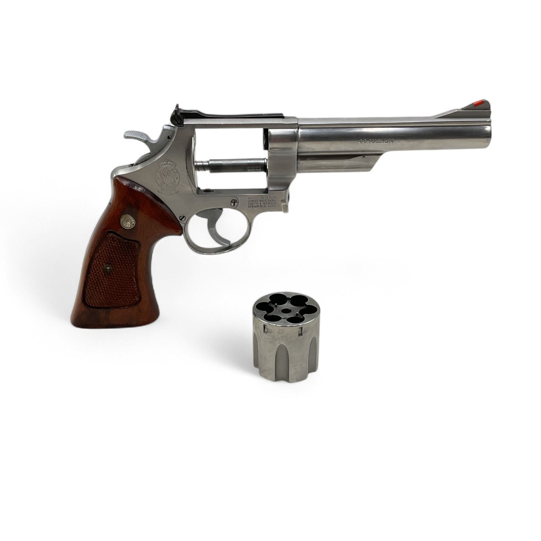 Smith & Wesson Model 629-1 Revolver .44 Magnum 6" Barrel Stainless With Wood Grips, Restricted. Crane appears to be bent and cylinder is removed. May be missing parts.