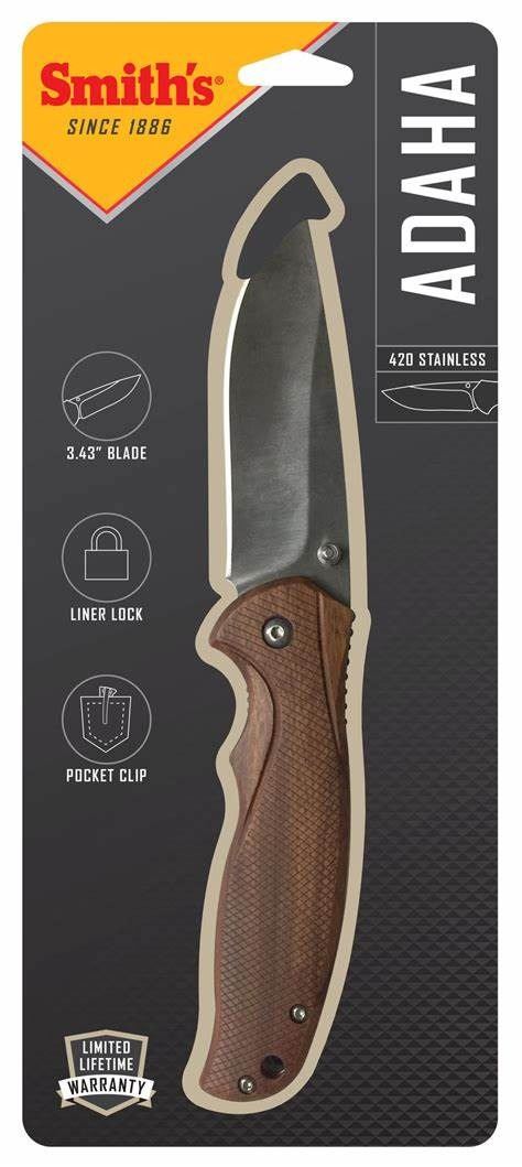 Smith's Adaha 3.43" Folding Blade Knife, Wooden Handle, New
