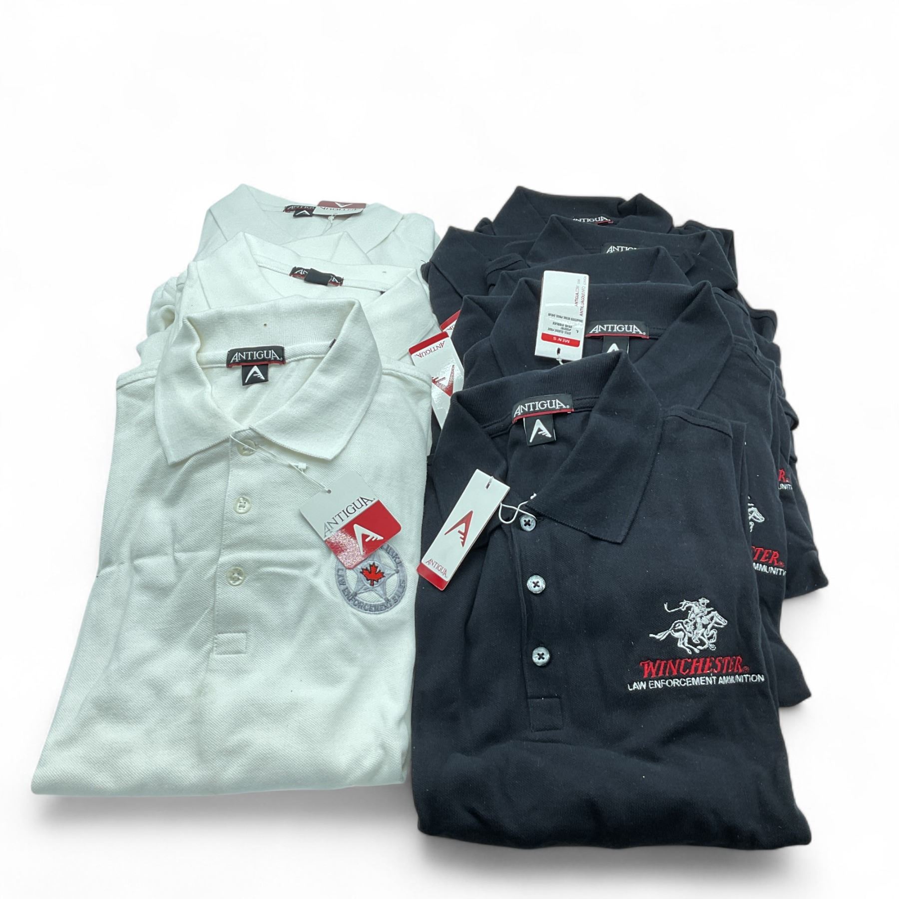 Solid Polo-Style Collared Shirts, Men's Size Large, White X 5 Qty, Black X 5 Qty