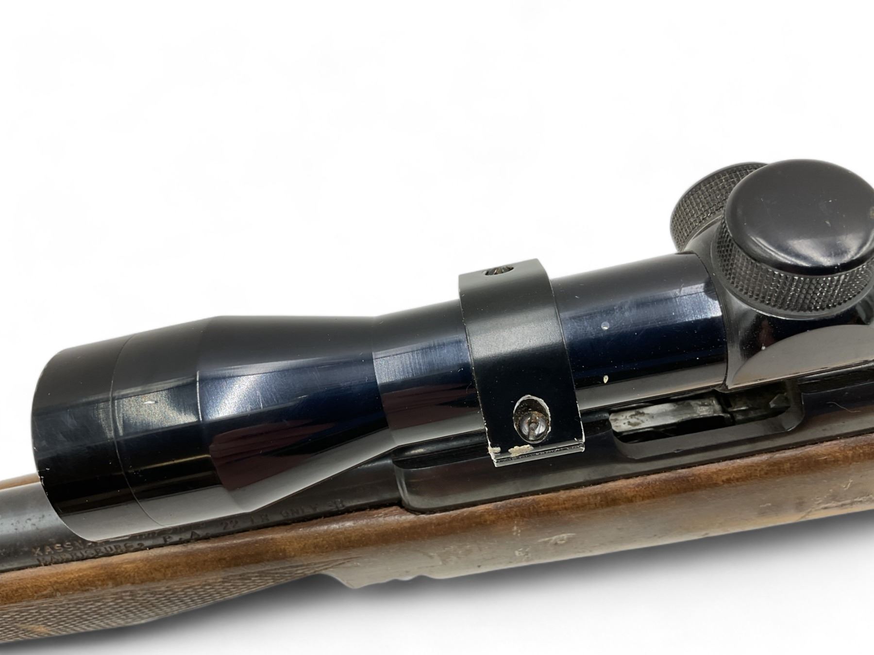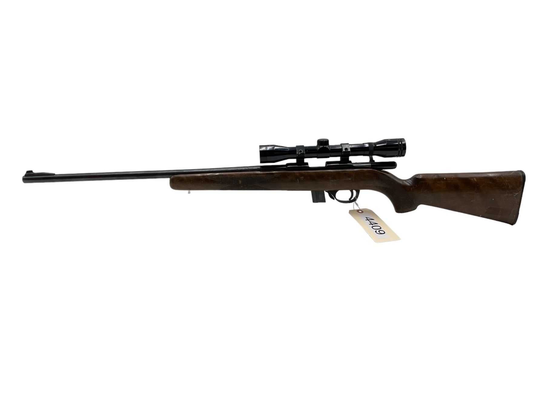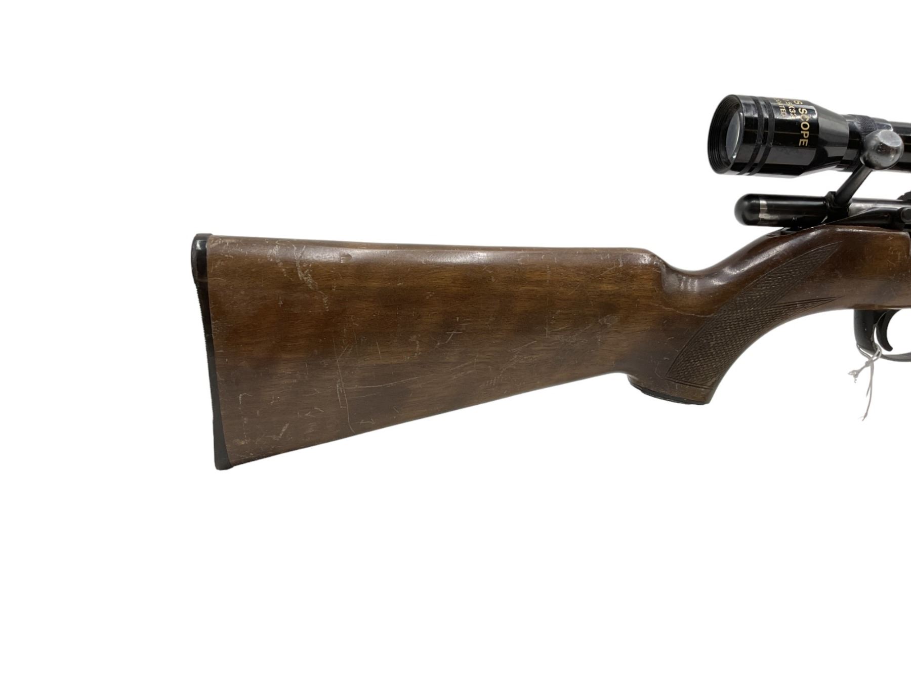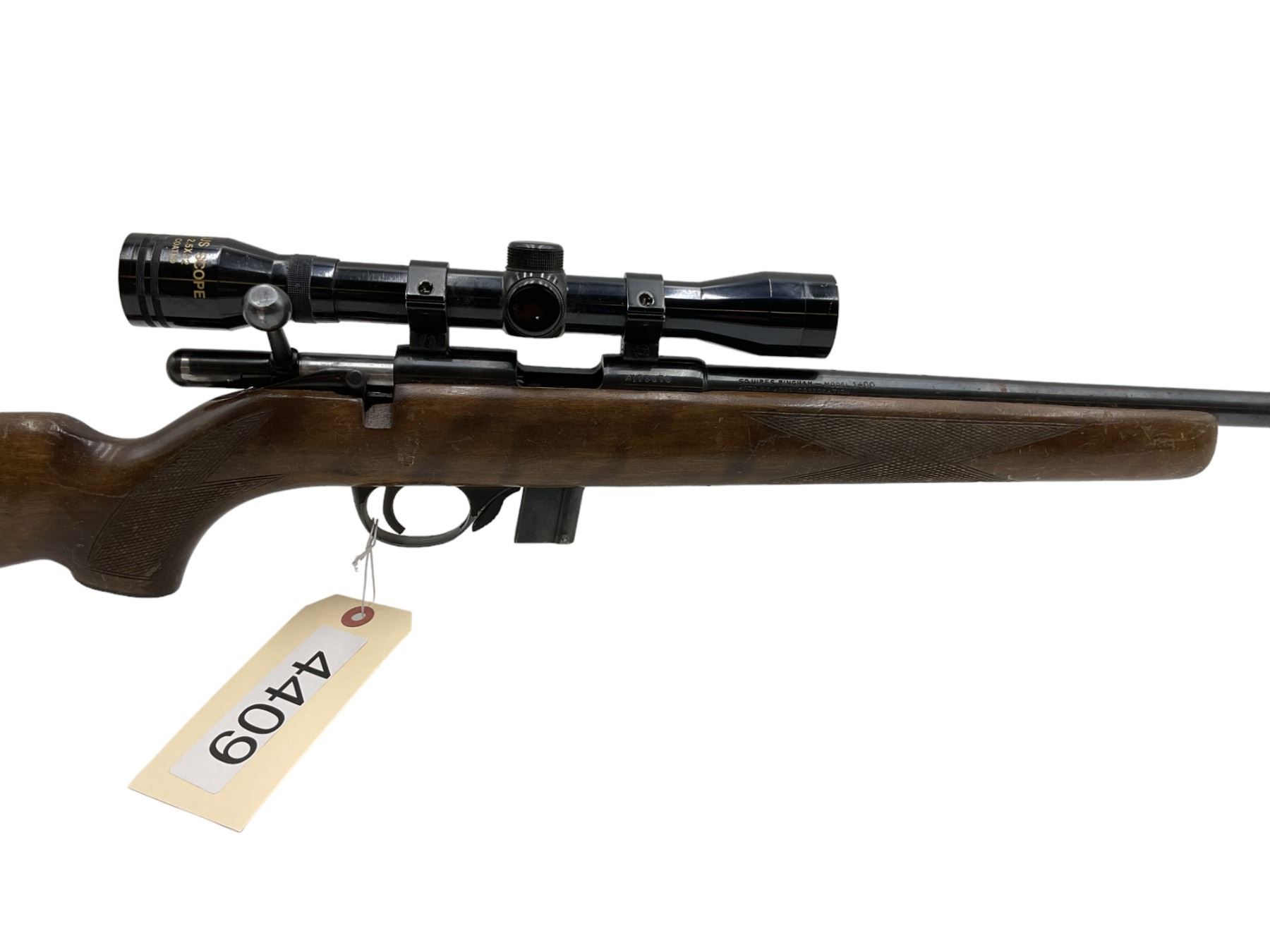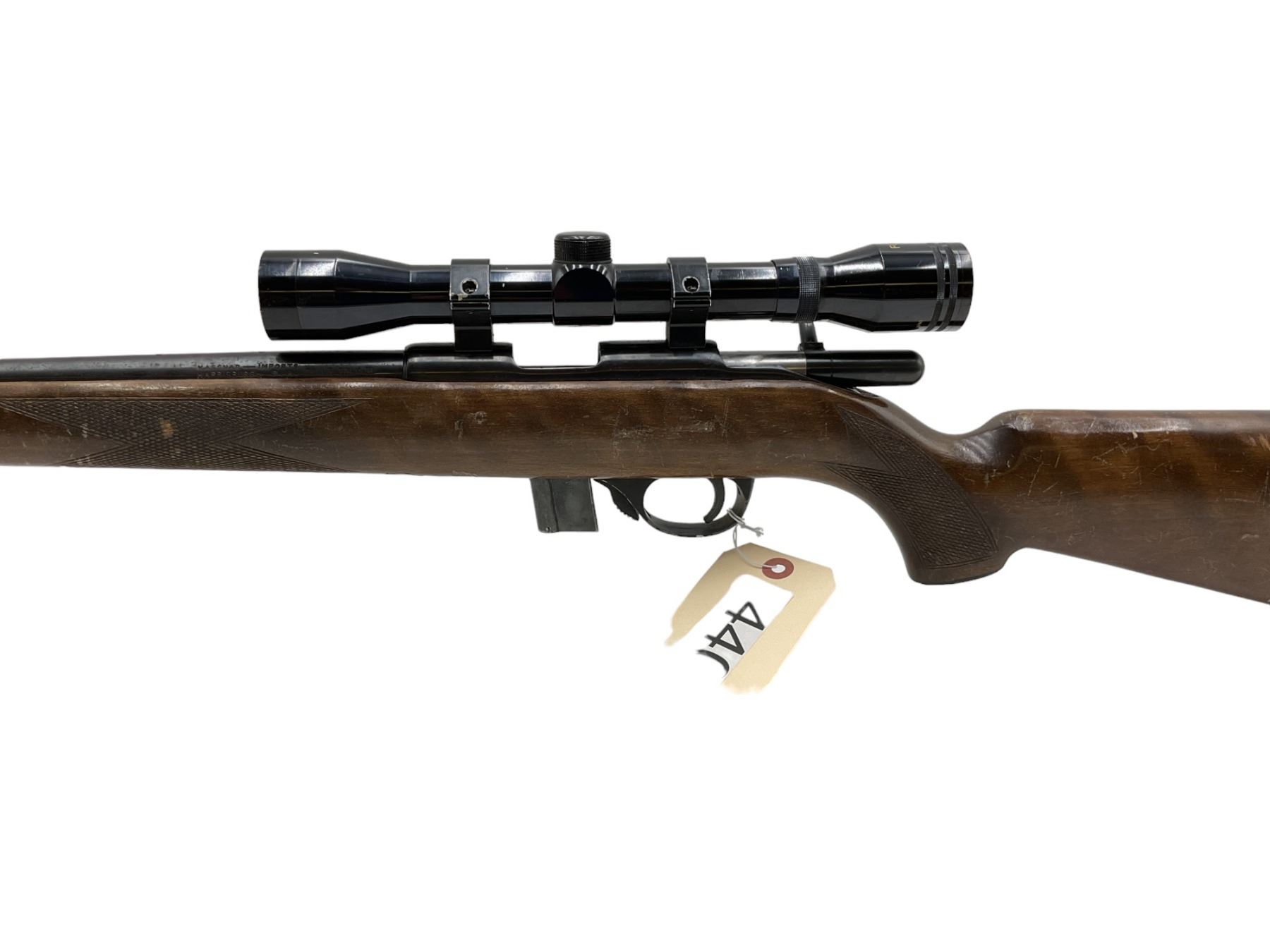 Squires Bingham 1400 Bolt Action Rifle 22LR 22" Barrel Wood Stock With 2.5X32 Scope. Bolt will not close. Detachable magazine, no rear sight. This is a non-restricted firearm.