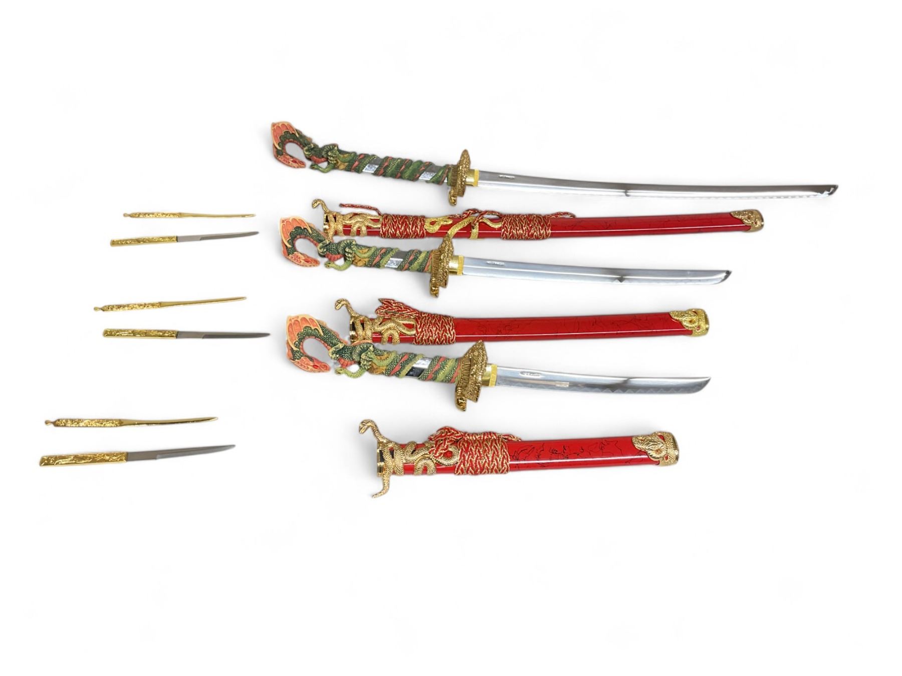 Stainless Steel 3-Piece Dragon Sword Set, 11.5", 16.75" and 26.25" Lengths, Red