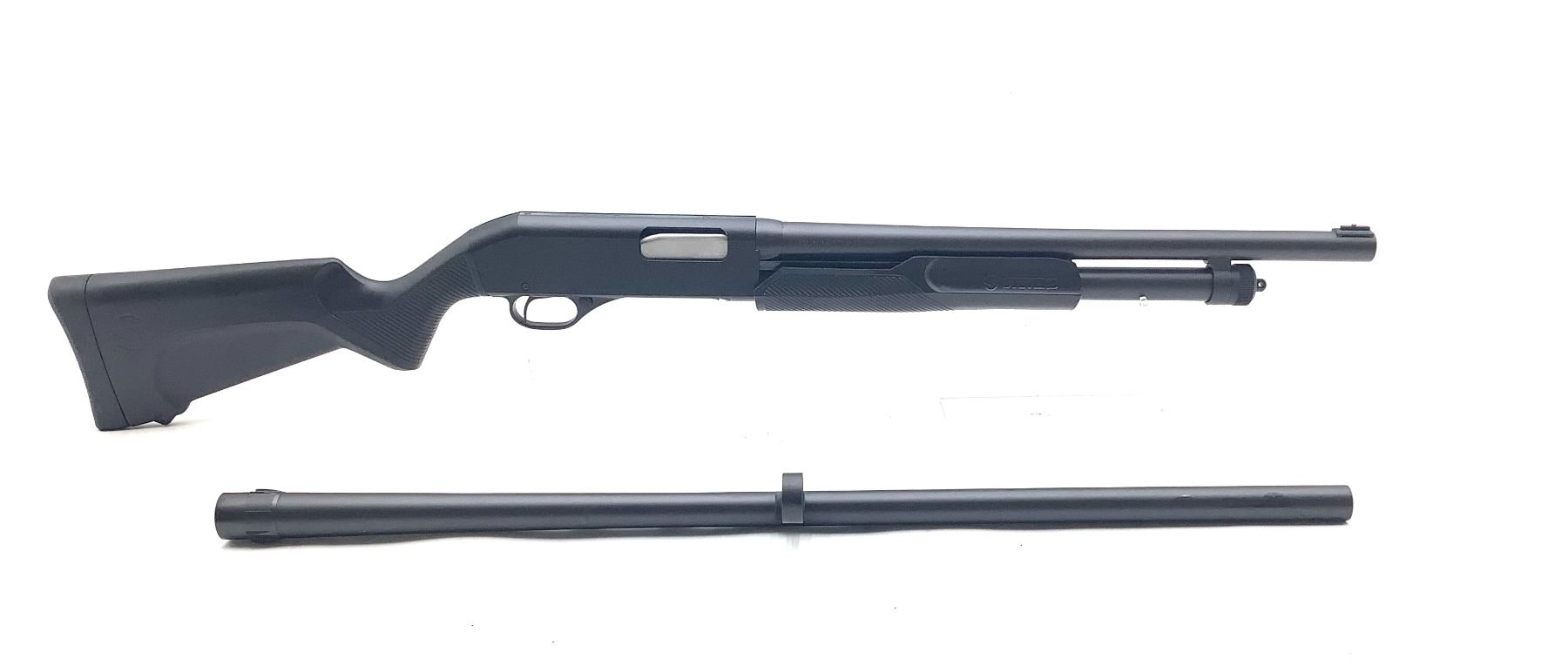 Stevens 320 Field Grade Combo 12Ga 3" Chamber 28" VR Barrel And 18.5" Barrel Synthetic Stock, New. 28" barrel includes removable choke, 18.5" barrel has fixed choke. This is a non-restricted firearm.