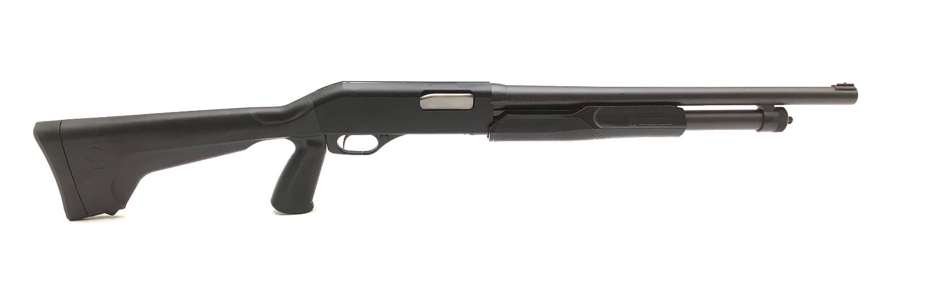 Stevens 320 Pump Action Shotgun 12Ga 3" Chamber 18.5" Barrel Black Synthetic Stock, New. Fixed choke, bead sight. This is a non-restricted firearm.