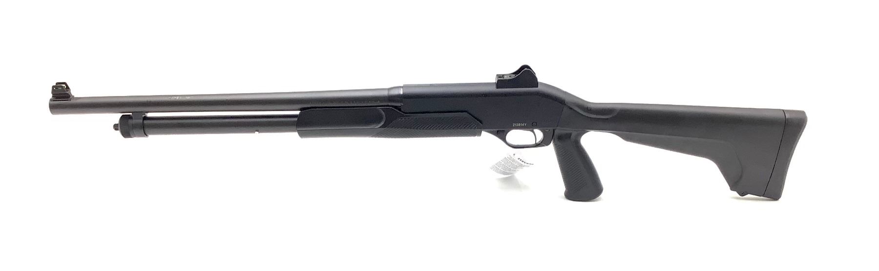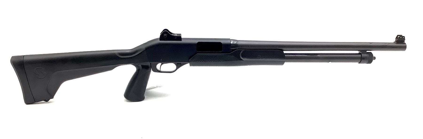 Stevens 320 Security Pump Action Shotgun 12 Ga 3" Chamber 18.5" Barrel Ghost Ring Sight, New. Pistol grip stock, fiber optic front sight. This is a non-restricted firearm.