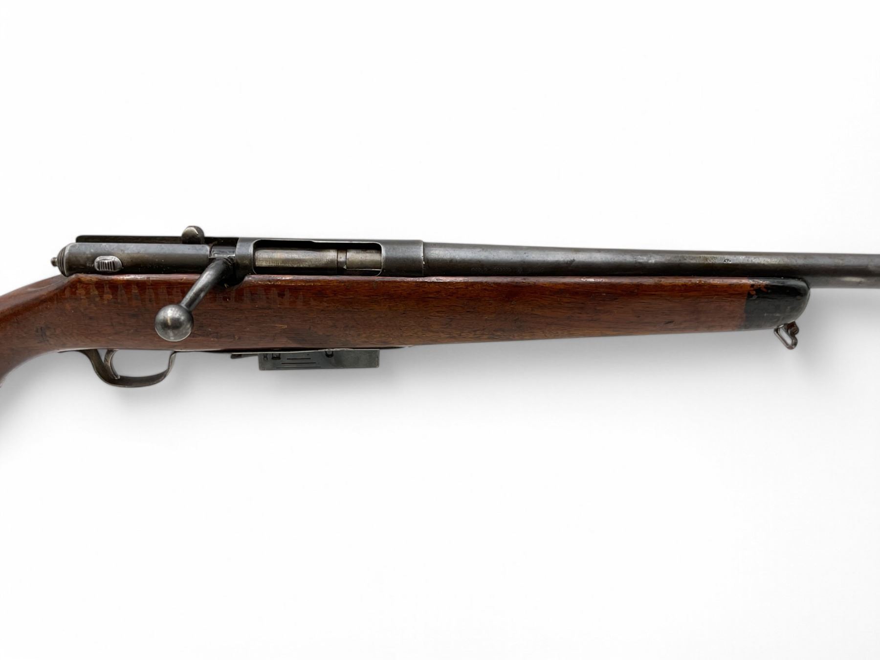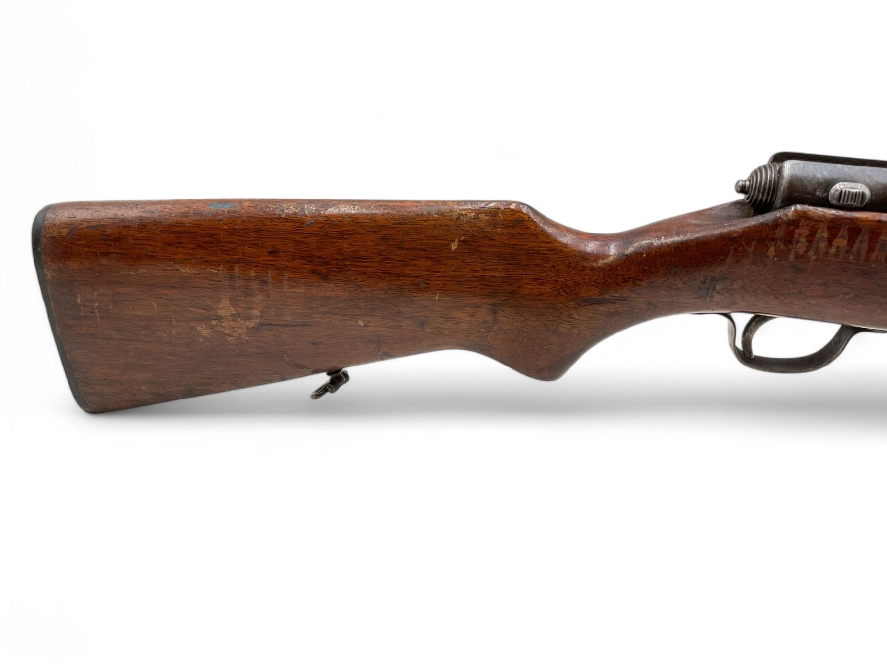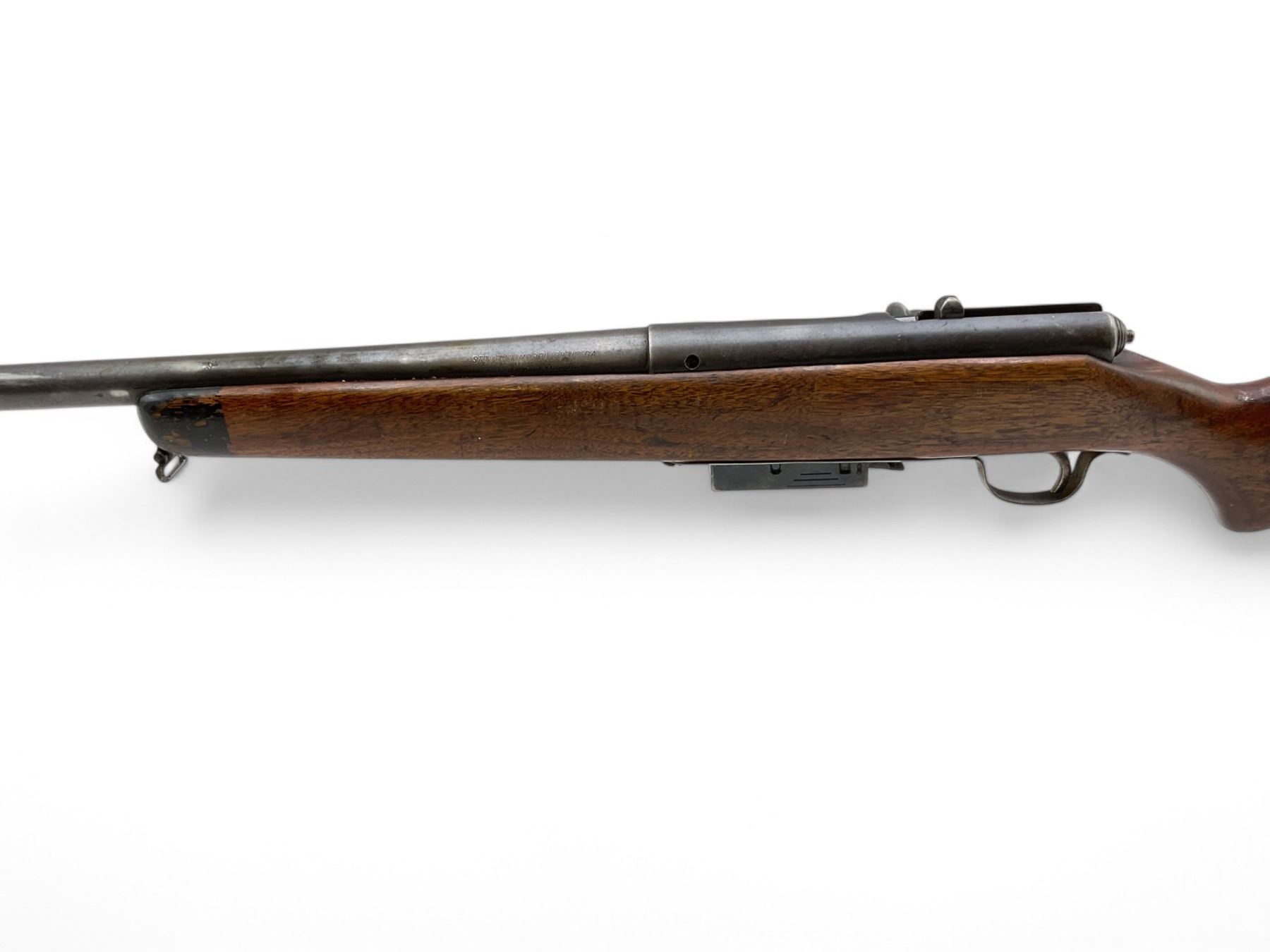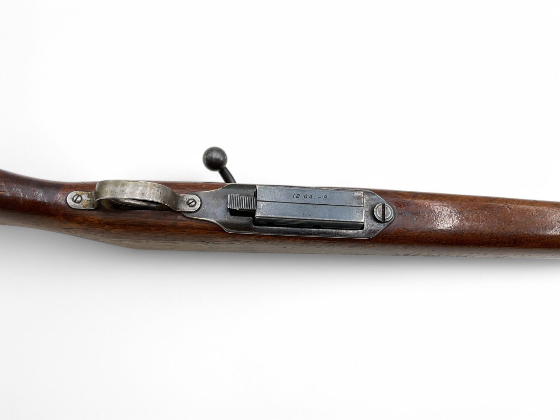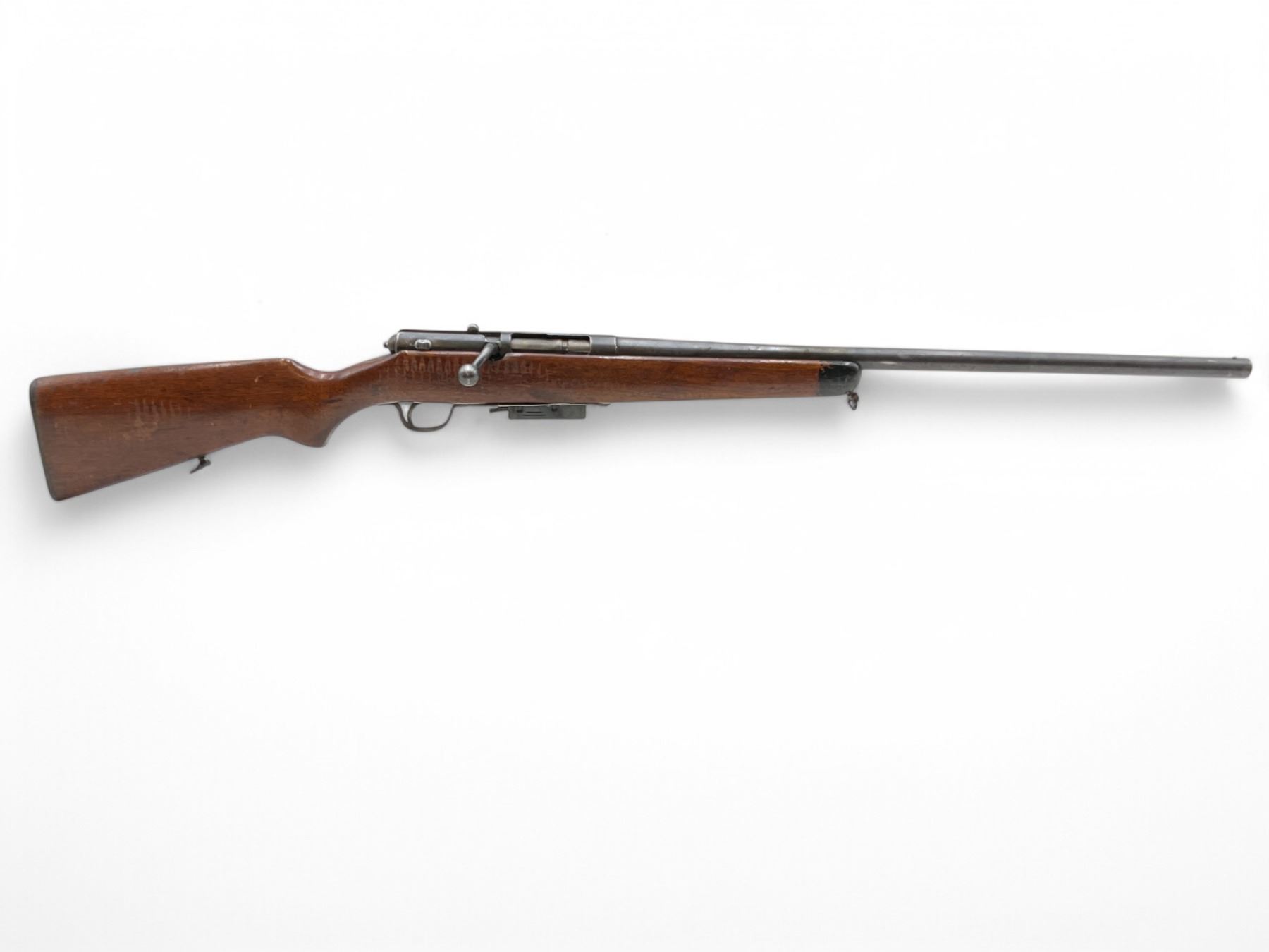 Stevens Model 58 Bolt Action 12Ga Shotgun 2.75" Chamber 26" Barrel Wood Stock. Bead sight, fixed choke. Comes with one detachable magazine. Plastic butt plate broke in middle. This is a non-restricted firearm.