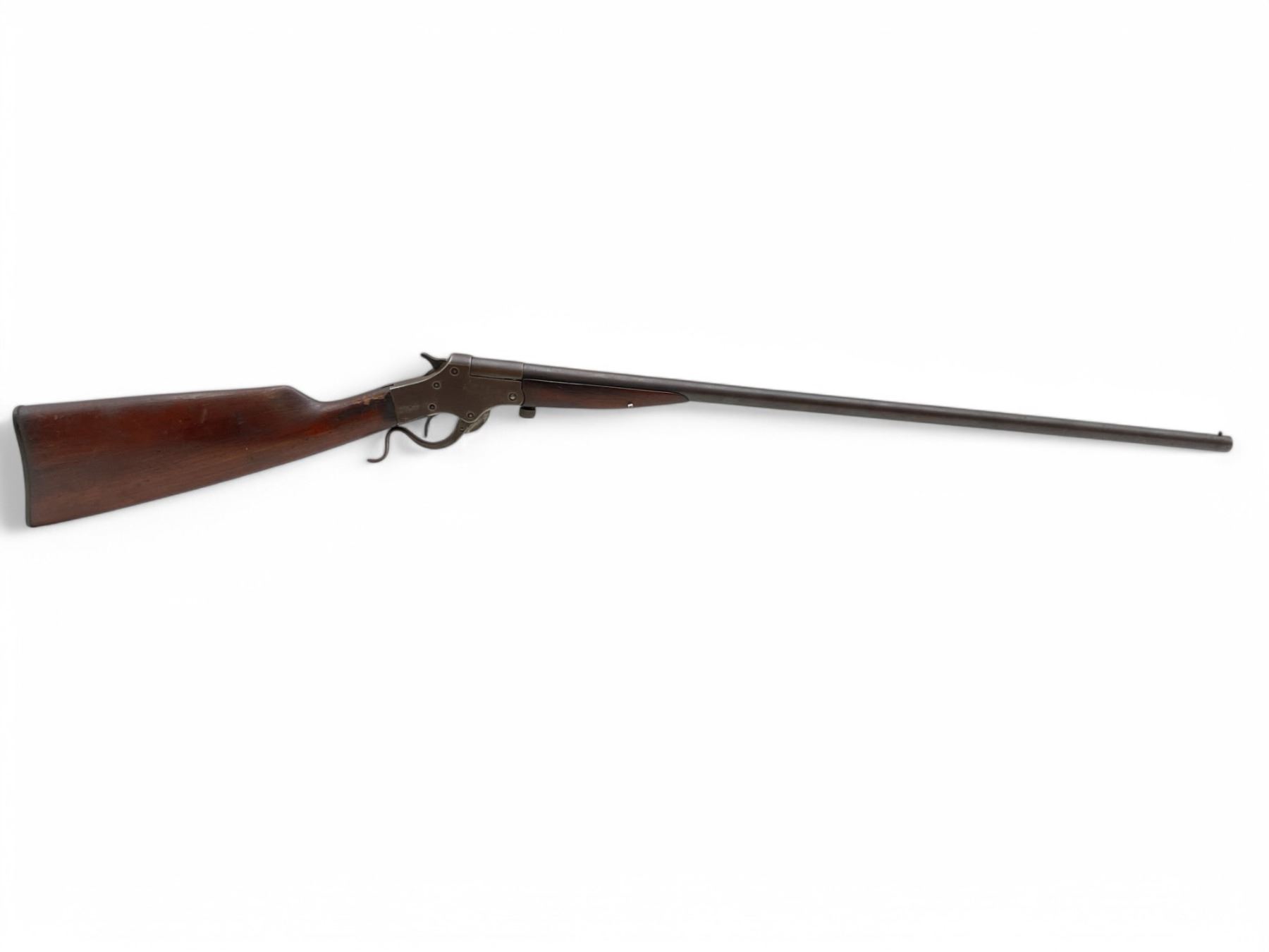 Stevens Single Shot Shotgun .44 Shot 24" Barrel Wood Stock. Bead sight; fixed choke. Rear stock has cracks near receiver. This is a non-restricted firearm.