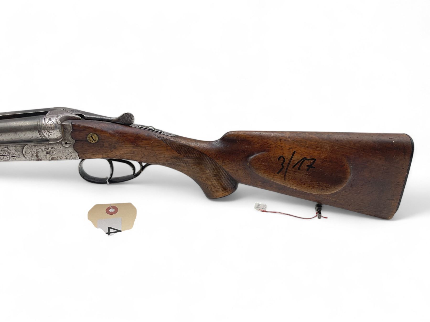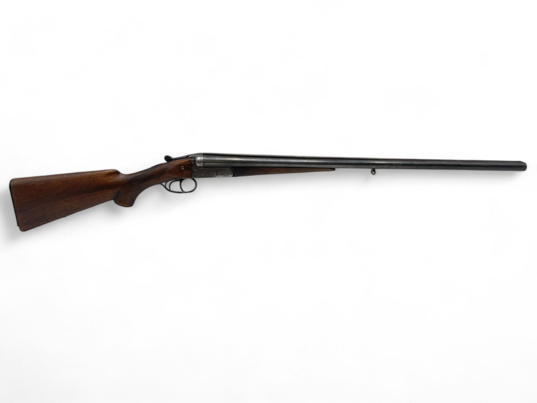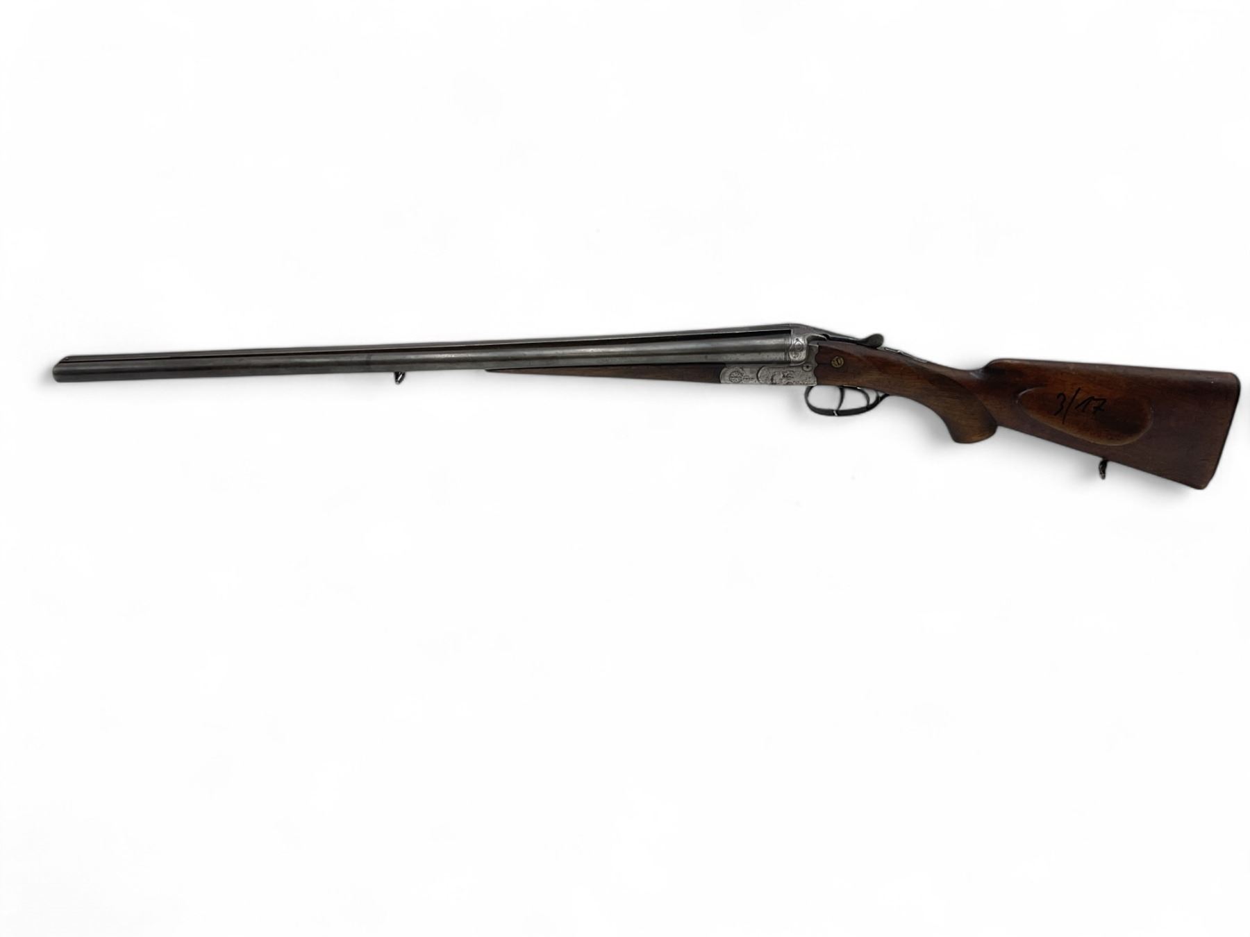 Suhl Side By Side 16Ga Shotgun 28" Barrels Wood Stock. Fixed chokes, bead sight. Double triggers. Rear stock cracked and repaired. Plastic butt plate cracked and missing a piece. Receiver is loose when locked up. This is a non-restricted firearm.