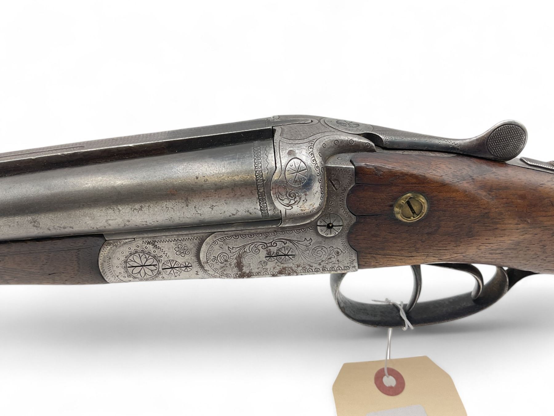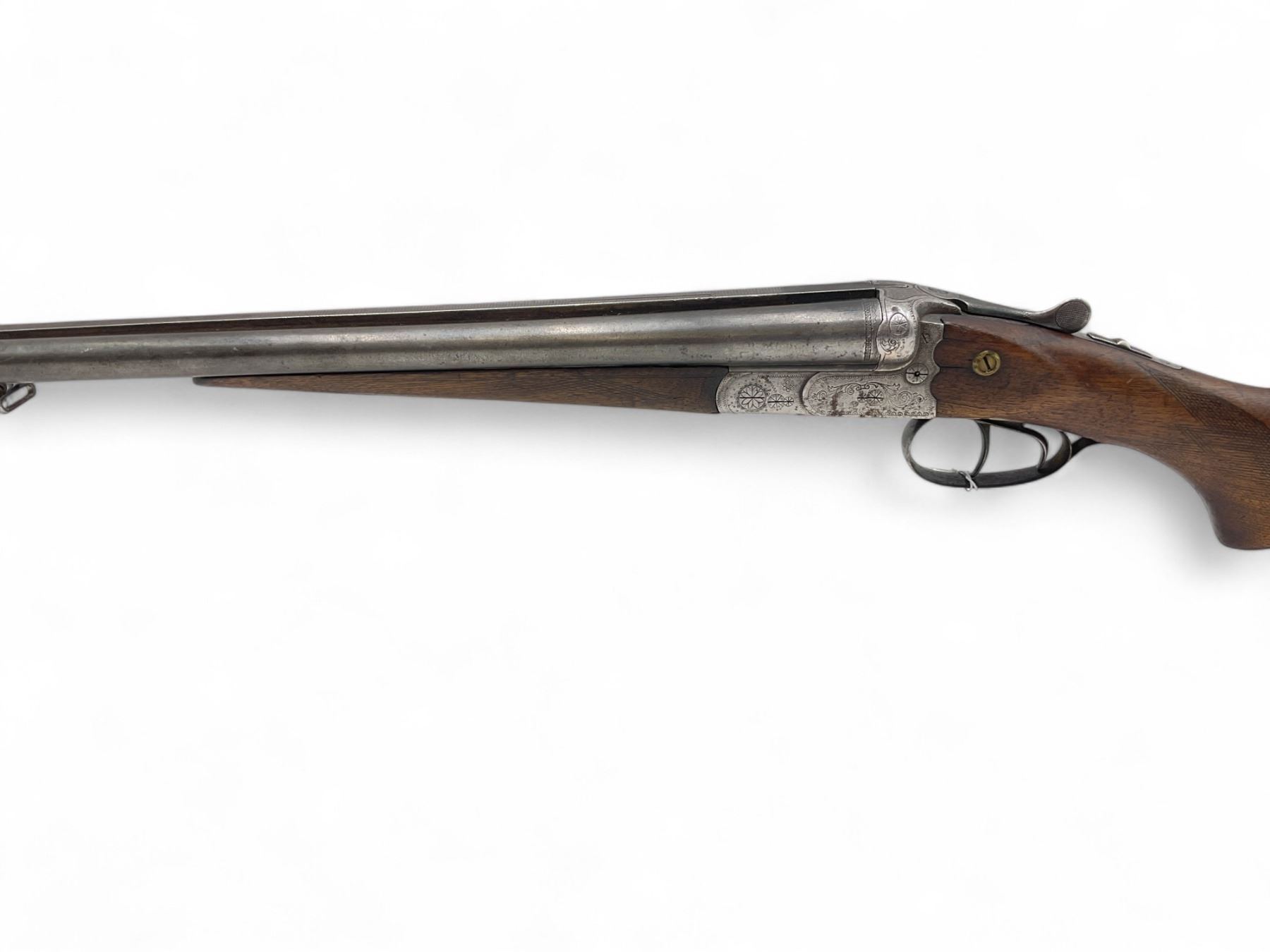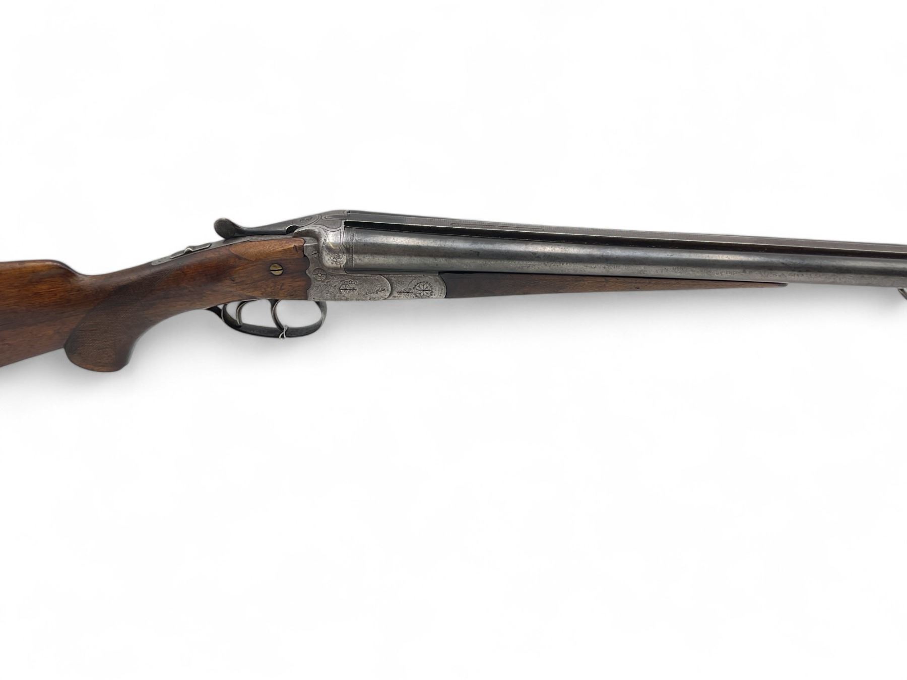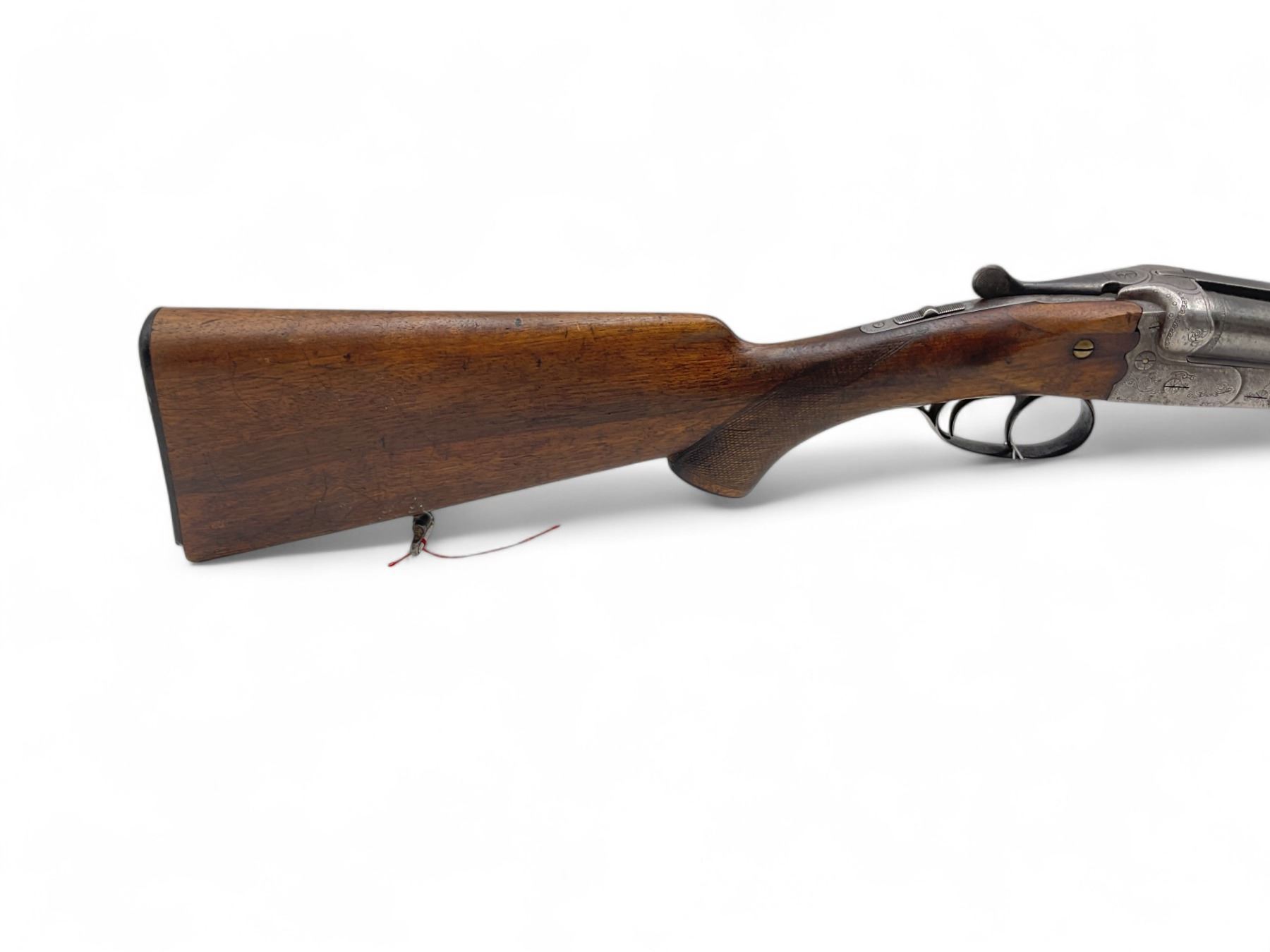 Suhl Side By Side 16Ga Shotgun 28" Barrels Wood Stock. Fixed chokes, bead sight. Double triggers. Rear stock cracked and repaired. Plastic butt plate cracked and missing a piece. Receiver is loose when locked up. This is a non-restricted firearm.