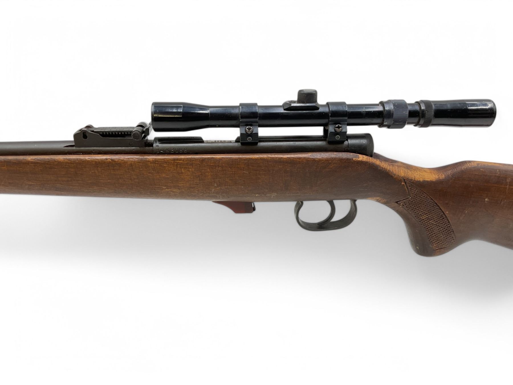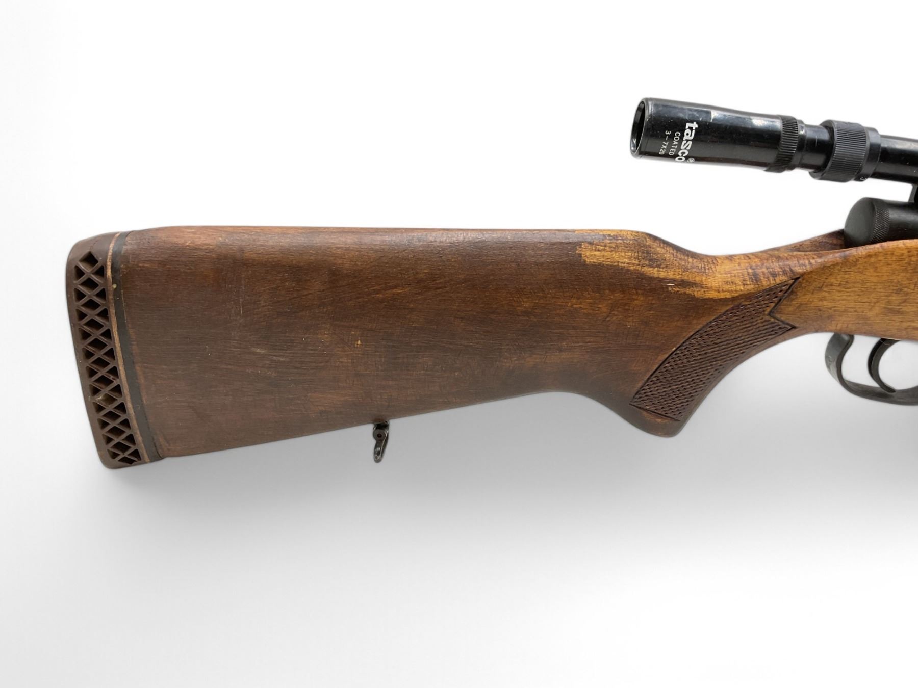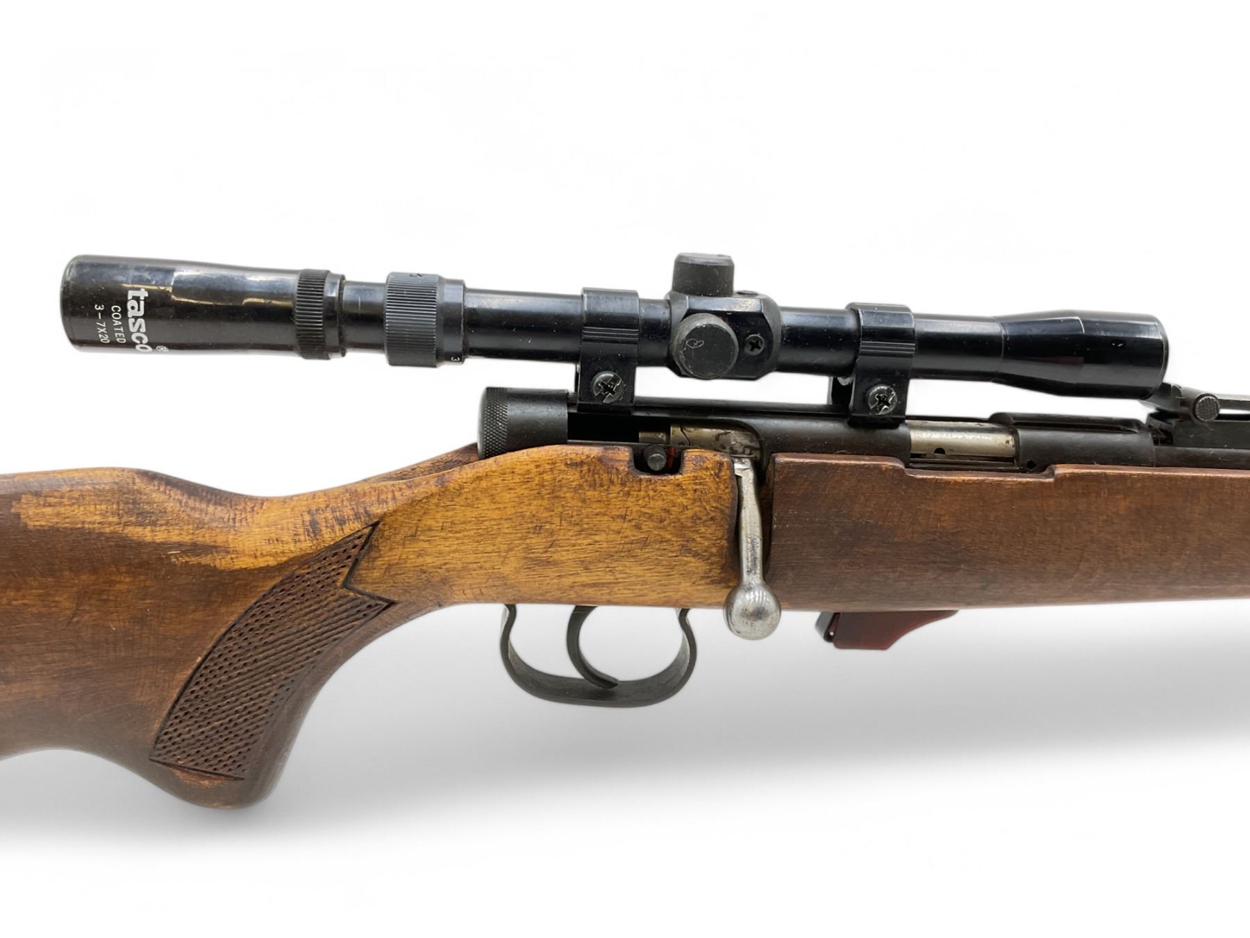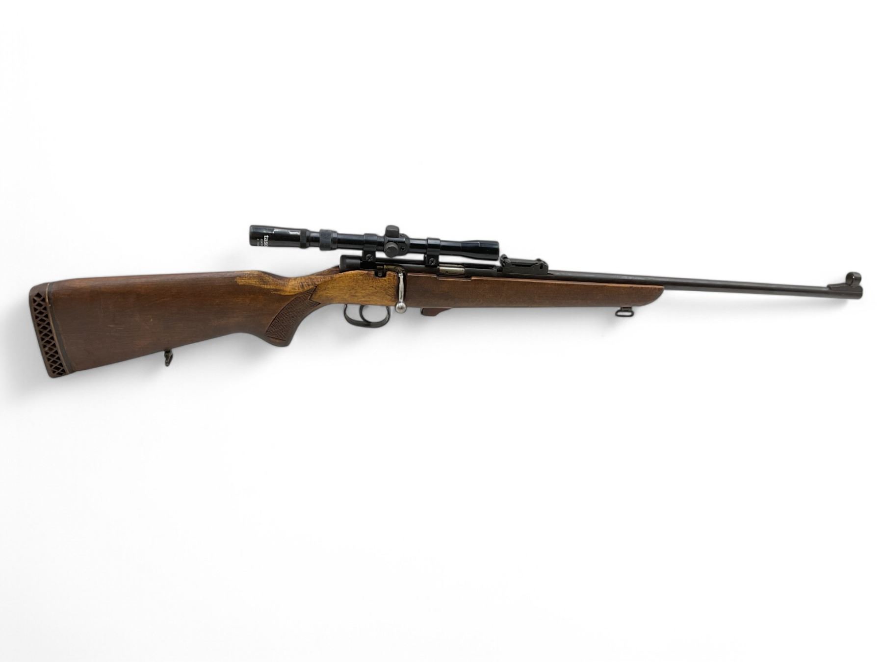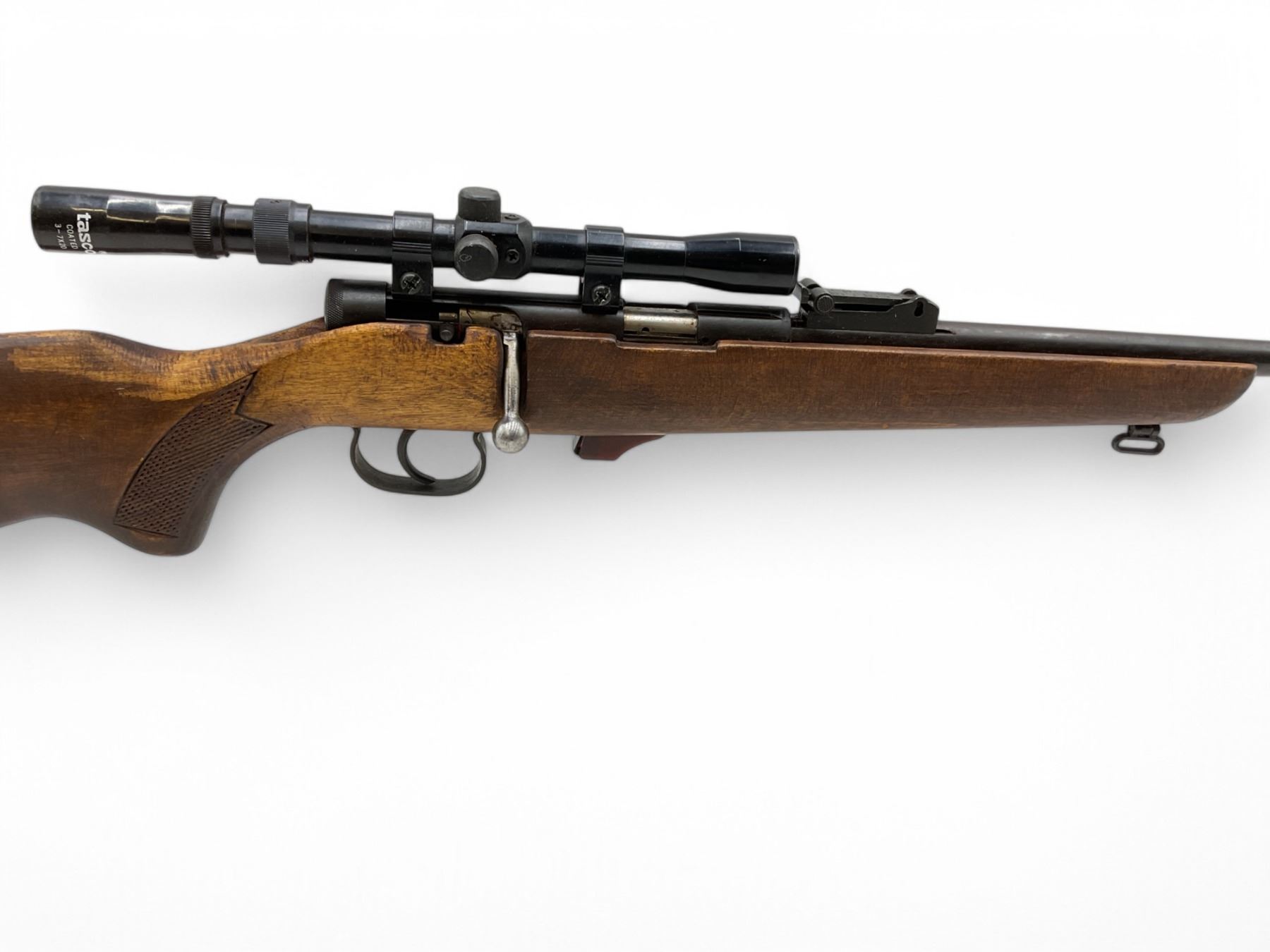 TOZ 17-01 Bolt Action Rifle 22LR 21" Barrel Wood Stock With Tasco 3-7X20 Scope. No magazine included. Hooded front sight, adjustable rear sight. Custom rubber butt pad. This is a non-restricted firearm.