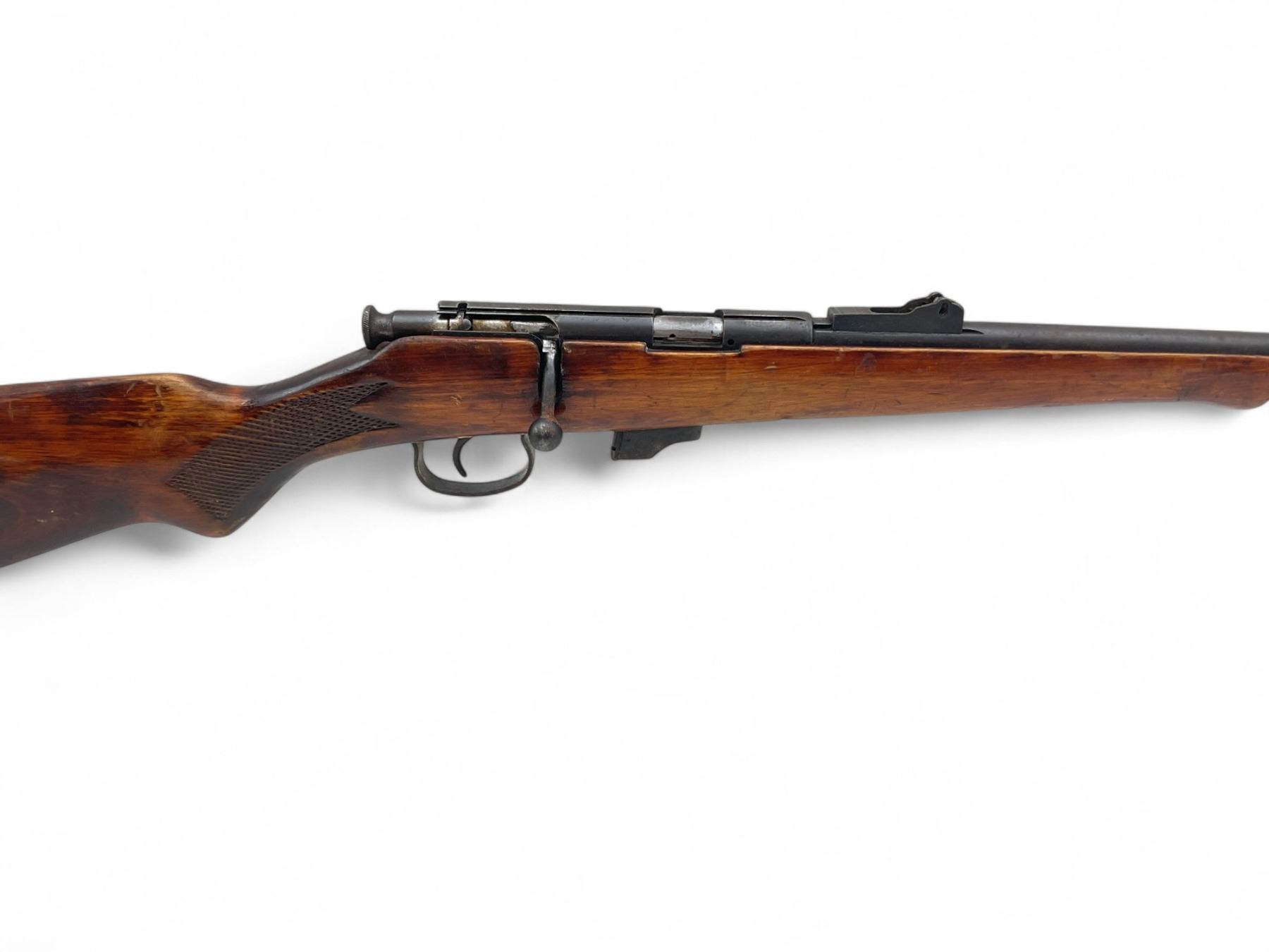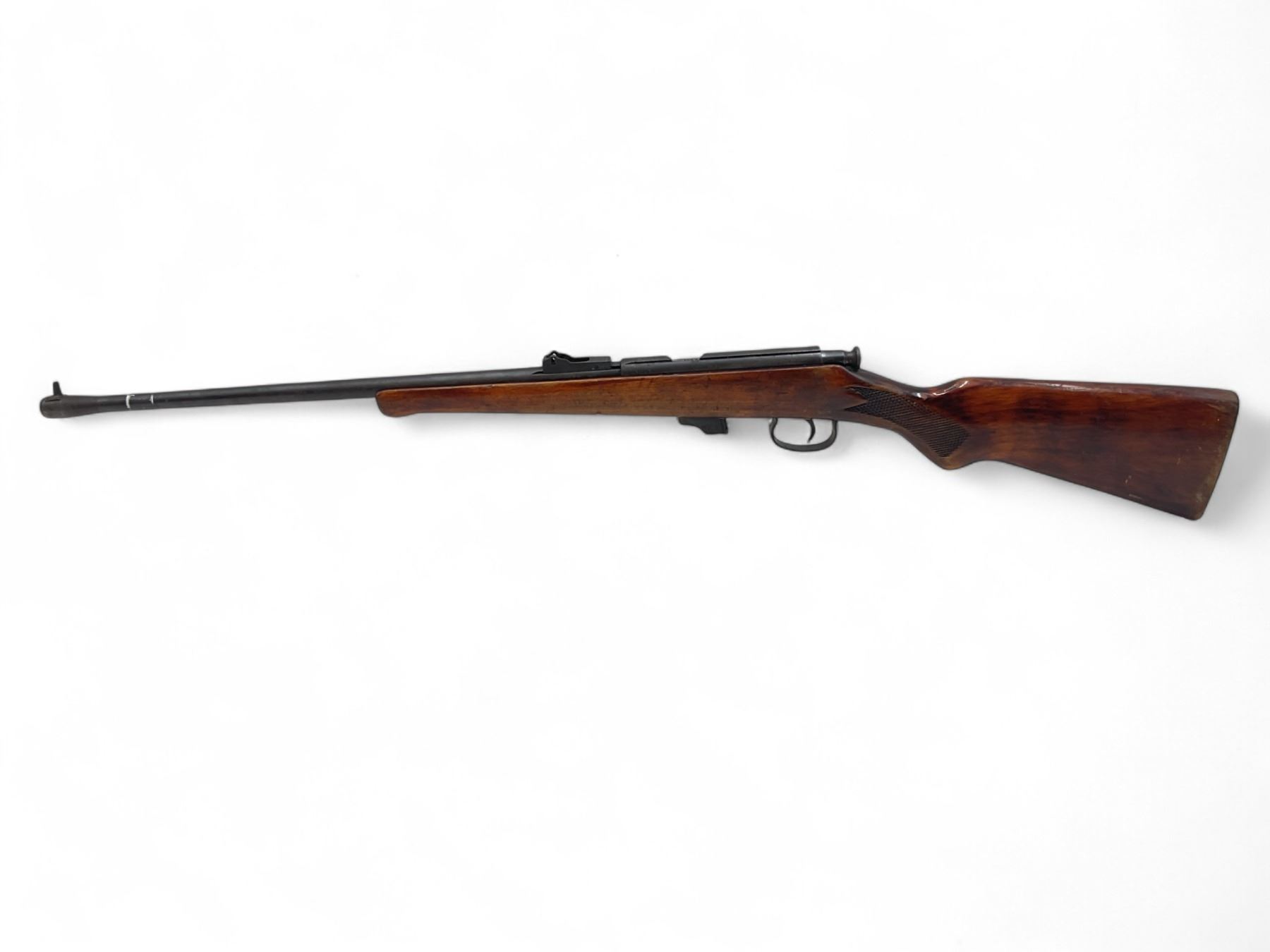 TOZ 17 Bolt Action Rifle .22LR 21" Barrel Wood Stock. No magazine included. Fixed front dight, missing rear sight. This is a non-restricted firearm.