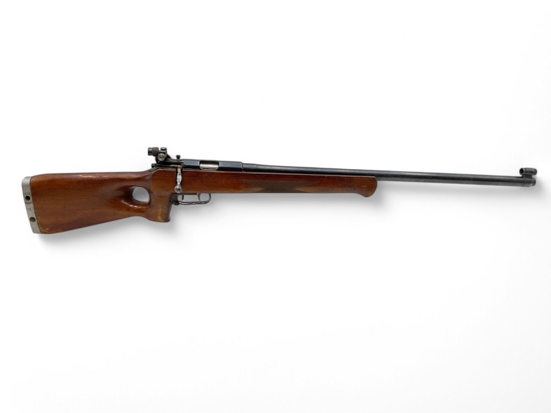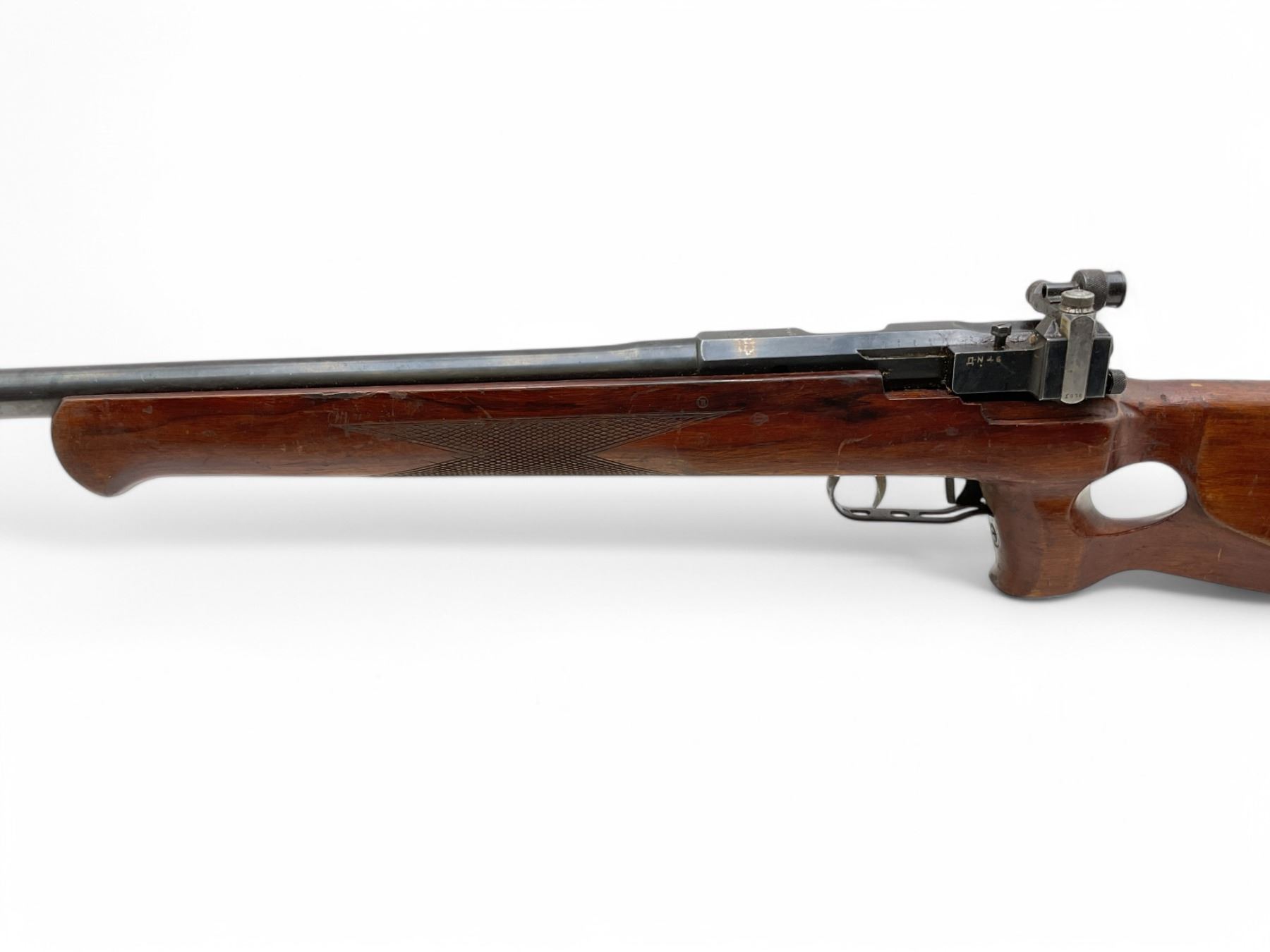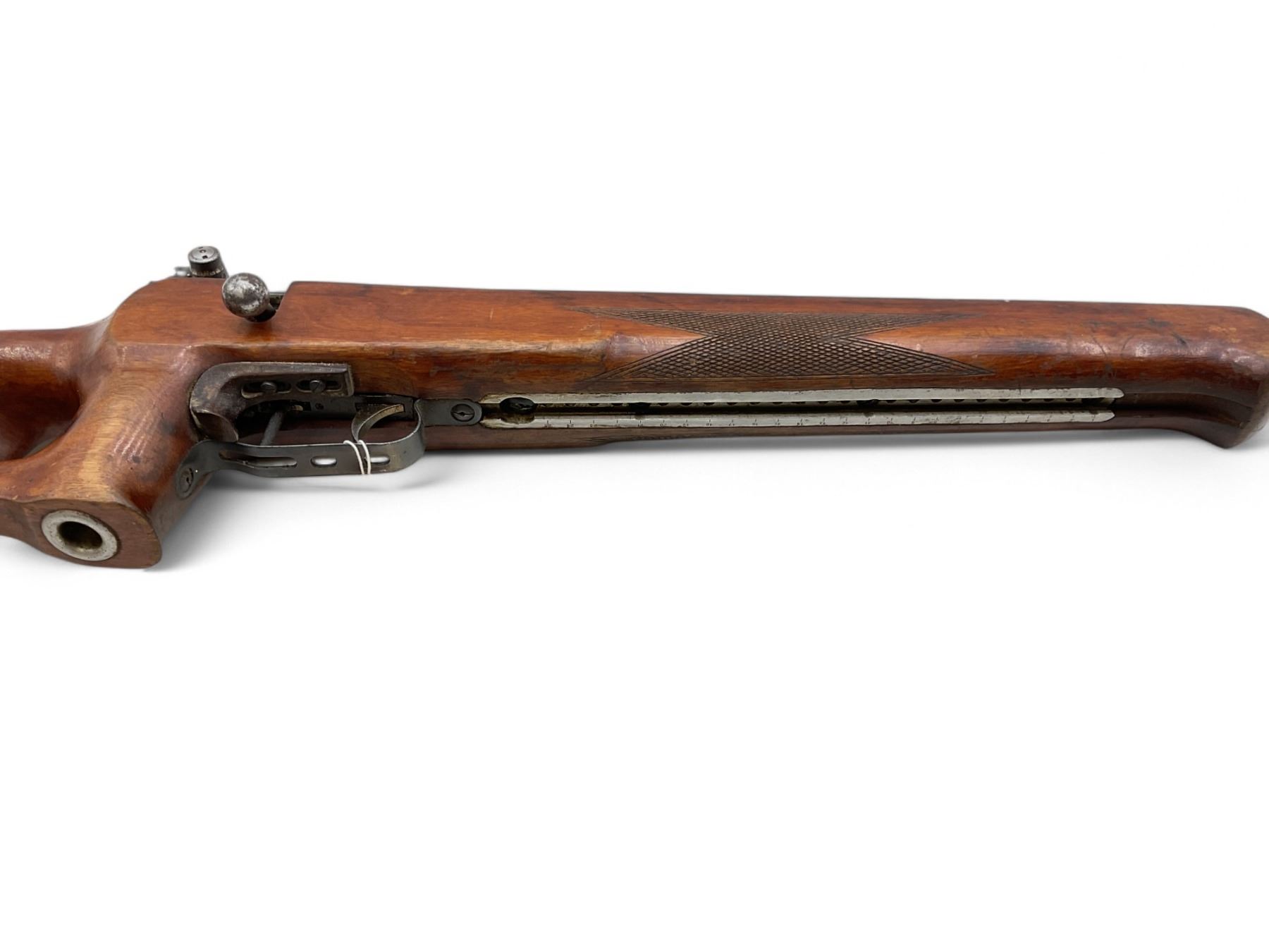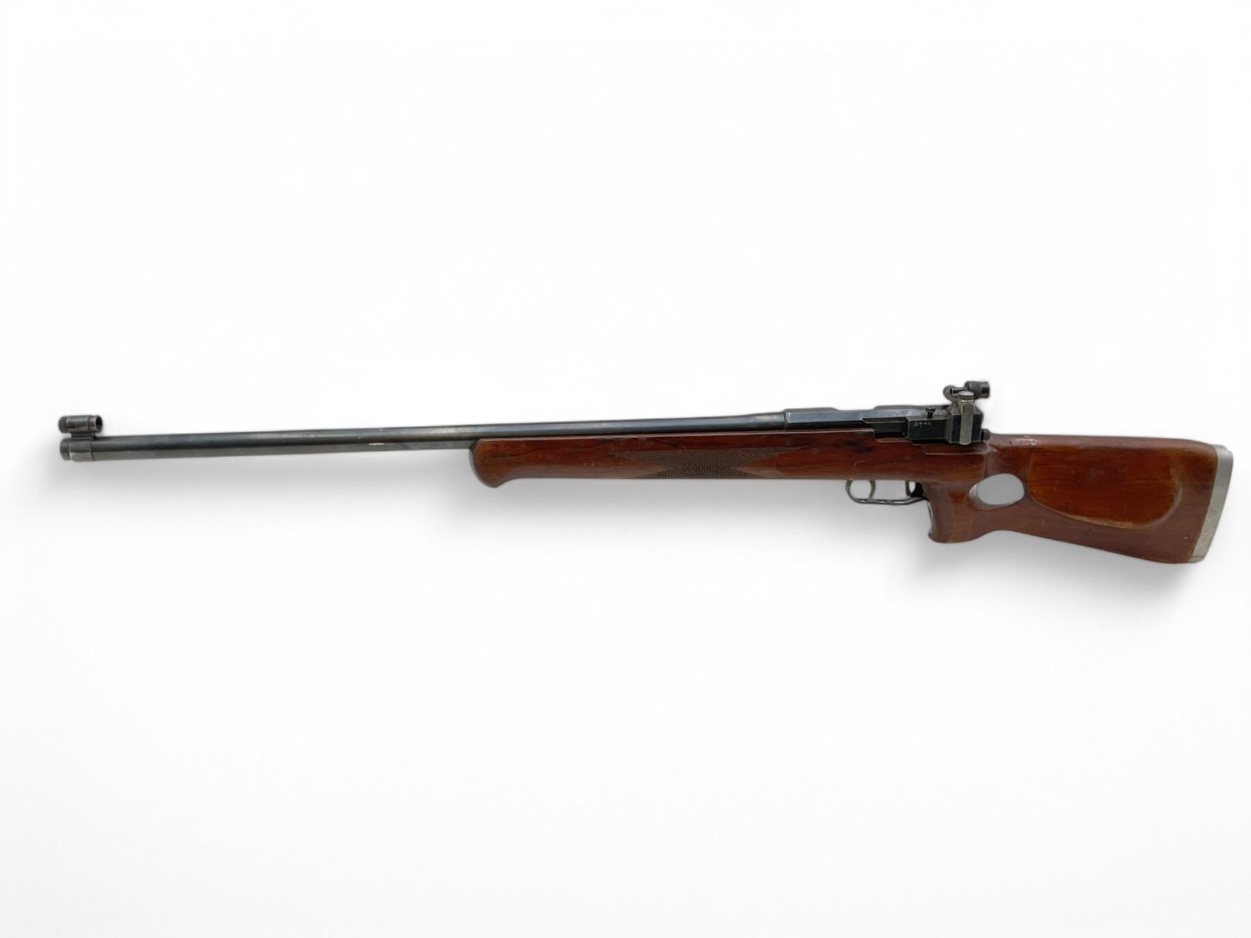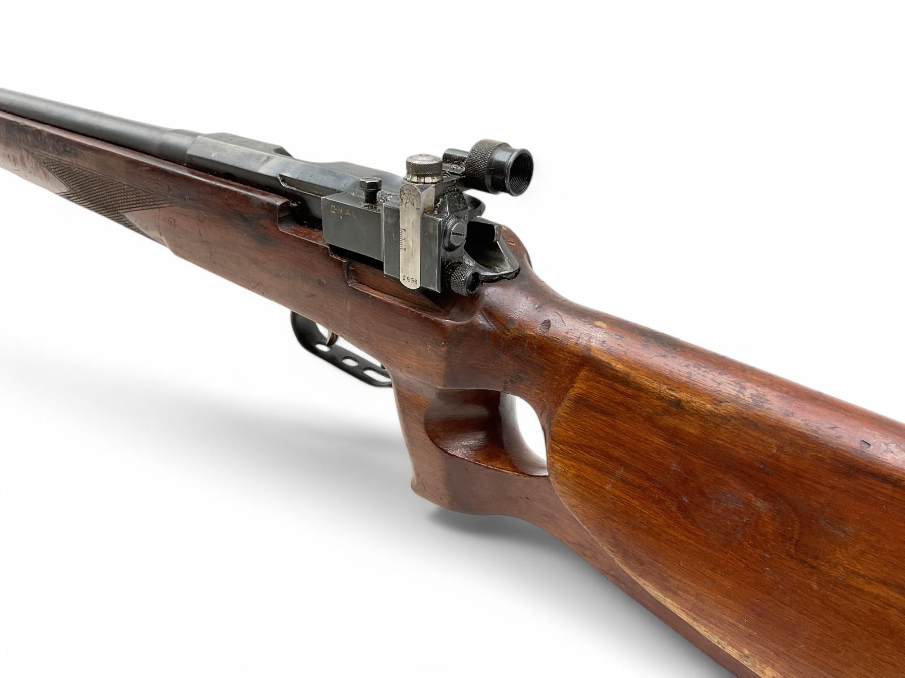 TOZ M12 Single Shot Target Rifle 22LR 29" Barrel Thumbhole Wood Stock. Target front sight; adjustable peep rear sight. Double triggers; neither trigger will set or release. Bolt stop not functional; may require parts. This is a non-restricted firearm.