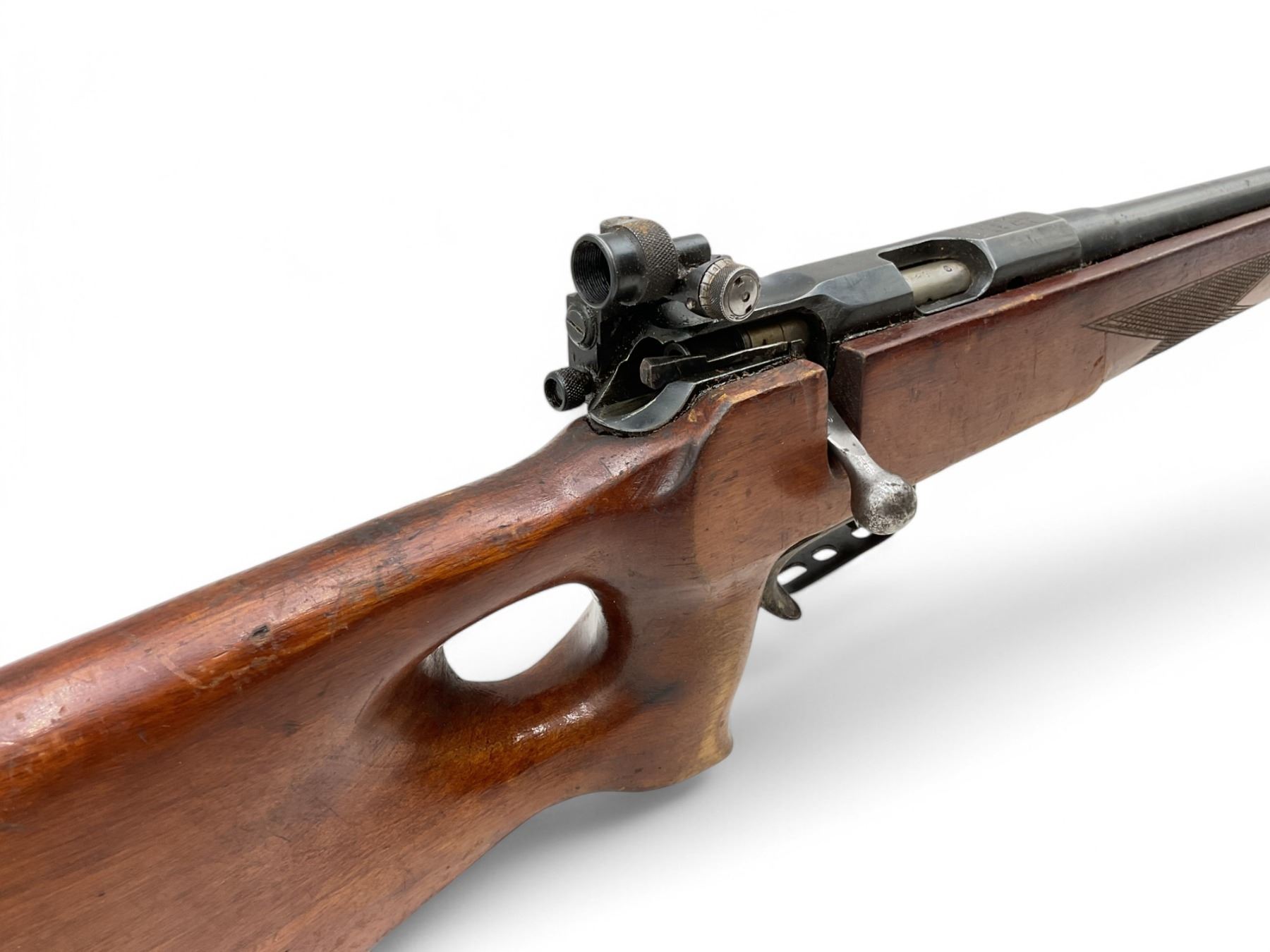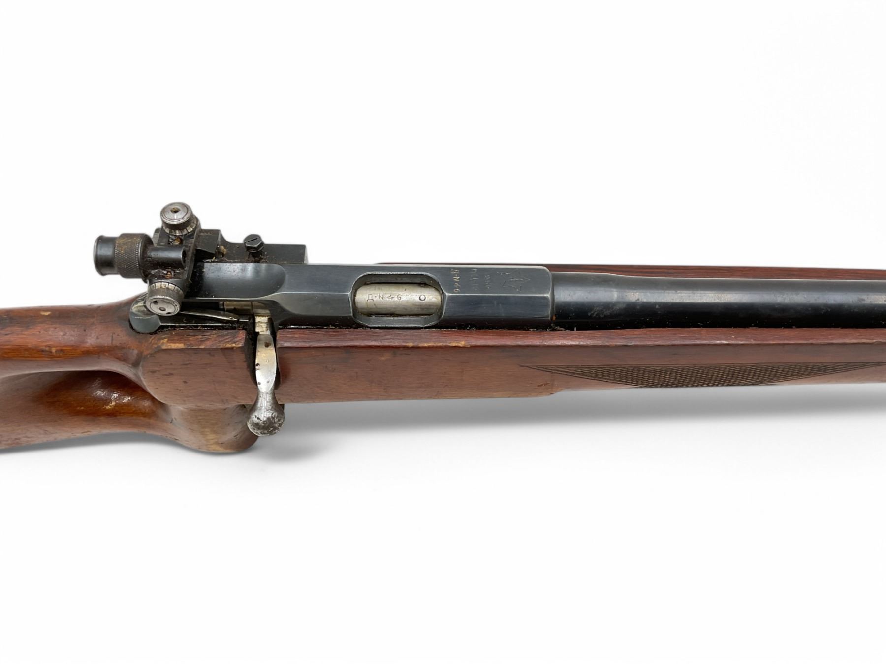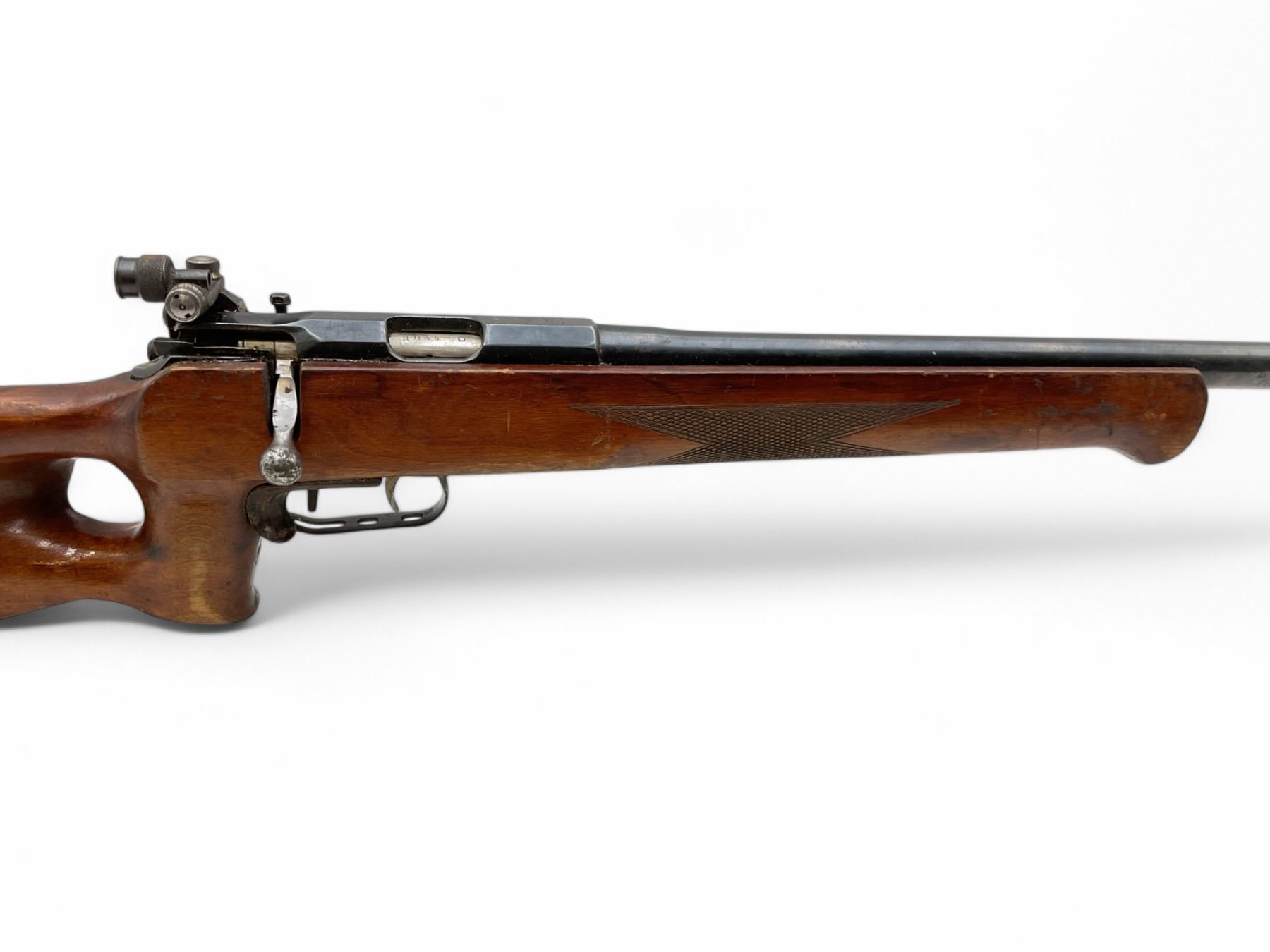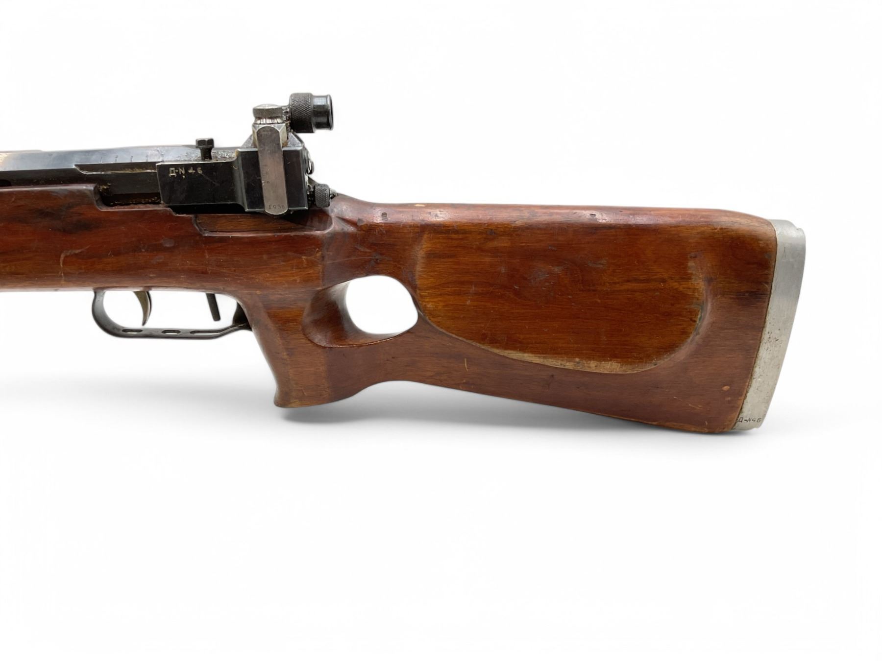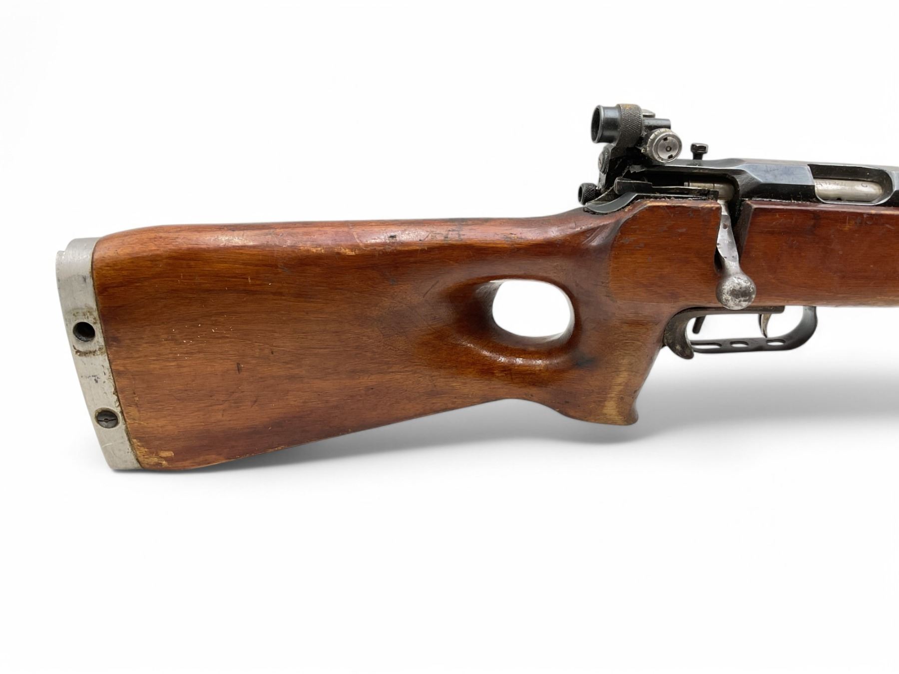 TOZ M12 Single Shot Target Rifle 22LR 29" Barrel Thumbhole Wood Stock. Target front sight; adjustable peep rear sight. Double triggers; neither trigger will set or release. Bolt stop not functional; may require parts. This is a non-restricted firearm.
