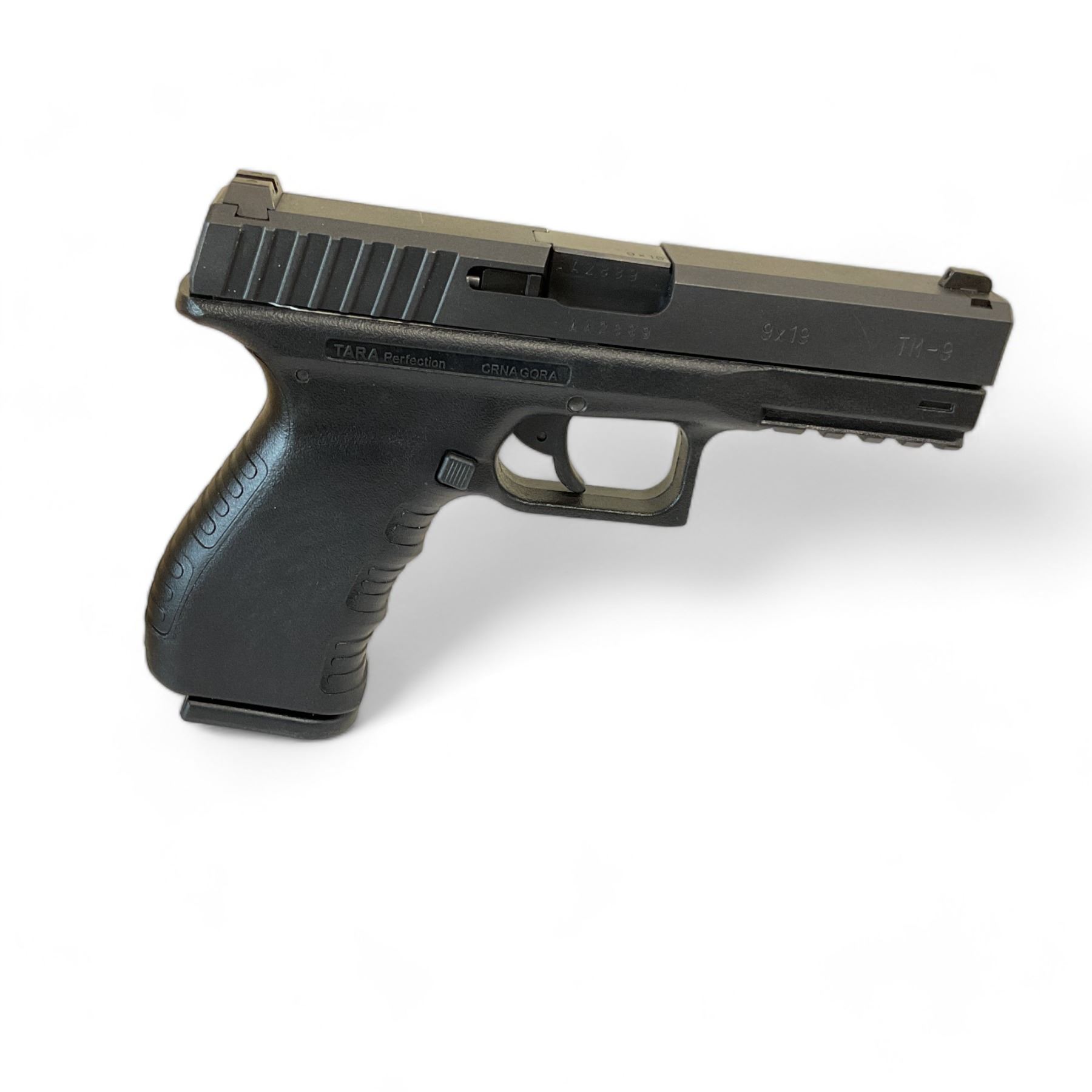 Tara TM9 Semi Auto Pistol 9MM 4.5" Barrel Restricted, New. Includes 2 detachable magazines and soft case.