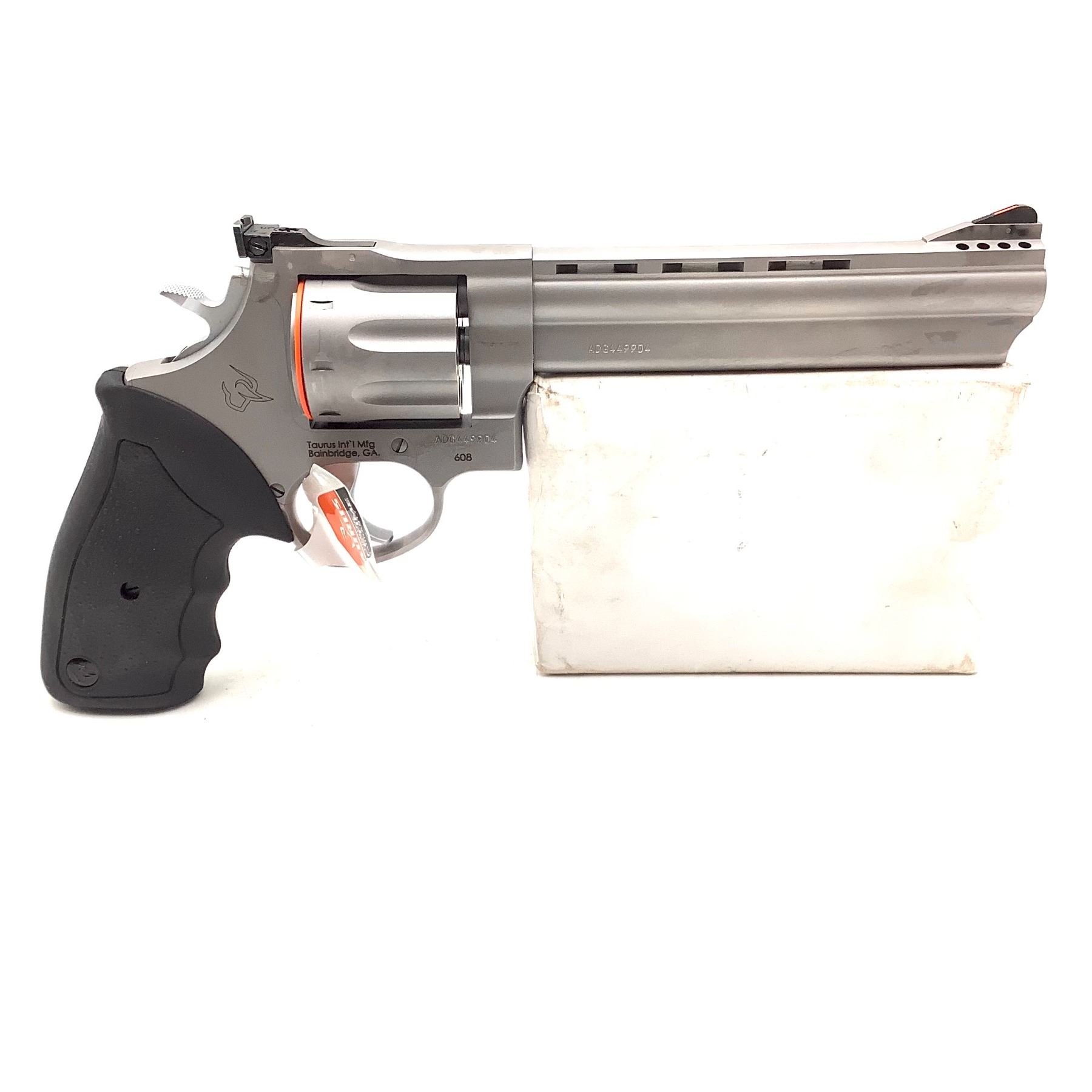 Taurus M608 357 Magnum Revolver 6.5" Barrel 8 Rounds Stainless, New. Includes black grips. This is a restricted firearm.