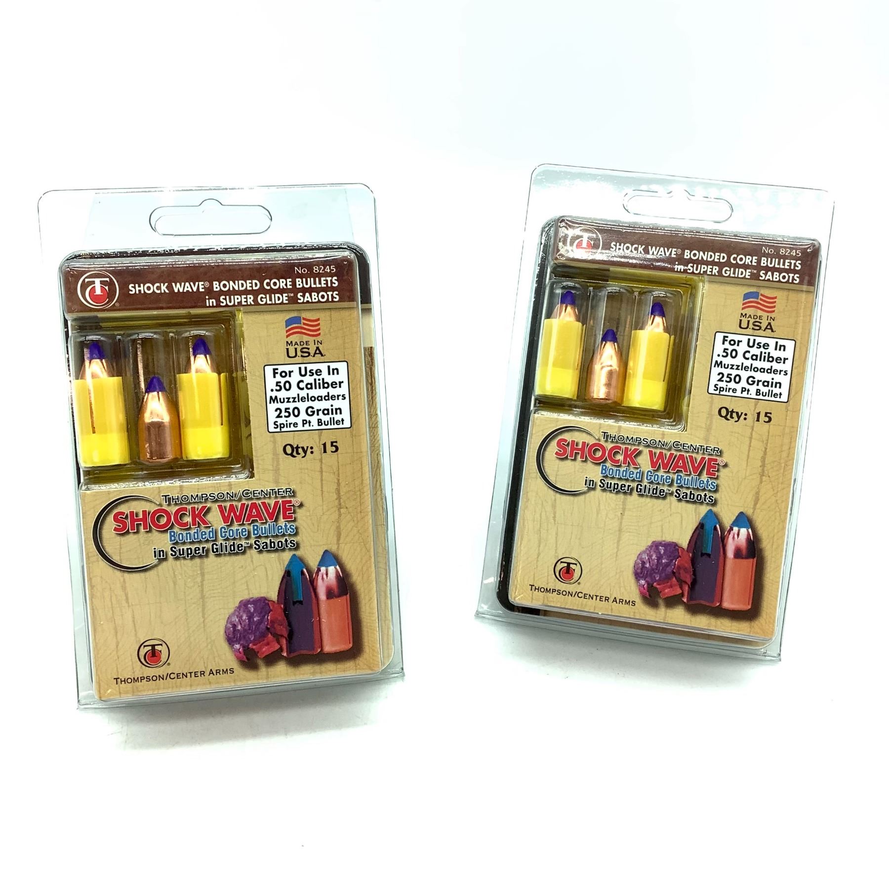 Thompson Center Shock Wave .50 Cal, 250 gr Spire PT Bonded Core Sabot, 15 Rounds, New x 2
