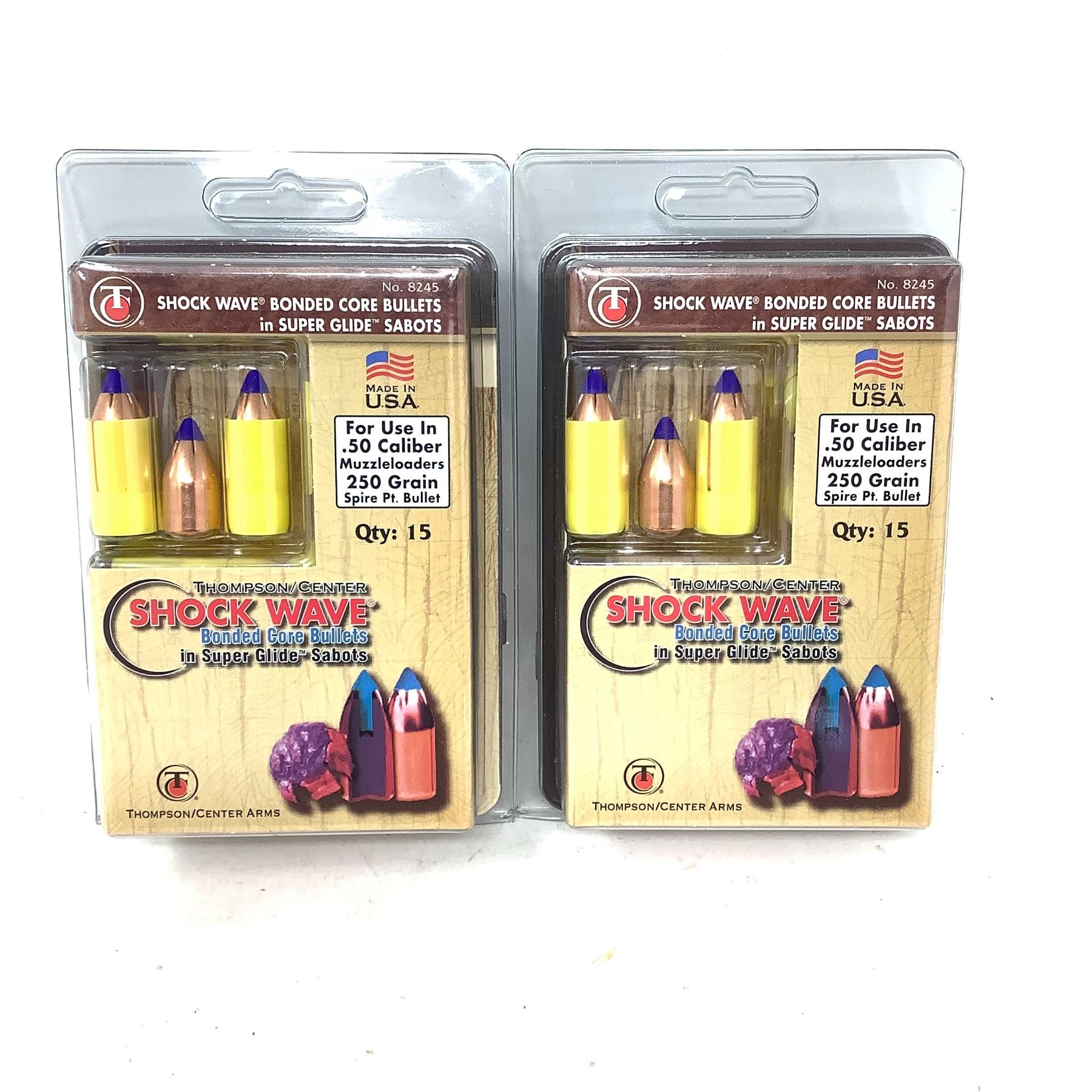 Thompson Center Shockwave 50 Cal 250 Grain Bonded Core Bullets in Super Glide Sabots, 30 QTY