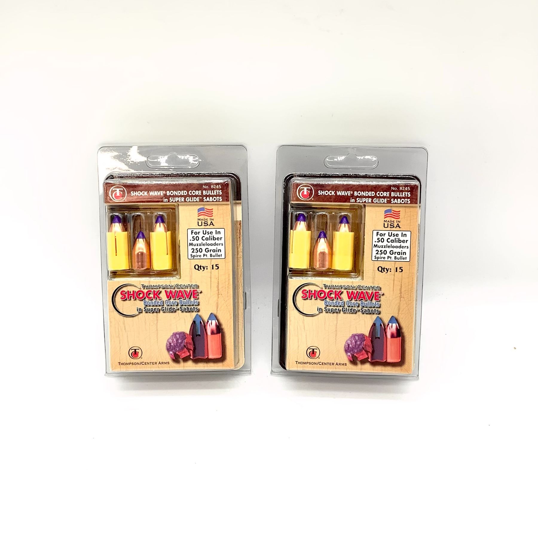Thompson Center Shockwave 50 Cal 250 Grain Bonded Core Bullets in Super Glide Sabots, 30 QTY