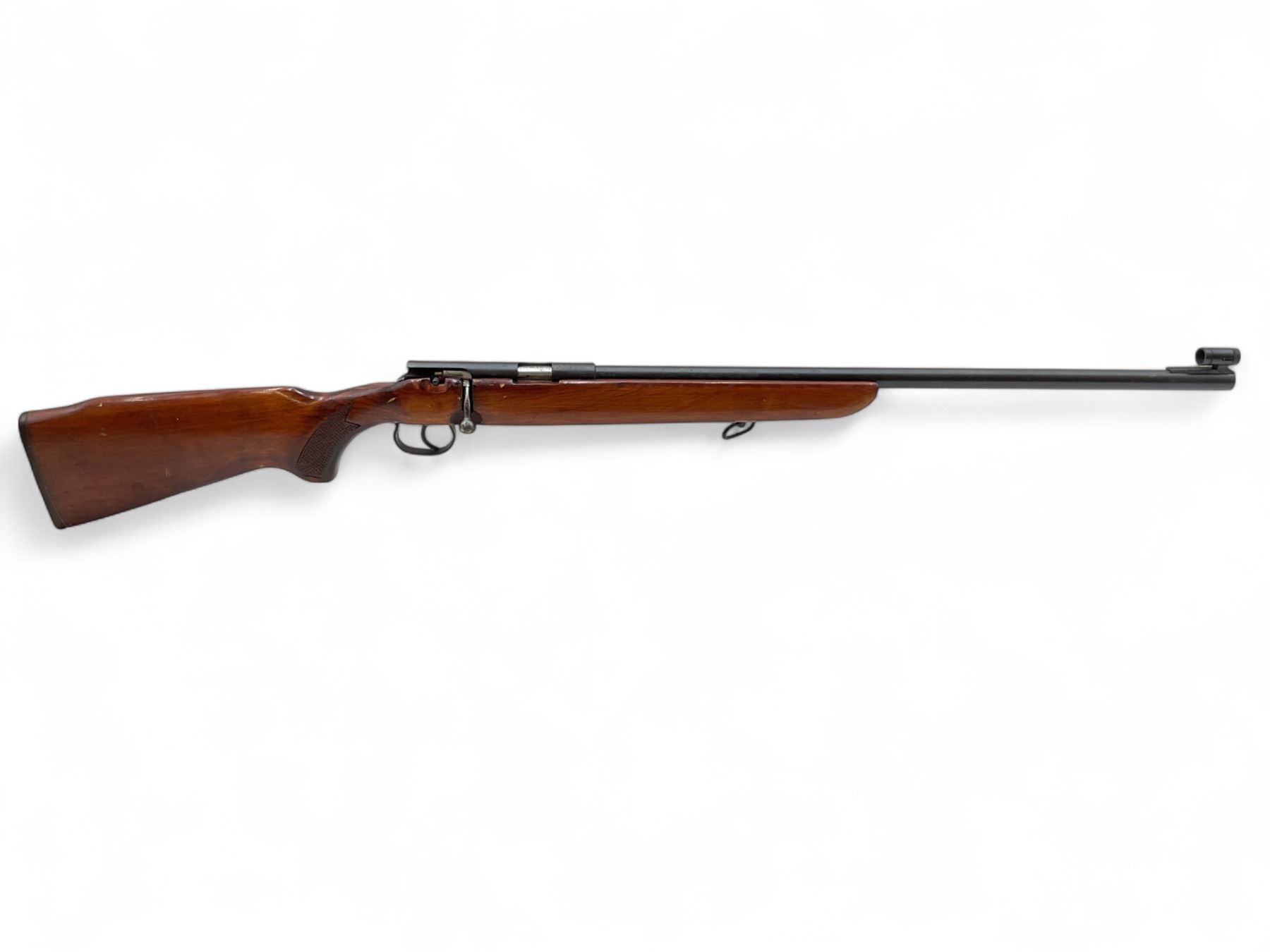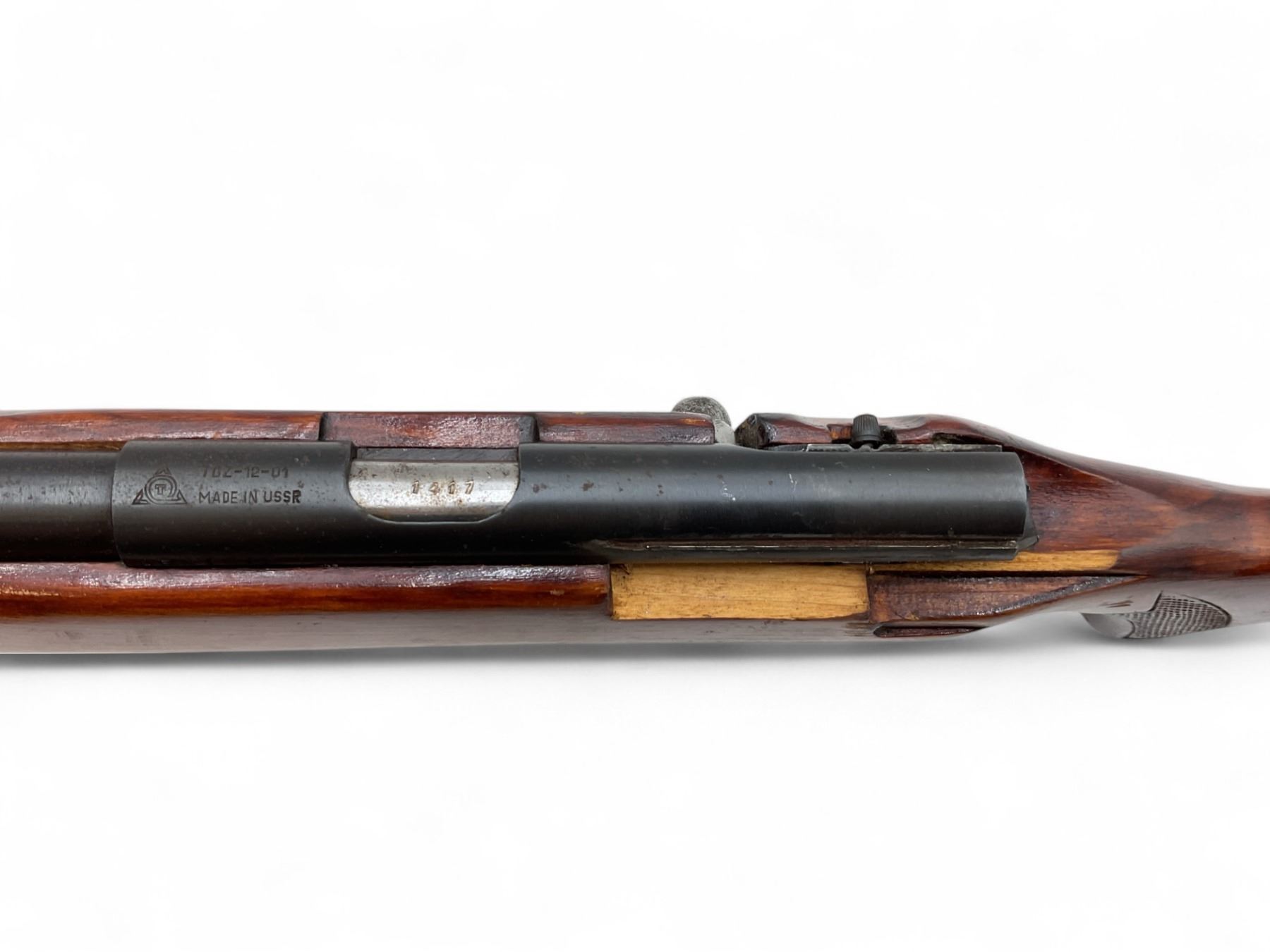 Toz 12-01 Single Shot Bolt Action Rifle .22LR 25" Barrel Wood Stock. Target front sight; missing rear sight. Wood stock broken and missing piece on left side near rear of receiver. This is a non-restricted firearm.