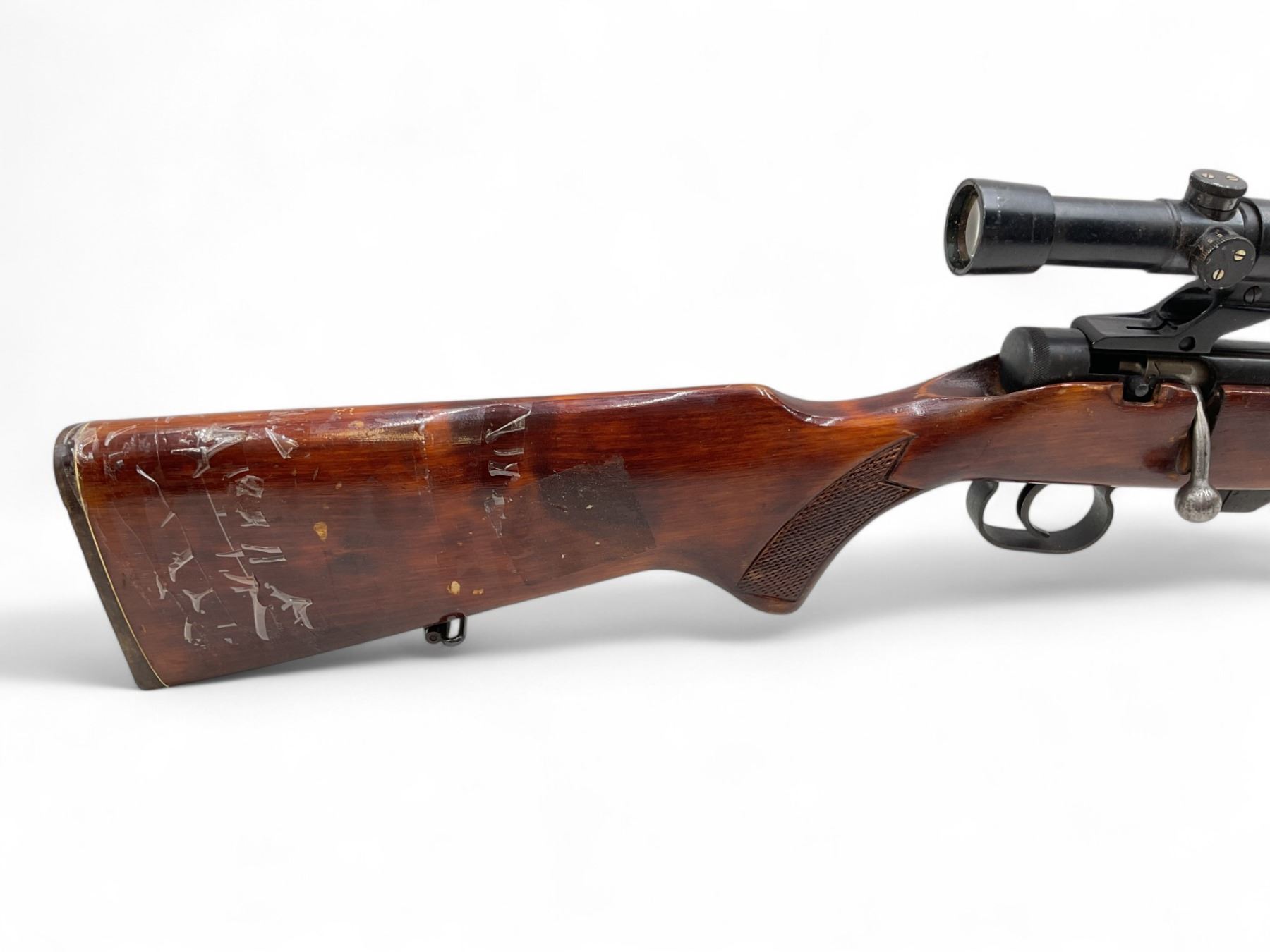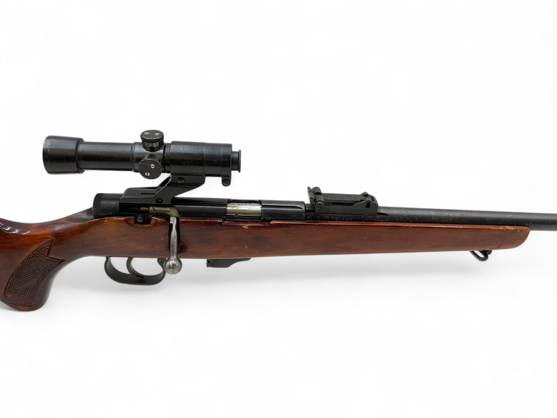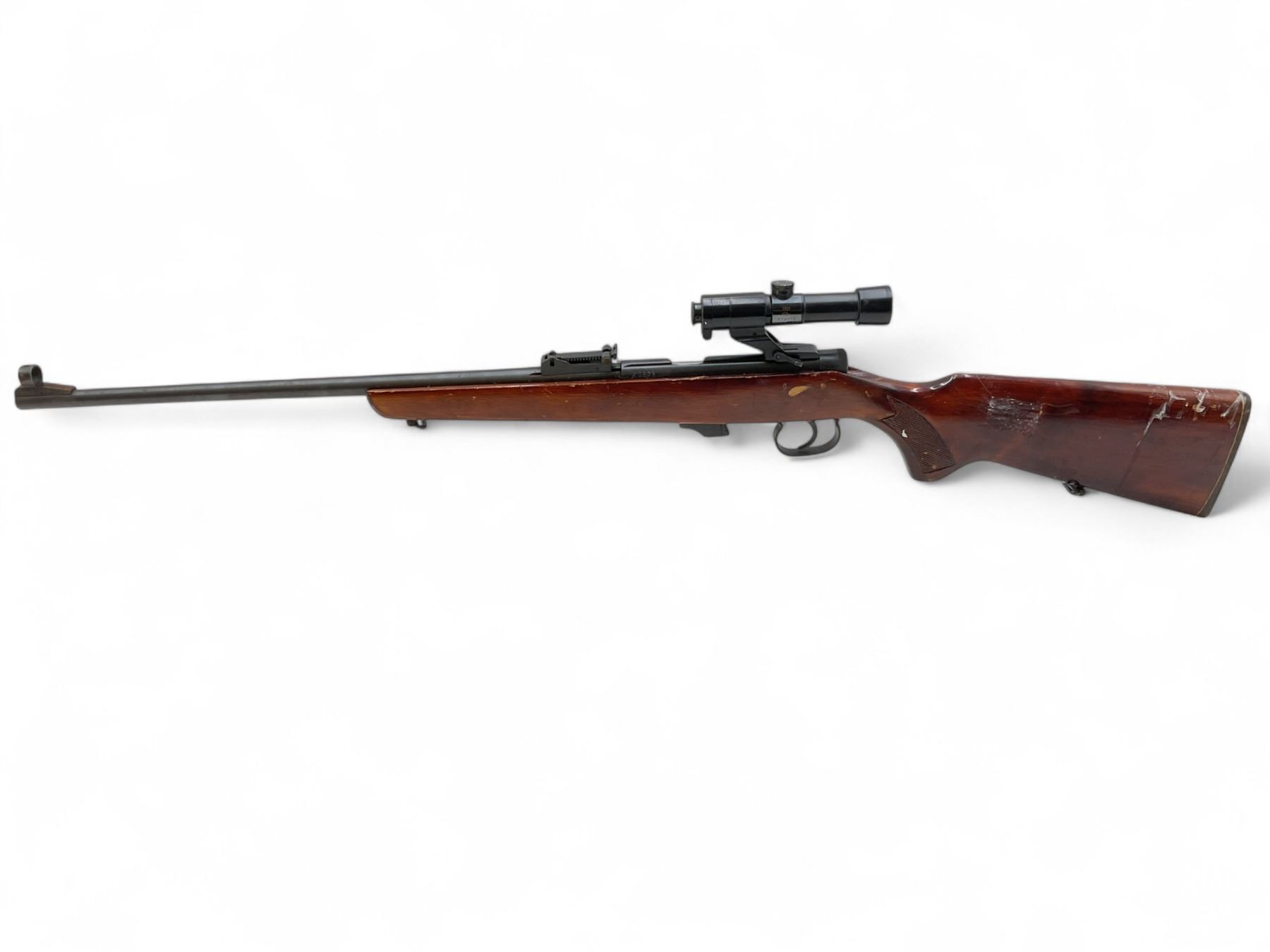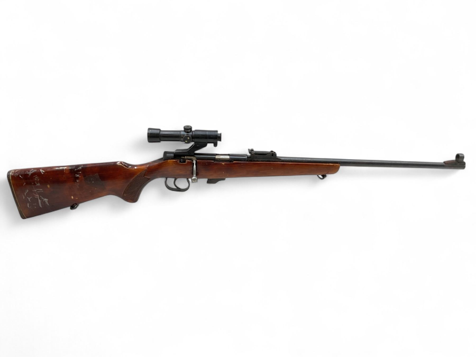 Toz 18-01 Bolt Action Rifle 22LR 21" Barrel Wood Stock With Russian Scope. No magazine included. Ramp front sight, adjustable rear sight. This is a non-restricted firearm.