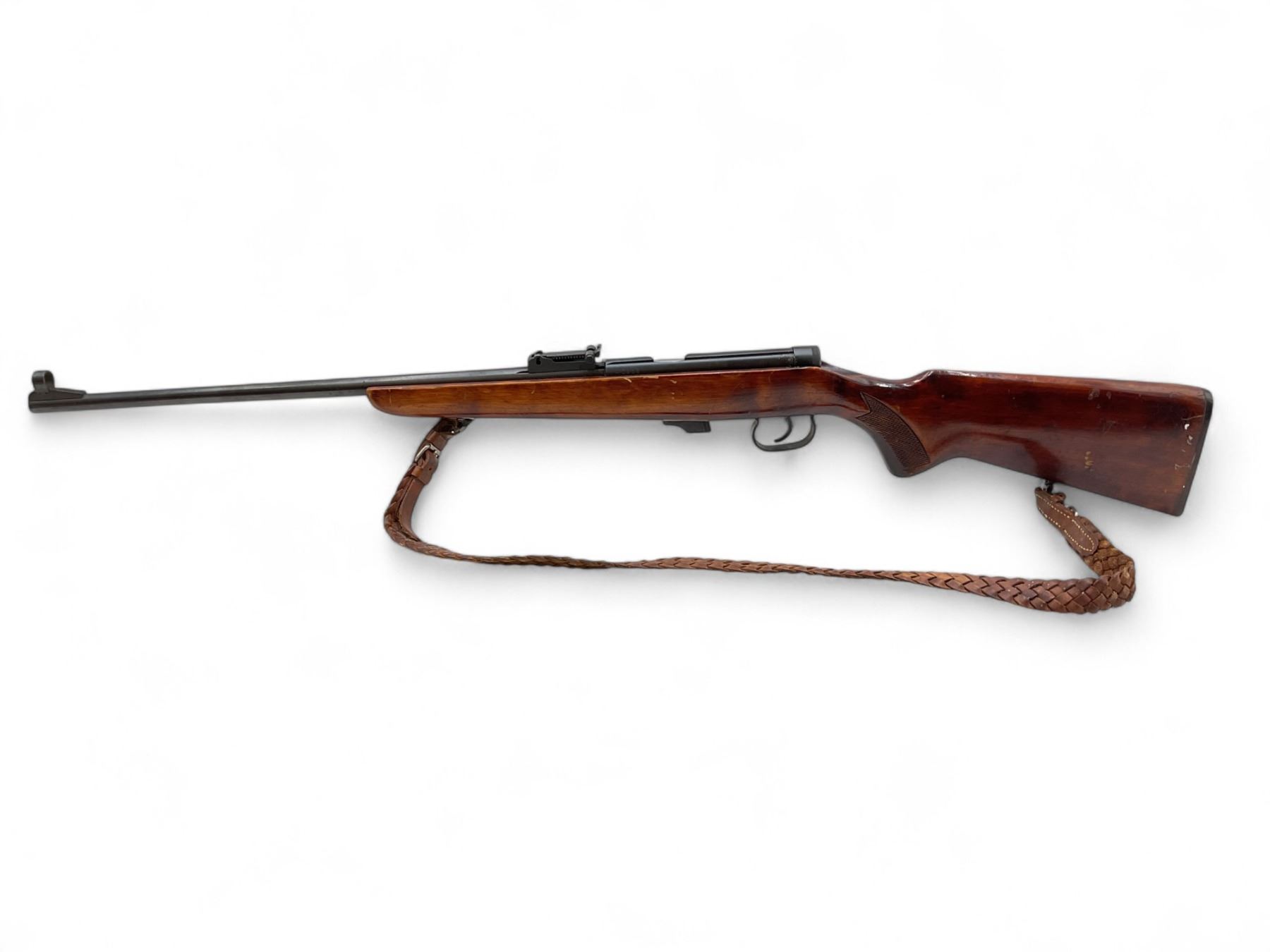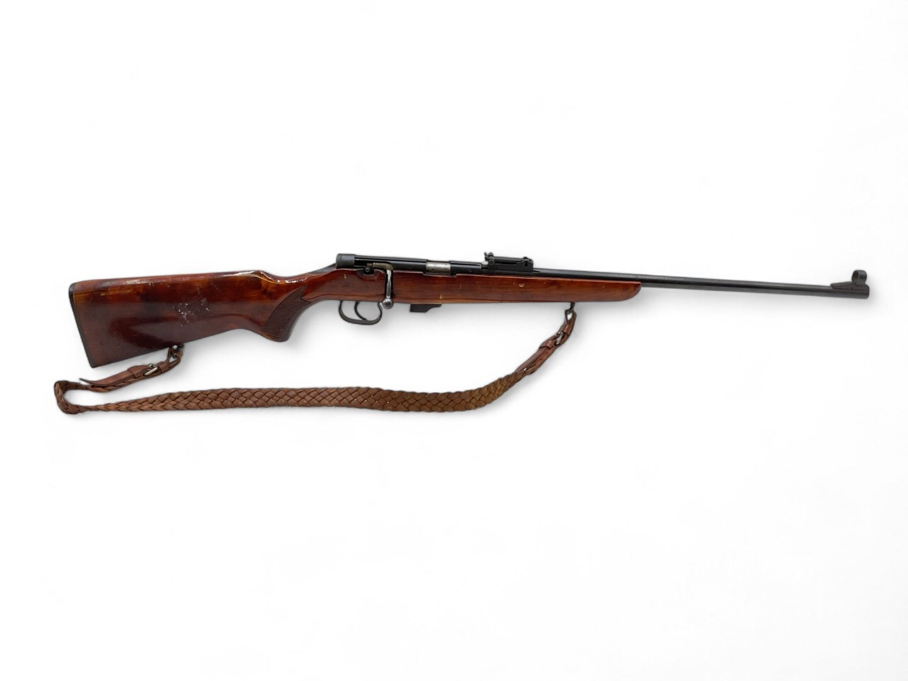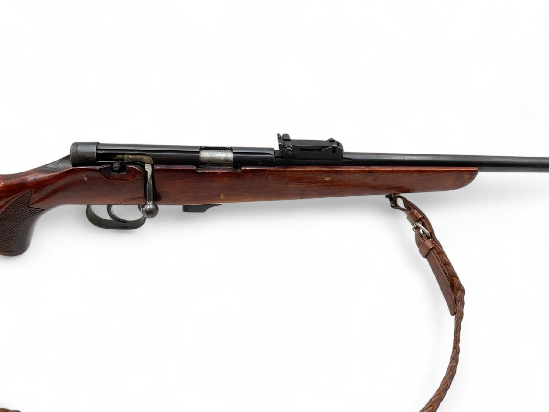 Toz 18-01 Bolt Action Rifle 22LR 21" Barrel Wood Stock. No magazine included. Hooded front sight, adjustable rear sight. Wood stock cracked between bolt and trigger guard.; comes with a sling. This is a non-restricted firearm.
