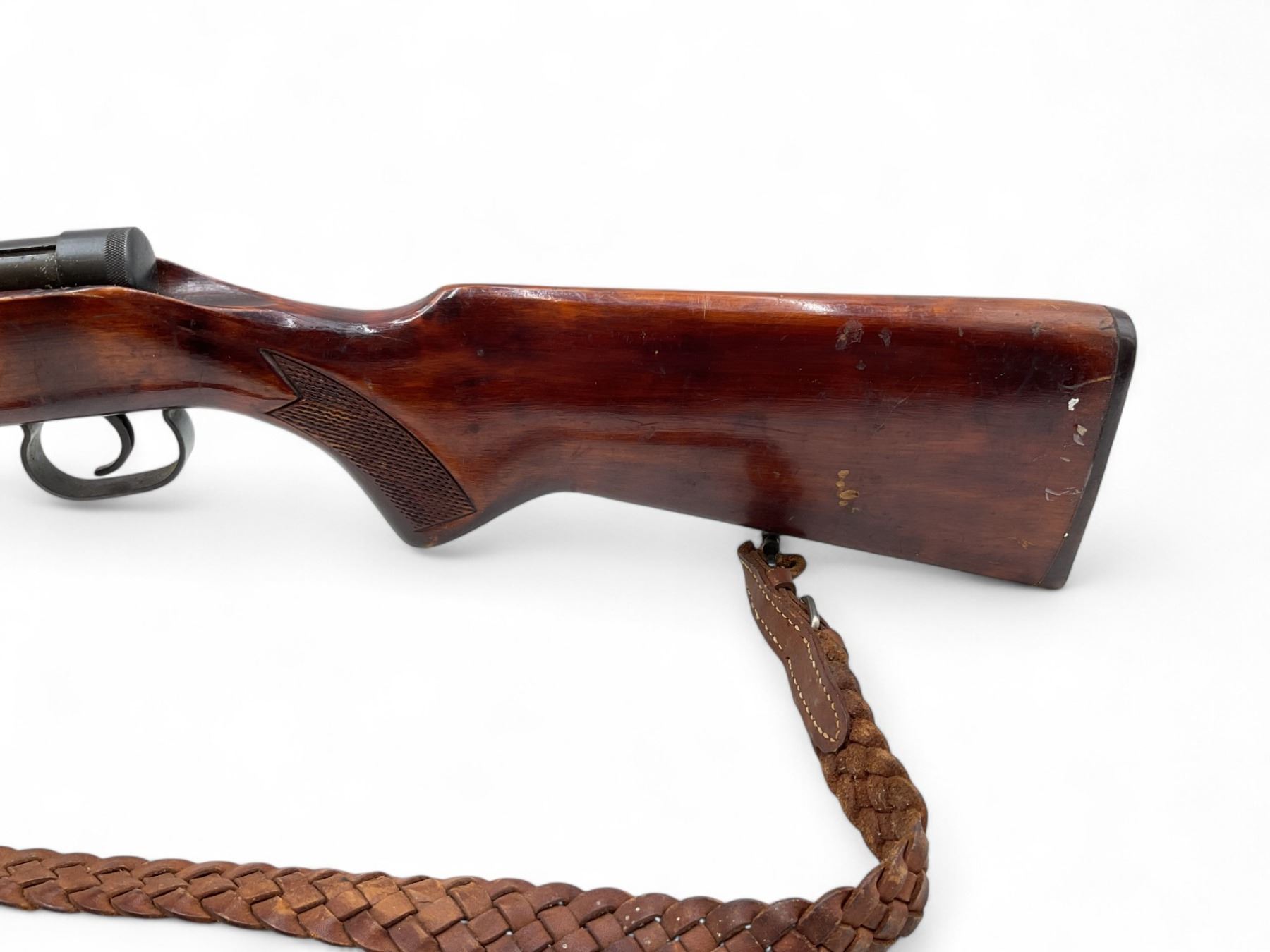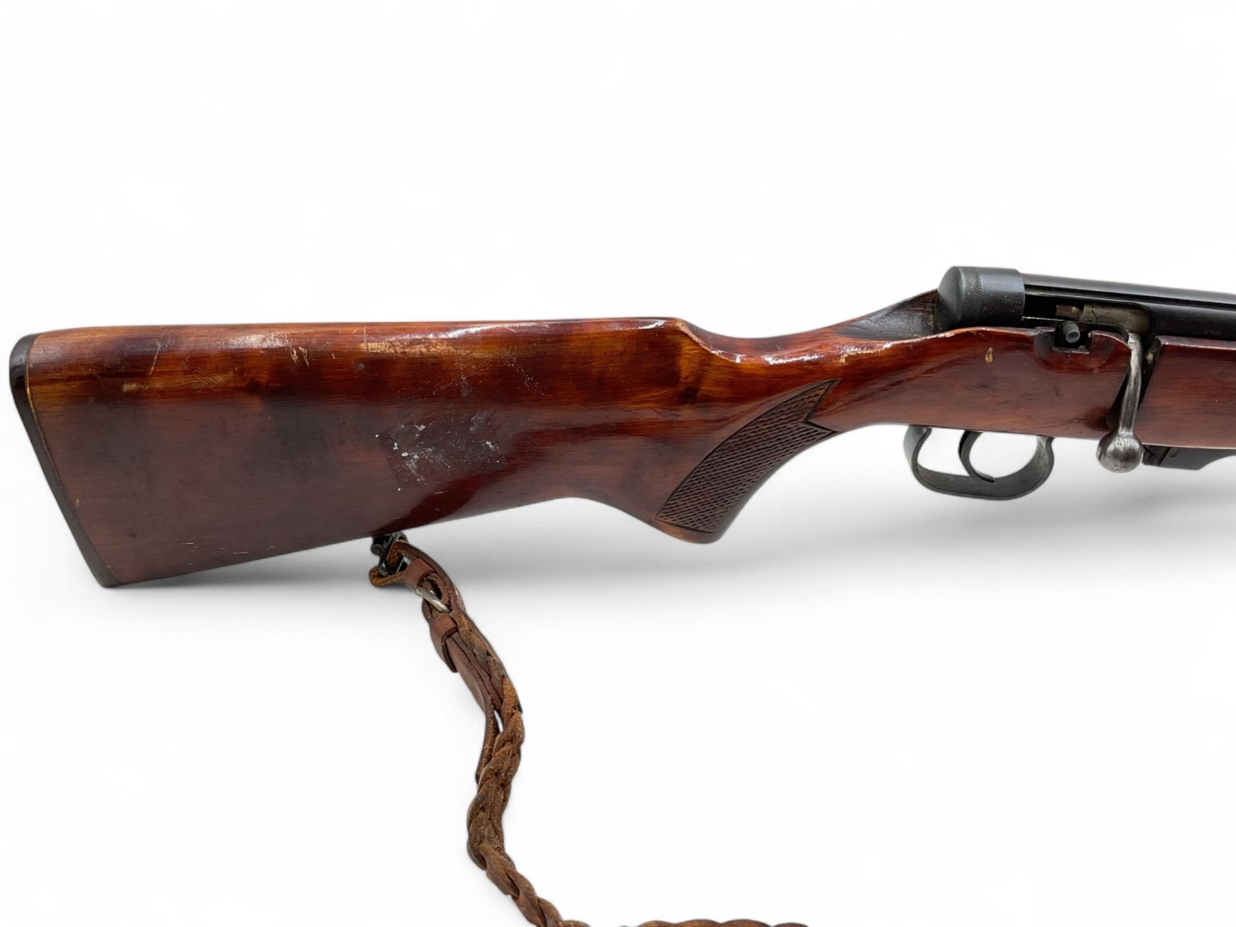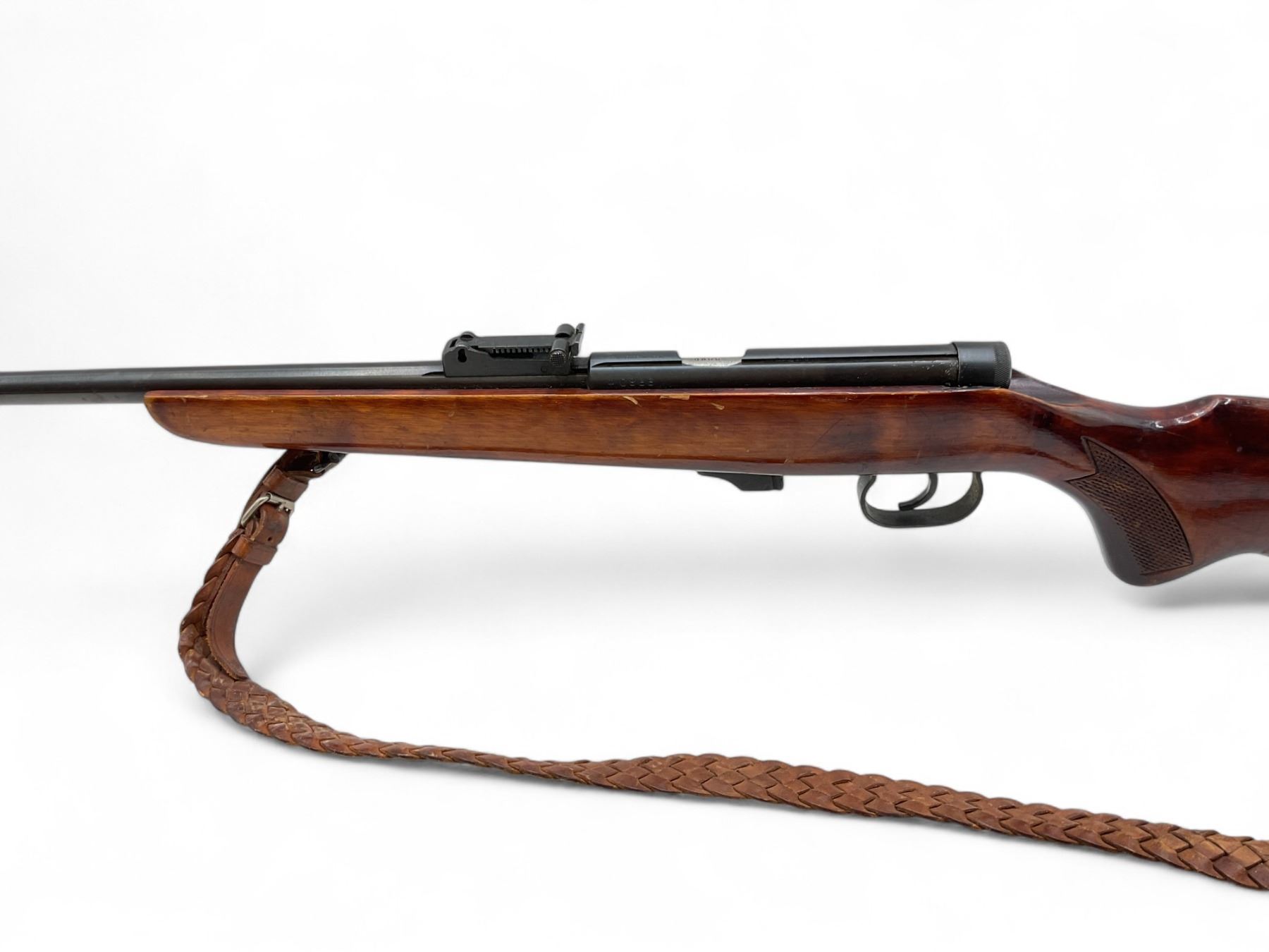 Toz 18-01 Bolt Action Rifle 22LR 21" Barrel Wood Stock. No magazine included. Hooded front sight, adjustable rear sight. Wood stock cracked between bolt and trigger guard.; comes with a sling. This is a non-restricted firearm.