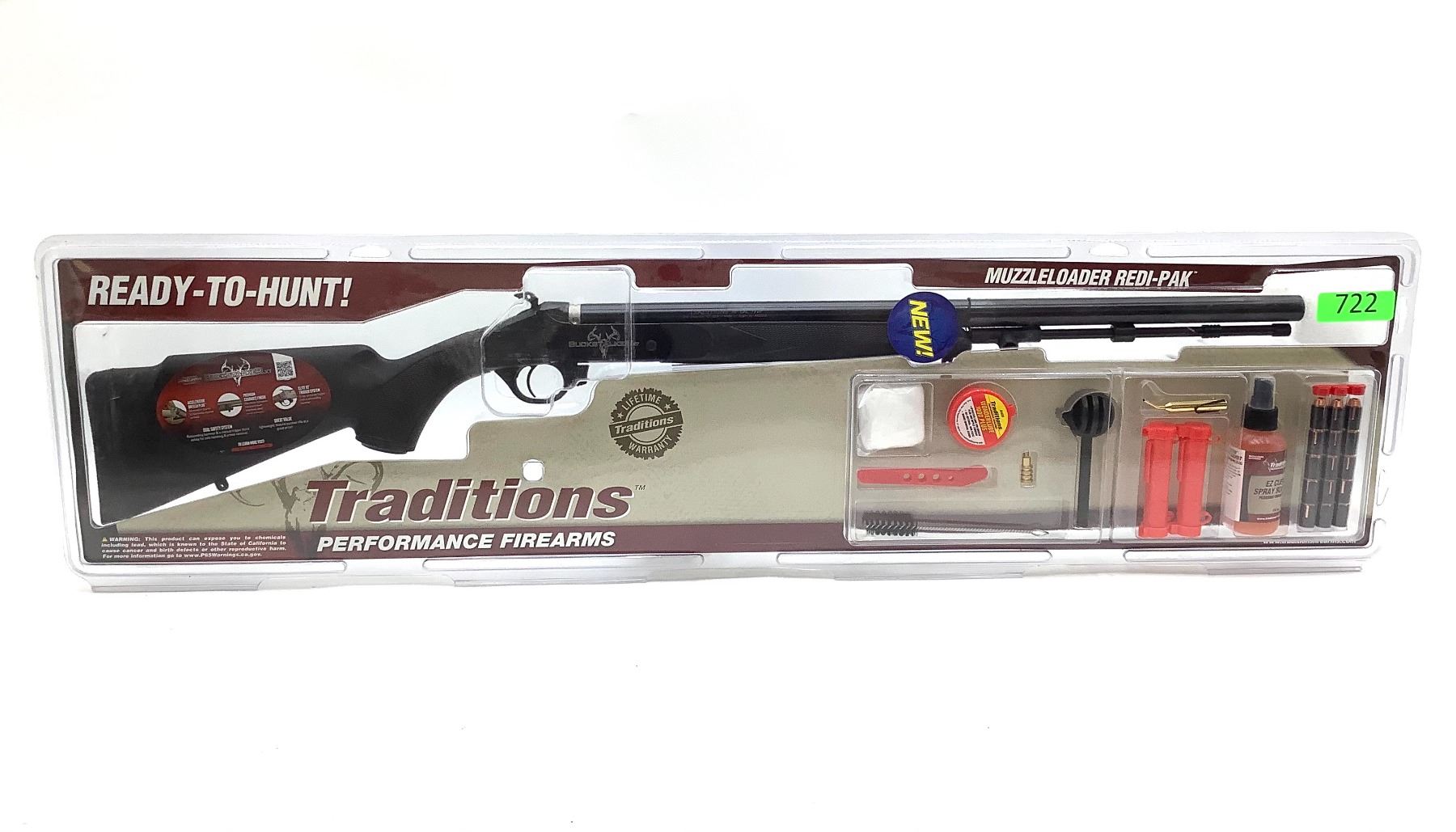 Traditions Redi-Pak Buckstalker XT .50 Cal Muzzleloader Rifle 24" Barrel Synthetic/ Blued, New. Breech plug can be removed without tools. Includes patches, projectiles, grease and solvent. This is a non-restricted firearm.