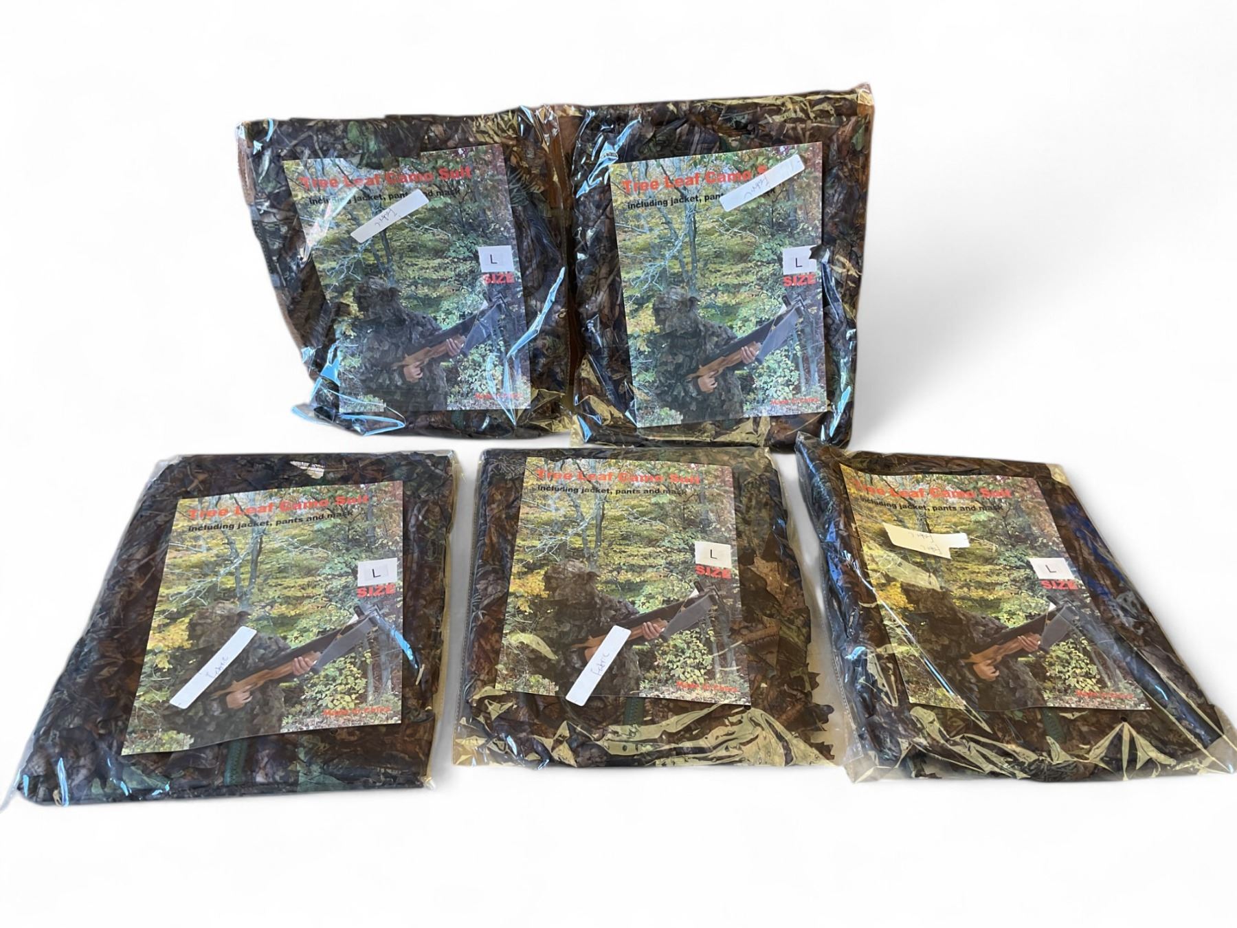 Tree Leaf Camo Suit Size Large X 5, Includes Jacket, Pants and Mask