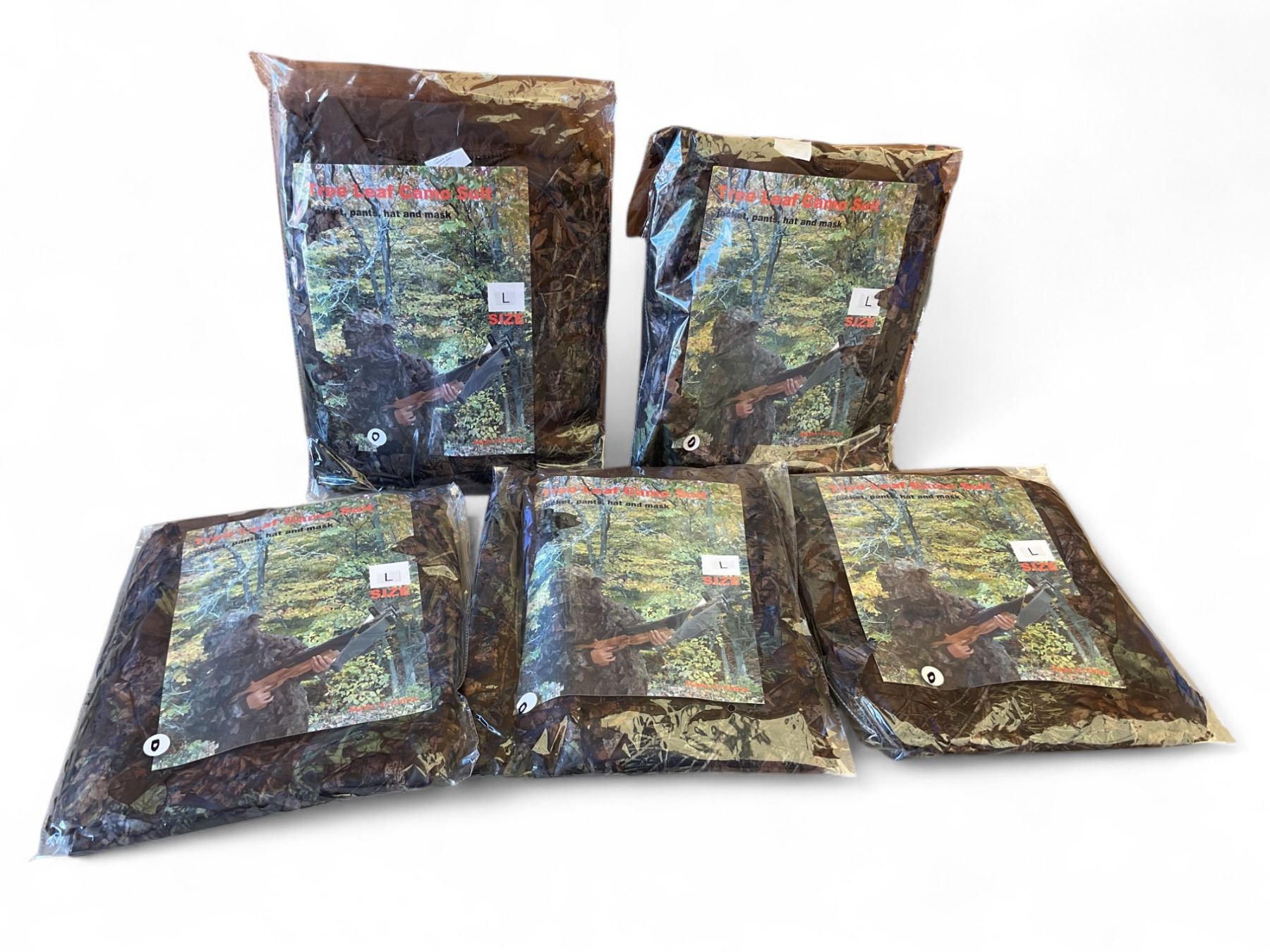 Tree Leaf Camo Suit, Size Large X 5 Qty Includes Jacket, Pants and Mask