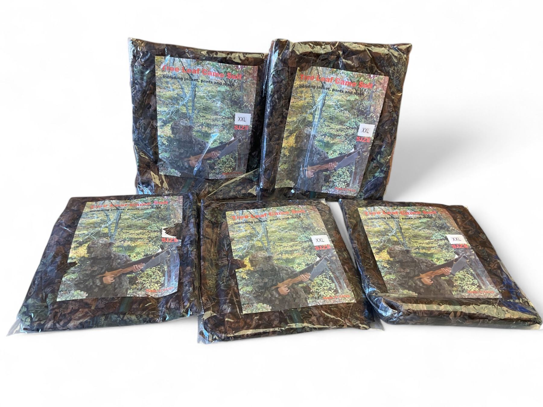 Tree Leaf Camo Suit, Size Large XXL 5 Qty Includes Jacket, Pants and Mask