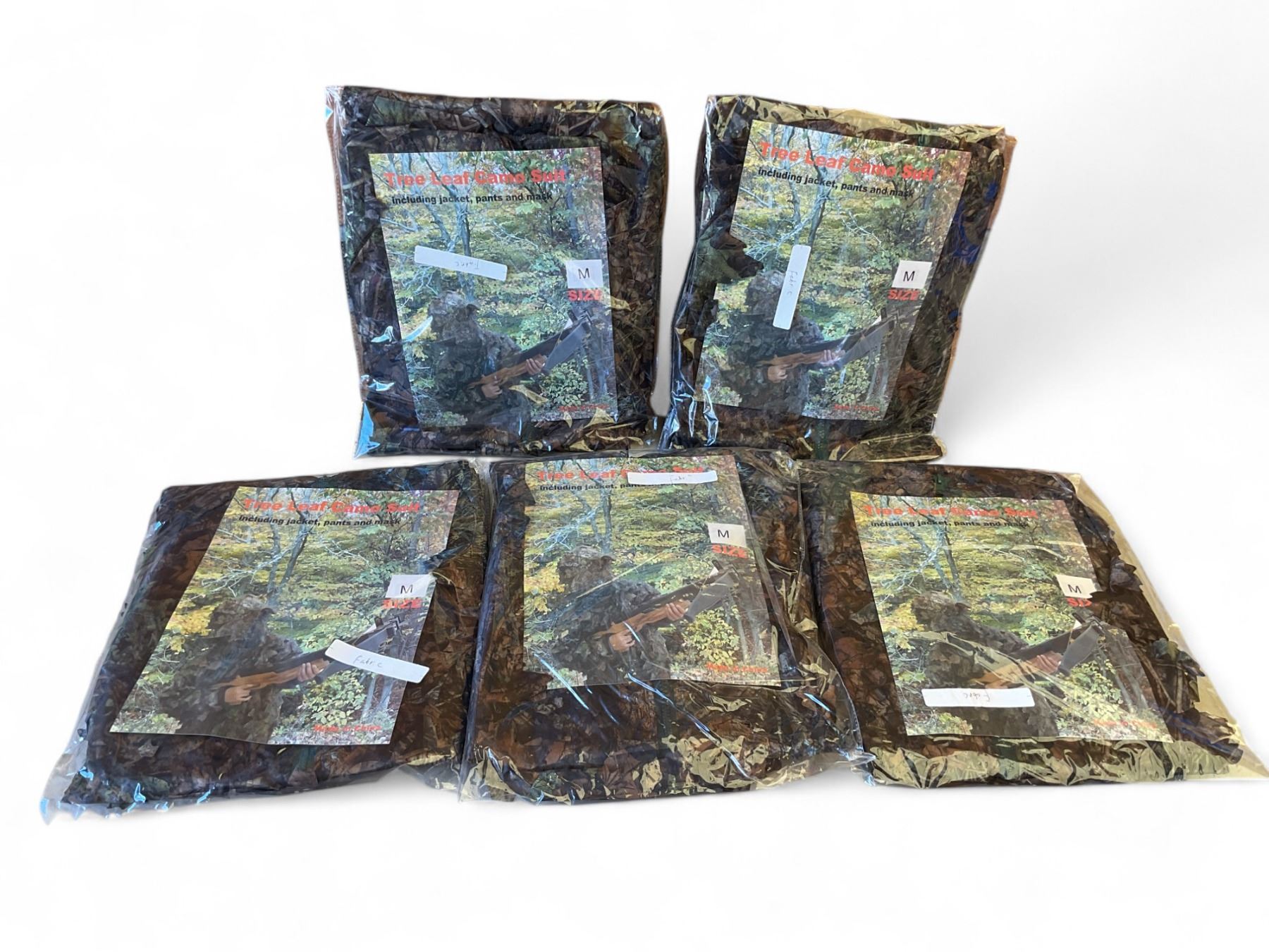 Tree Leaf Camo Suit Size Medium X 5, Includes Jacket, Pants and Mask