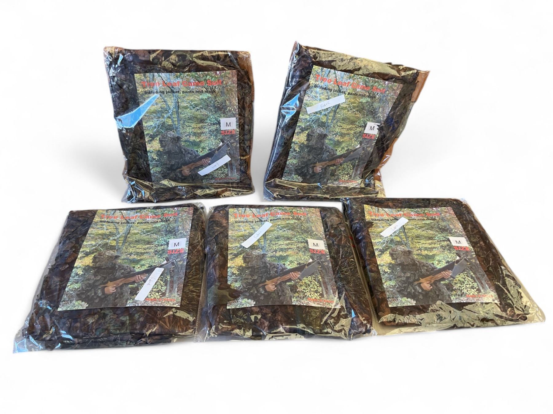 Tree Leaf Camo Suit, Size Medium X 5 Qty Includes Jacket, Pants and Mask