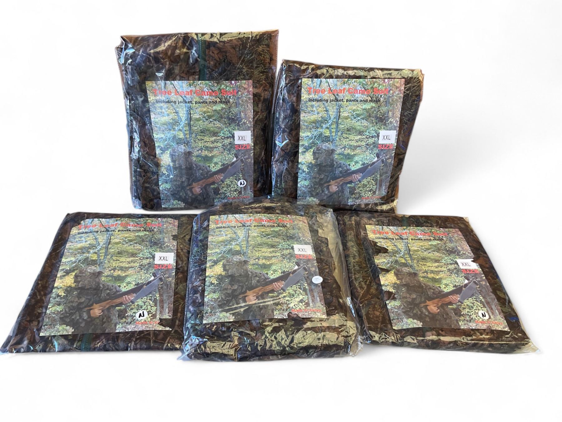 Tree Leaf Camo Suit Size XXLarge X 5, Includes Jacket, Pants and Mask