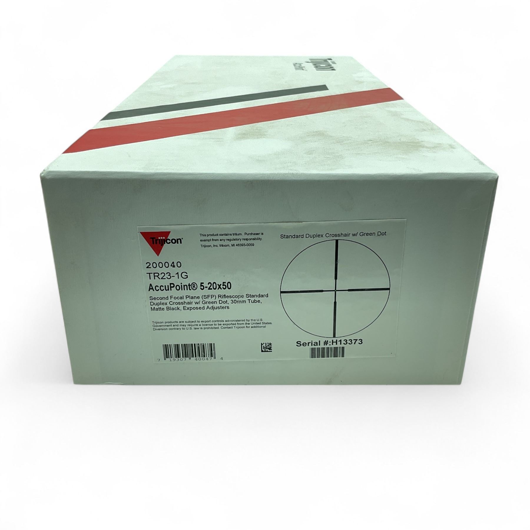 Trijicon TR23-1G Accupoint 5 - 20X 50 mm SFP Rifle Scope with STD Duplex Crosshair/ Green Dot Reticle