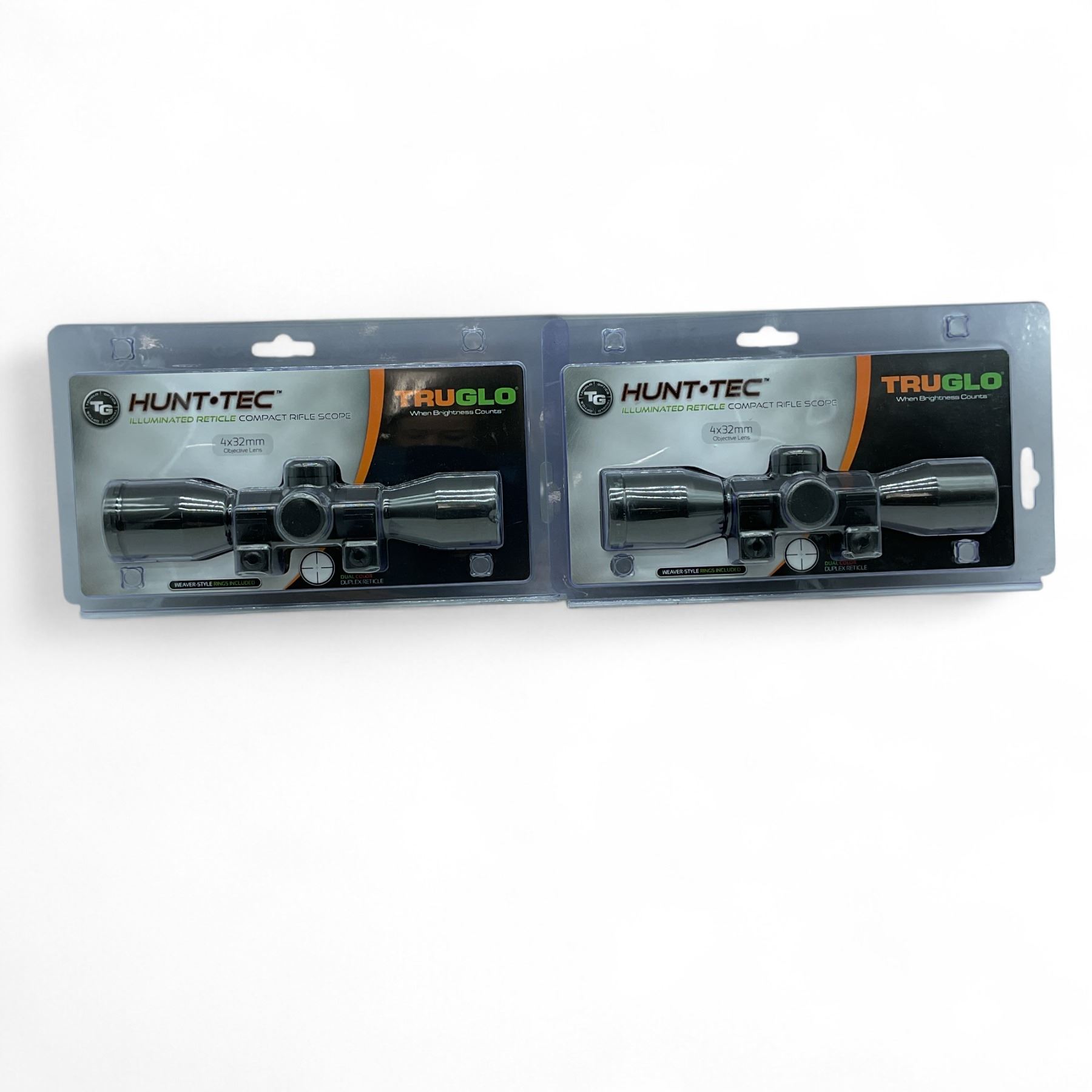 TruGlo Hunt-Tec Compact 4 X 32 mm Illuminated Rifle Scopes with Duplex Reticle X 2