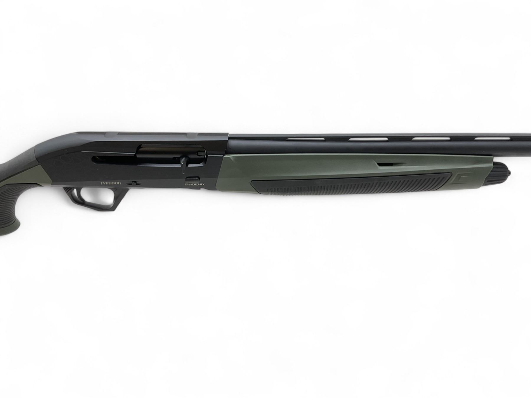 Typhoon PH03NIX Semi Auto Shotgun 12Ga 3" Chamber 28" Vent Rib Barrel Green And Black, New. Fiber optic sight; comes with a removable choke. This is a non-restricted firearm.