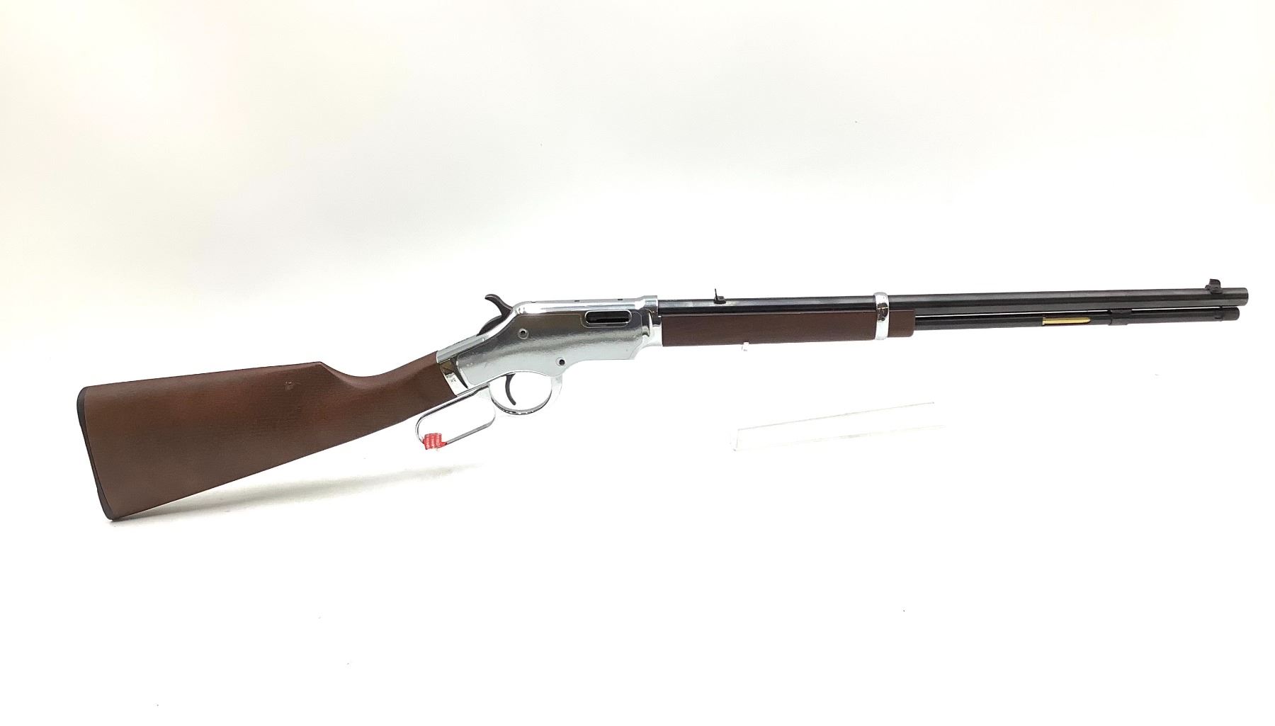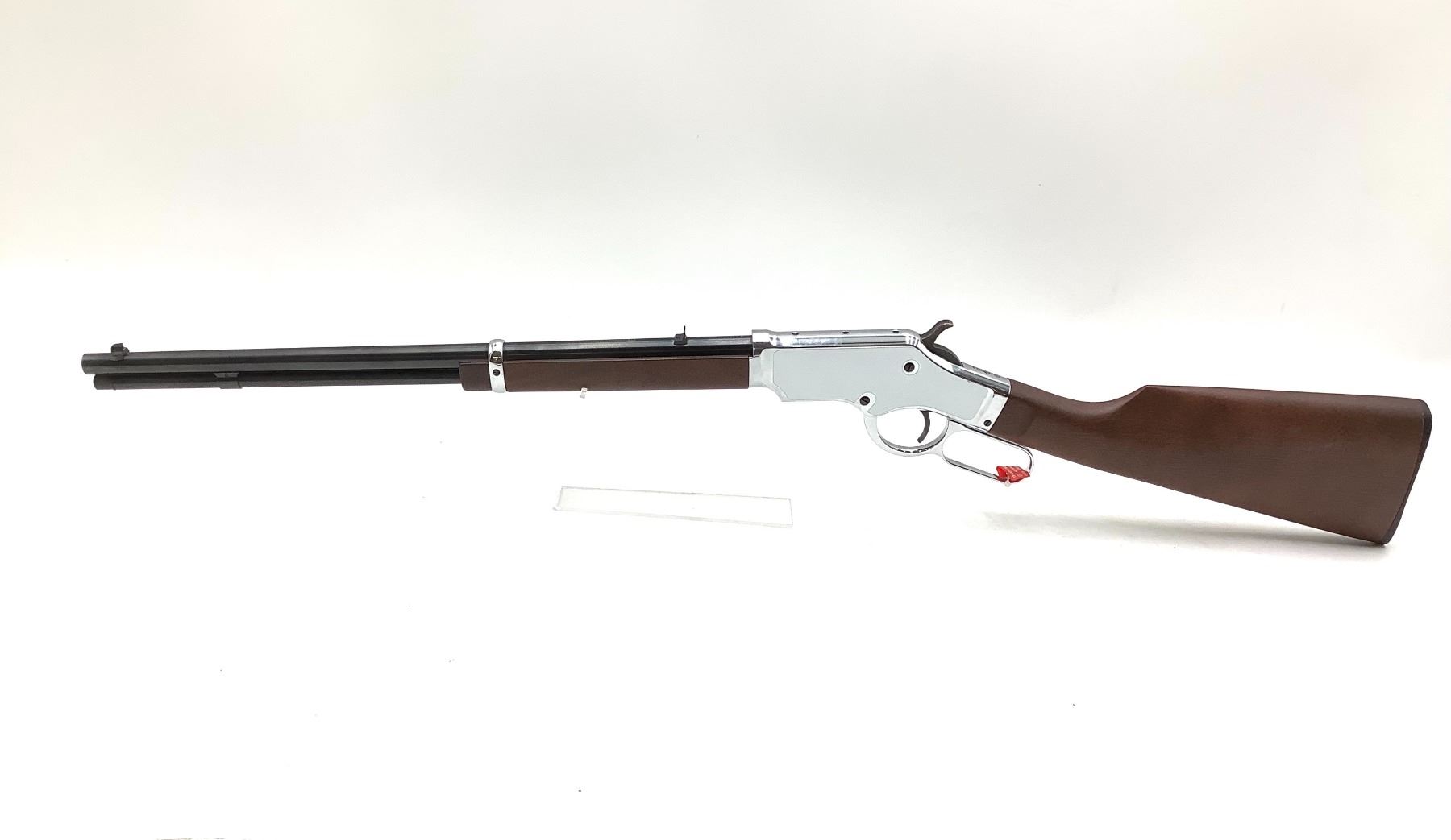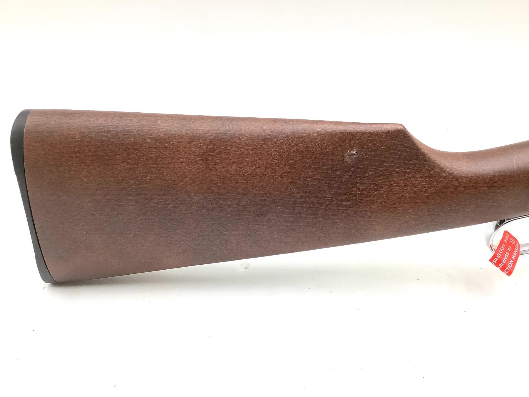 Uberti Silverboy 22LR Lever Action Carbine 19" Barrel Wood Stock. Rear stock has indentation and mark in wood. Receiver drilled and tapped. Tube fed magazine, open sights. This is a non-restricted firearm. This was a demo/display model we had on the shelf to show customers.