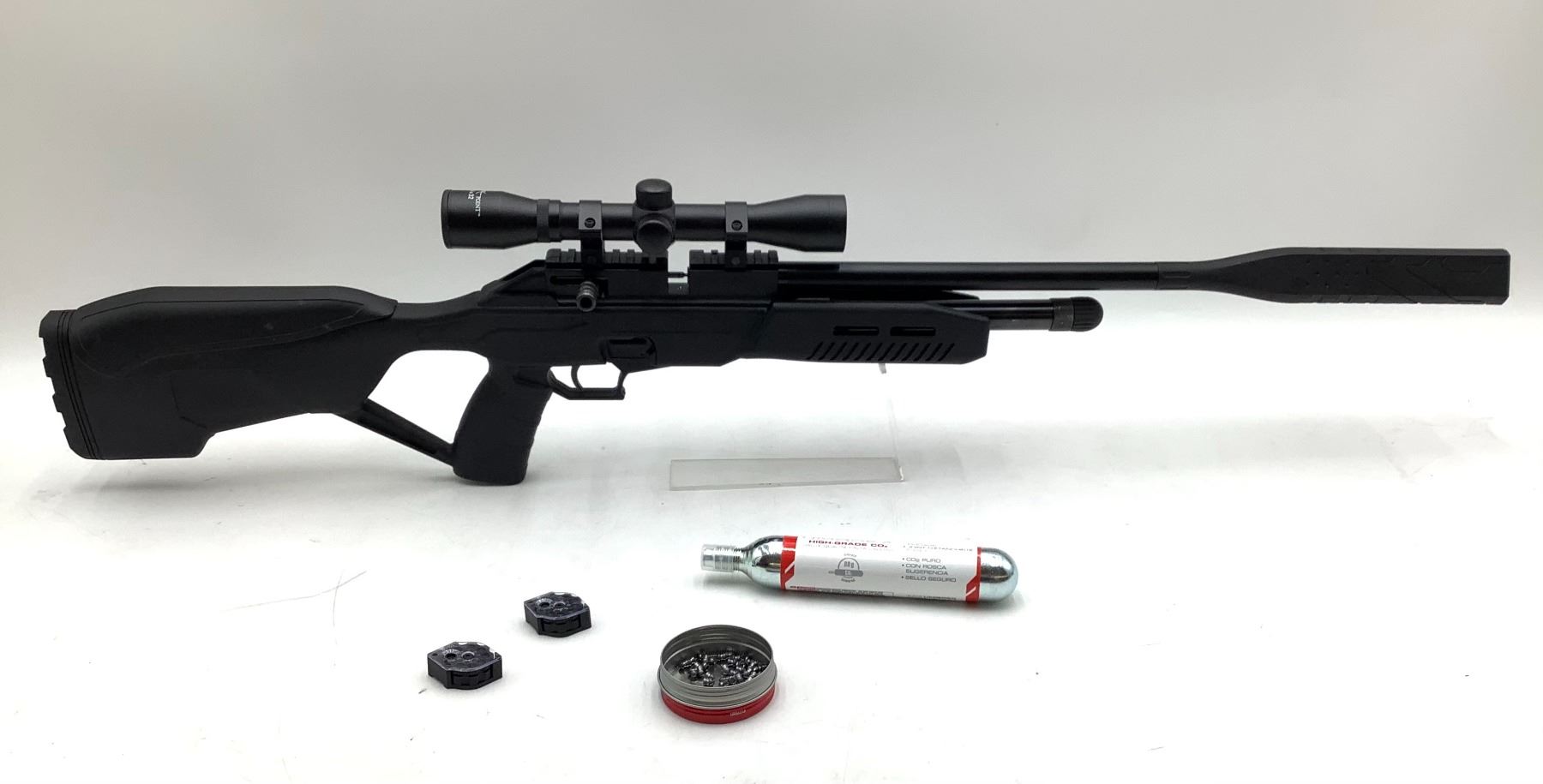 Umarex Fusion 2 CO2 .177 Cal Air Rifle Black With 4X32 Scope. Includes two magazines, 88gram C)2 cartridge and approximately 40 pellets. You must be over 18 years of age to purchase this item.