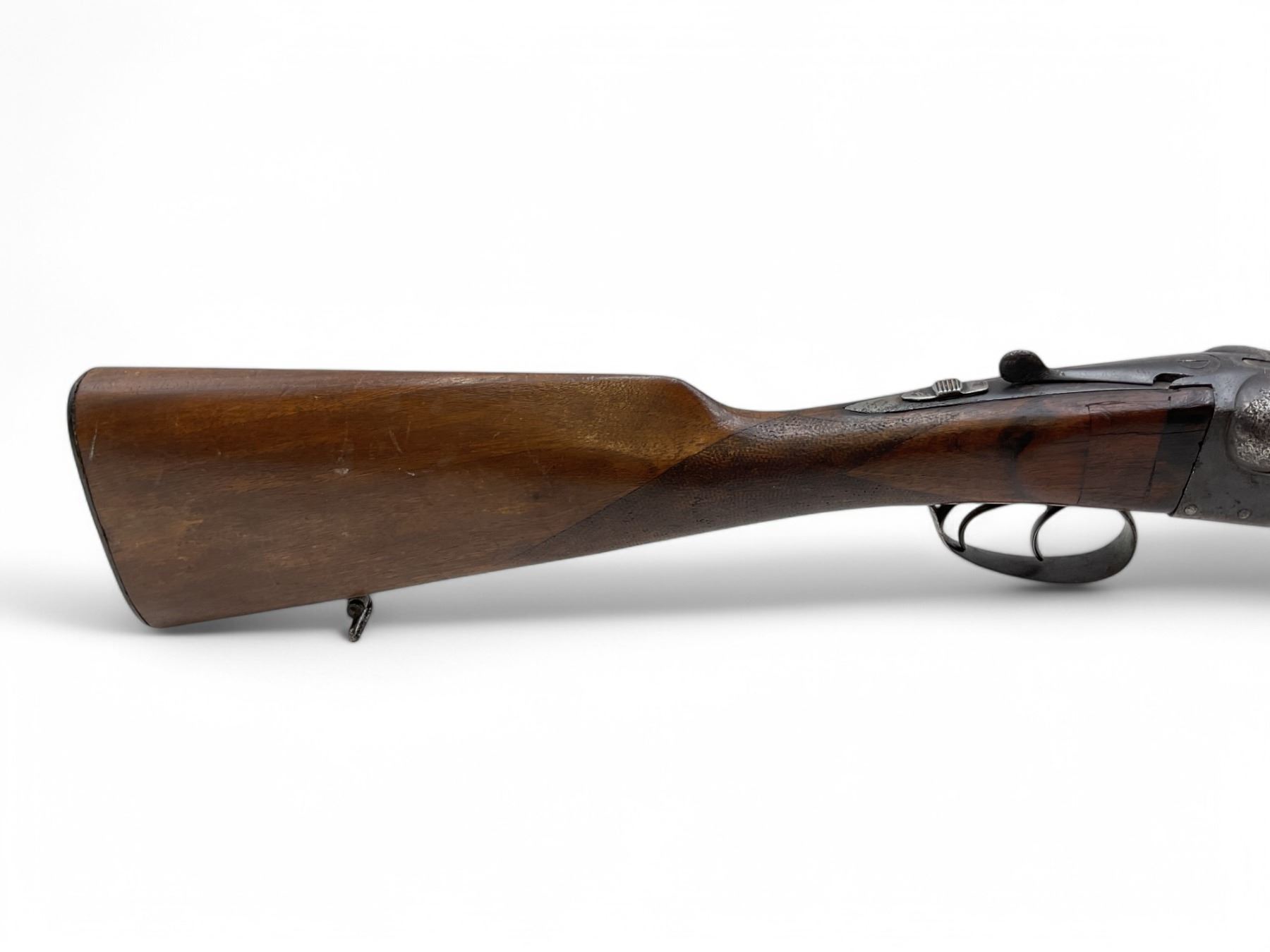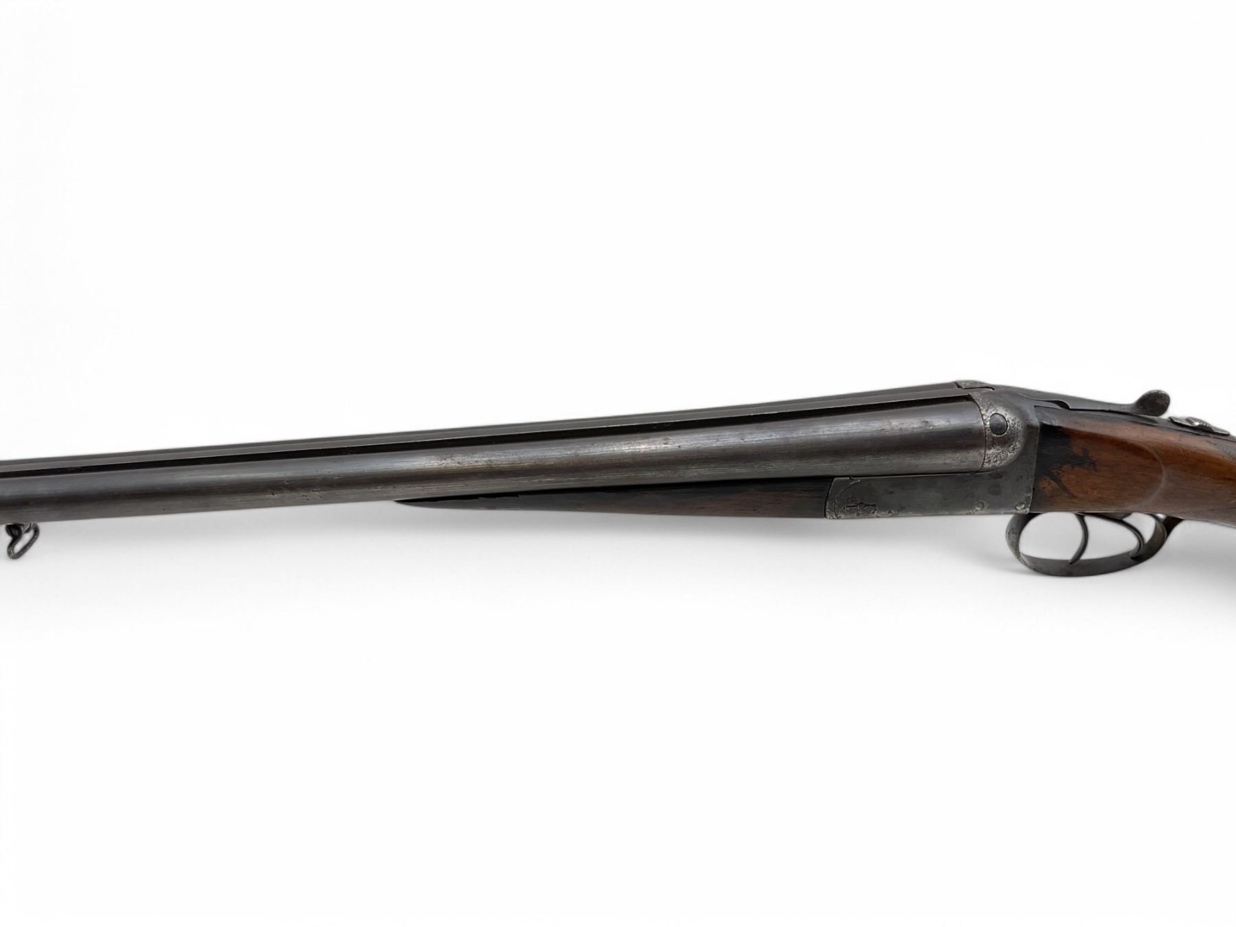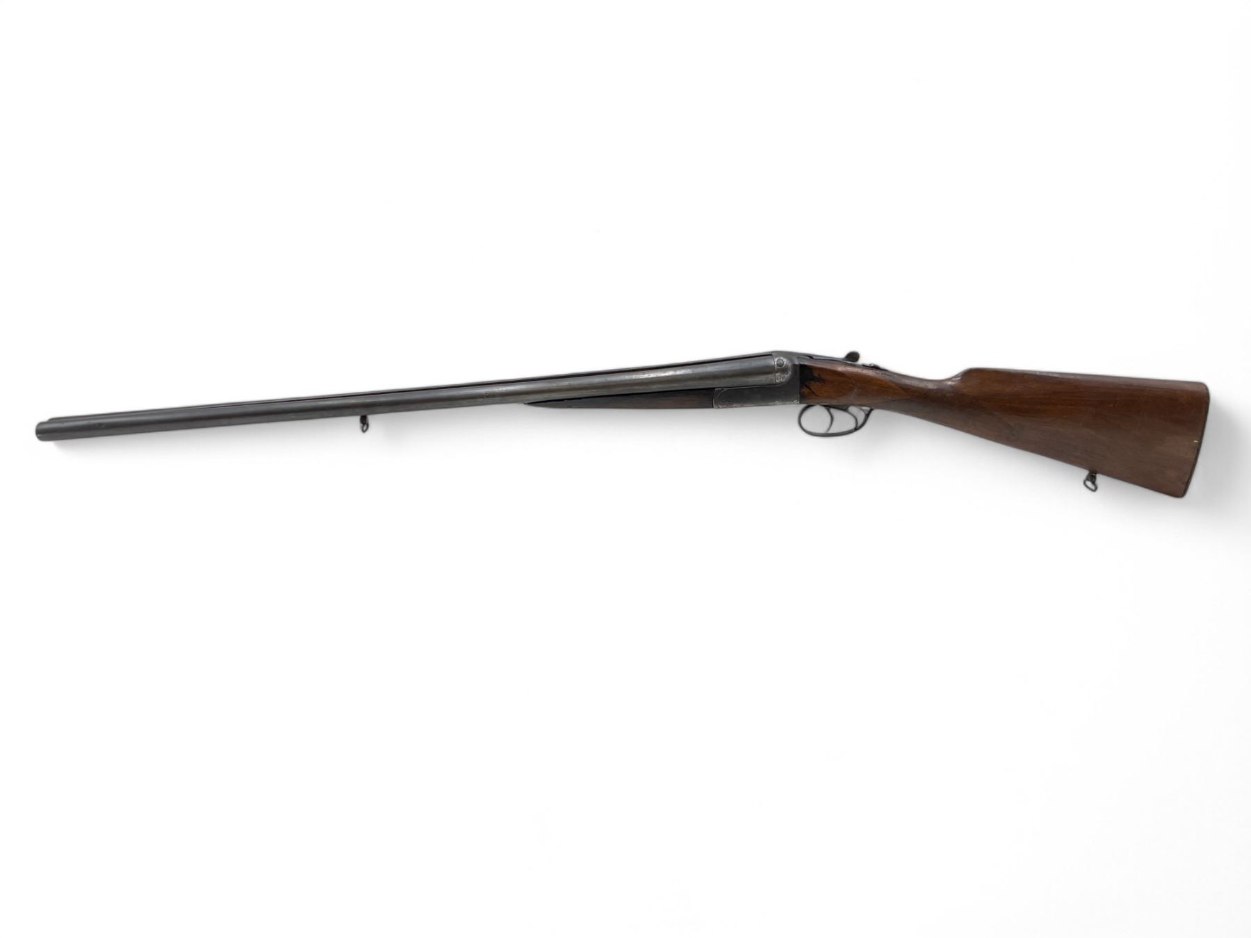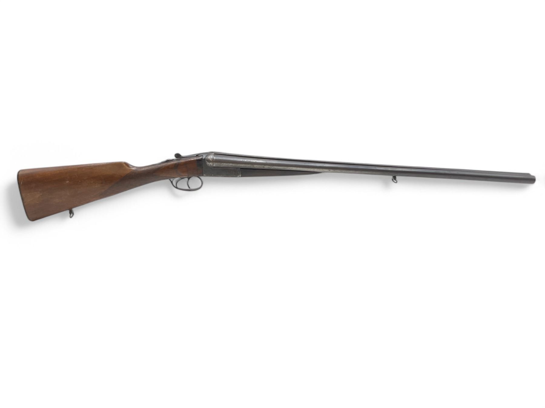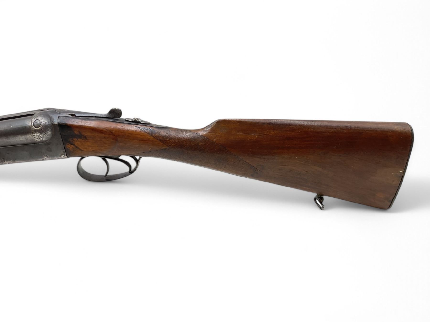Unknown Belgian Side By Side Shotgun 16Ga 28" Barrels Wood Stock. Wood forend and rear stock are cracked. Bead sight; fixed chokes. Double triggers. This is a non-restricted firearm.
