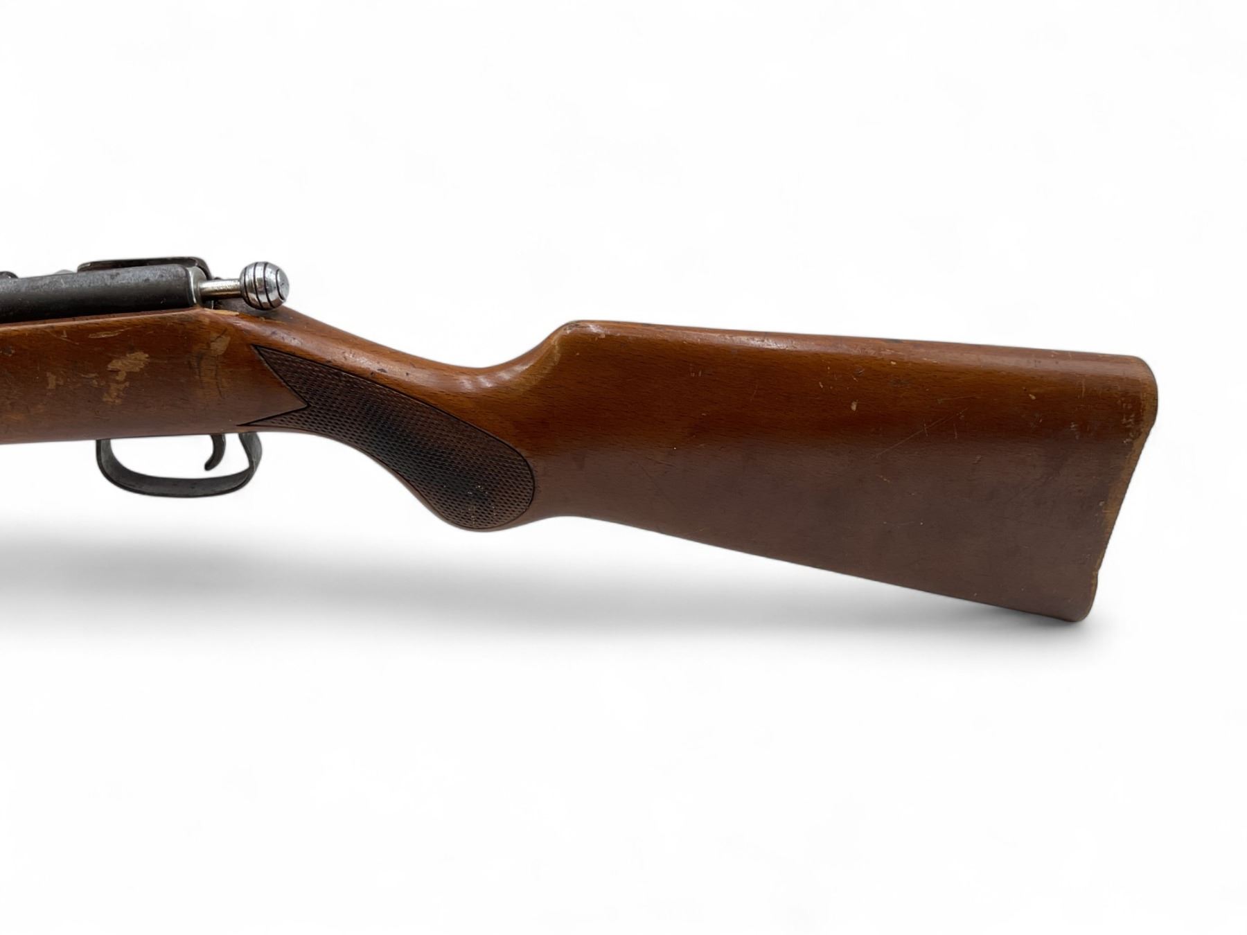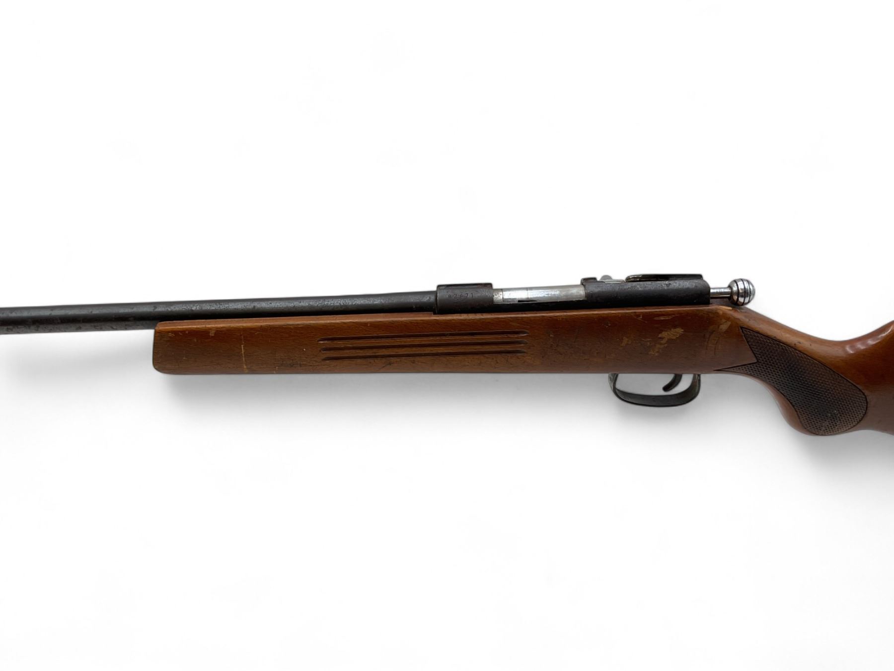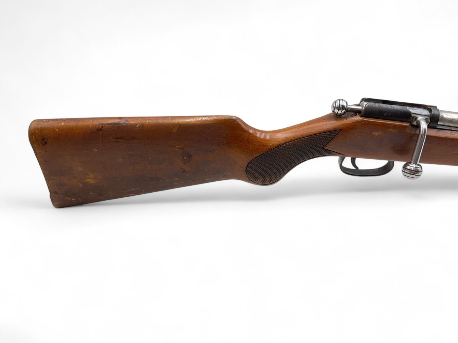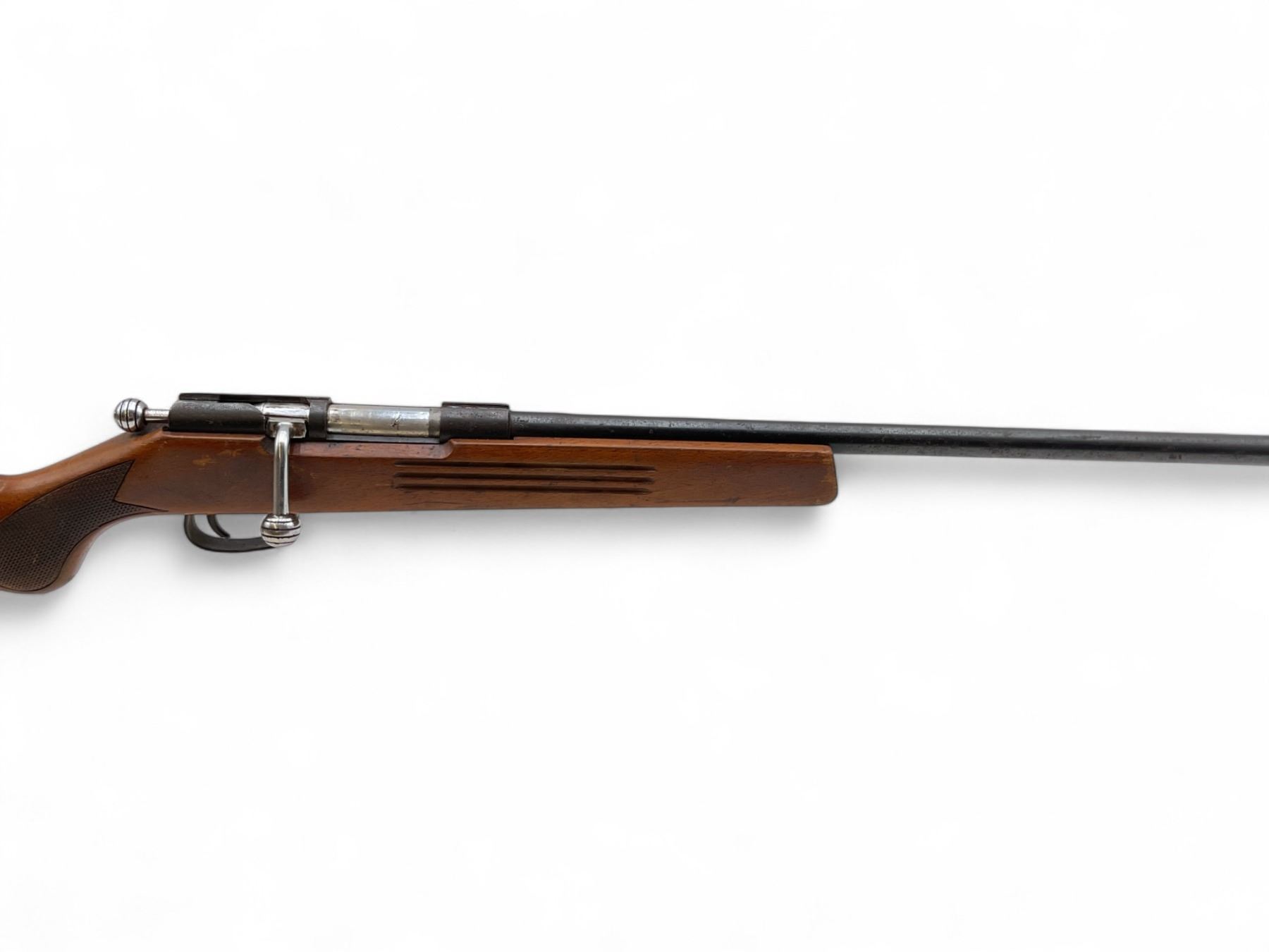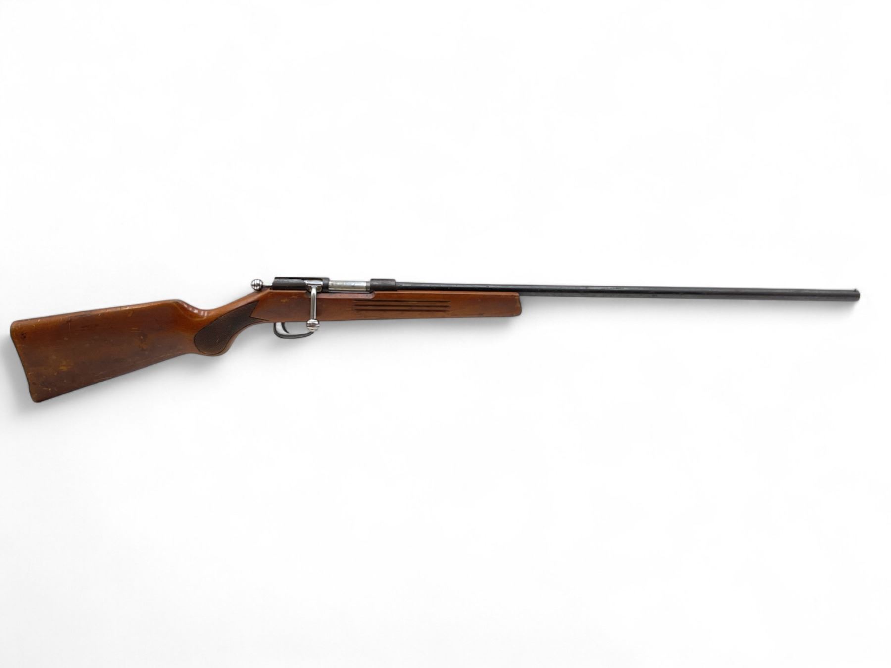 Unknown Russian Single Shot Bolt Action Shotgun 25" Barrel Wood Stock. Appears to be a 410 but cannot confirm. Bolt stop appears to be broken as bolt comes out of action each time you cycle it. Bead sight, fixed choke. This is a non-restricted firearm.