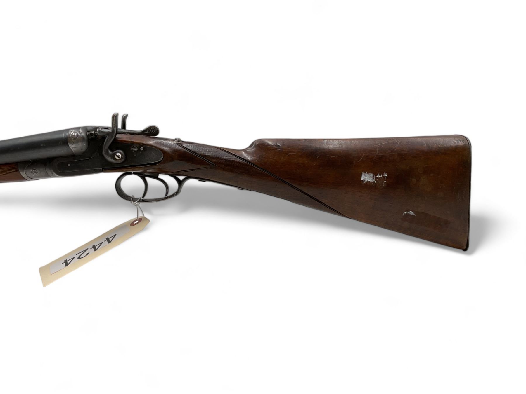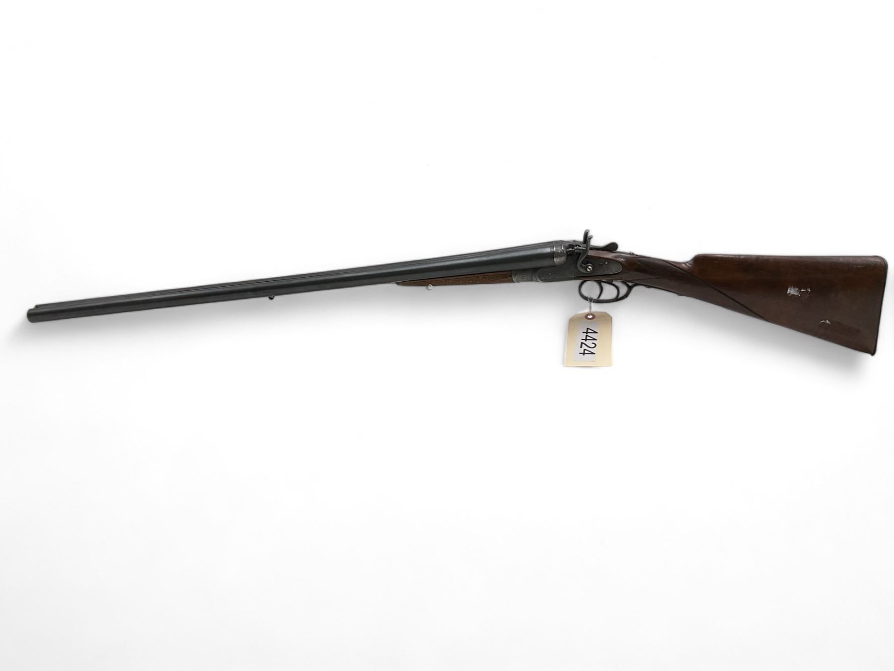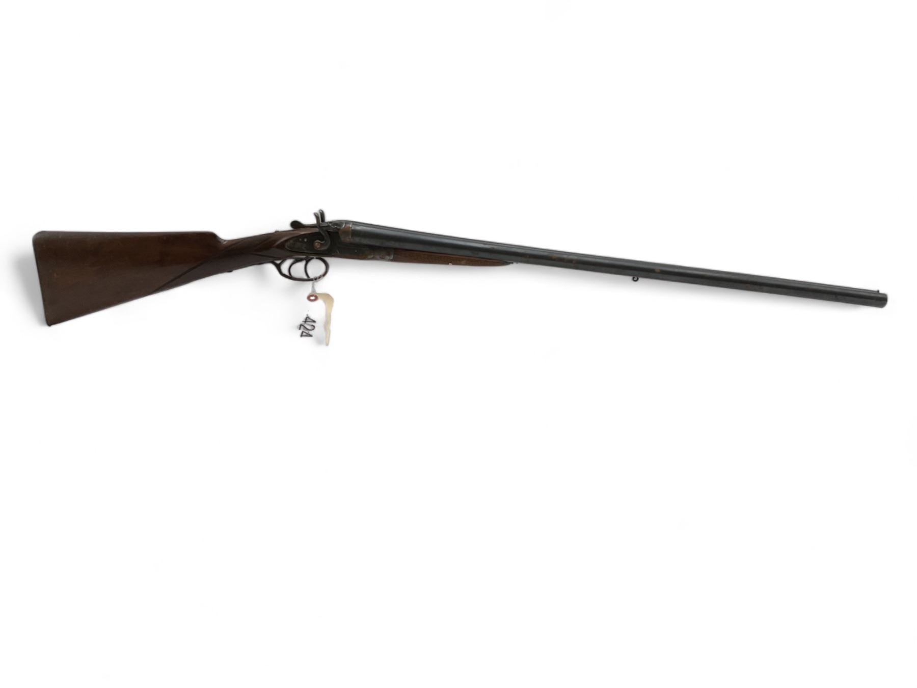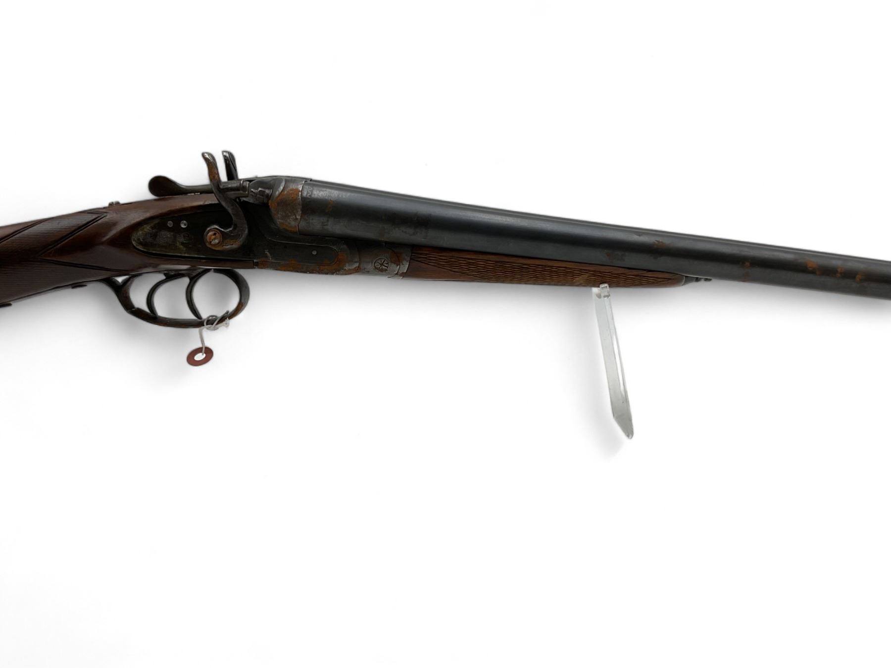 Unknown Side By Side Shotgun 12Ga 30" Barrels Wood Stock. Bead sight, fixed chokes. Exposed double hammers and double triggers. Rear stock appears to have been replaced; replacement stock does not fit correctly. This is a non-restricted firearm.